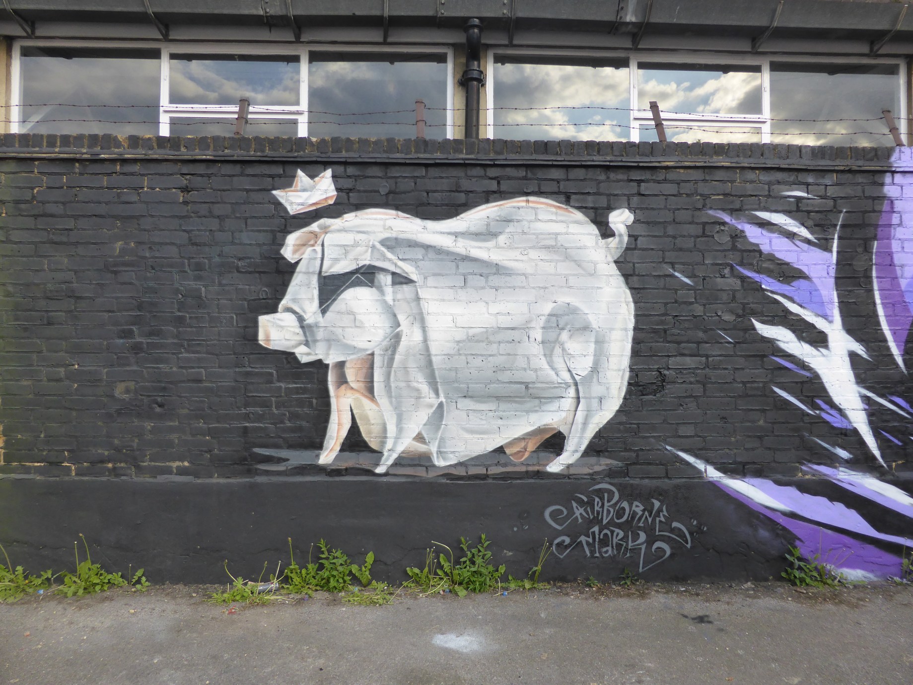 Over the last couple of weekend Street Artist Airborne Mark has been out and about around South London keeping himself busy working some of his ‘Origami Riots’ magic, with works in Leake Street and Tooting. Setting to Leake Street a couple of weeks ago, Airborne Mark set to create a delightful work featuring an origami pistol crafted from a $1 bill, creating an effect which is intriguing and just absolutely crammed with intricate details that compliment the complexity of the focus on light and shadow in his works. Then last weekend we were fortunate enough to catch Airborne Mark as he was finishing up his fantastic Pig design in Tooting, depicted in his distinct grey-scale style showcasing the shadow and fold dynamic he creates to make his works pop off the wall. Something which is always a pleasure to gaze upon and really shows how meticulous he is in his works, and seemingly going from strength to strength with his output of late.