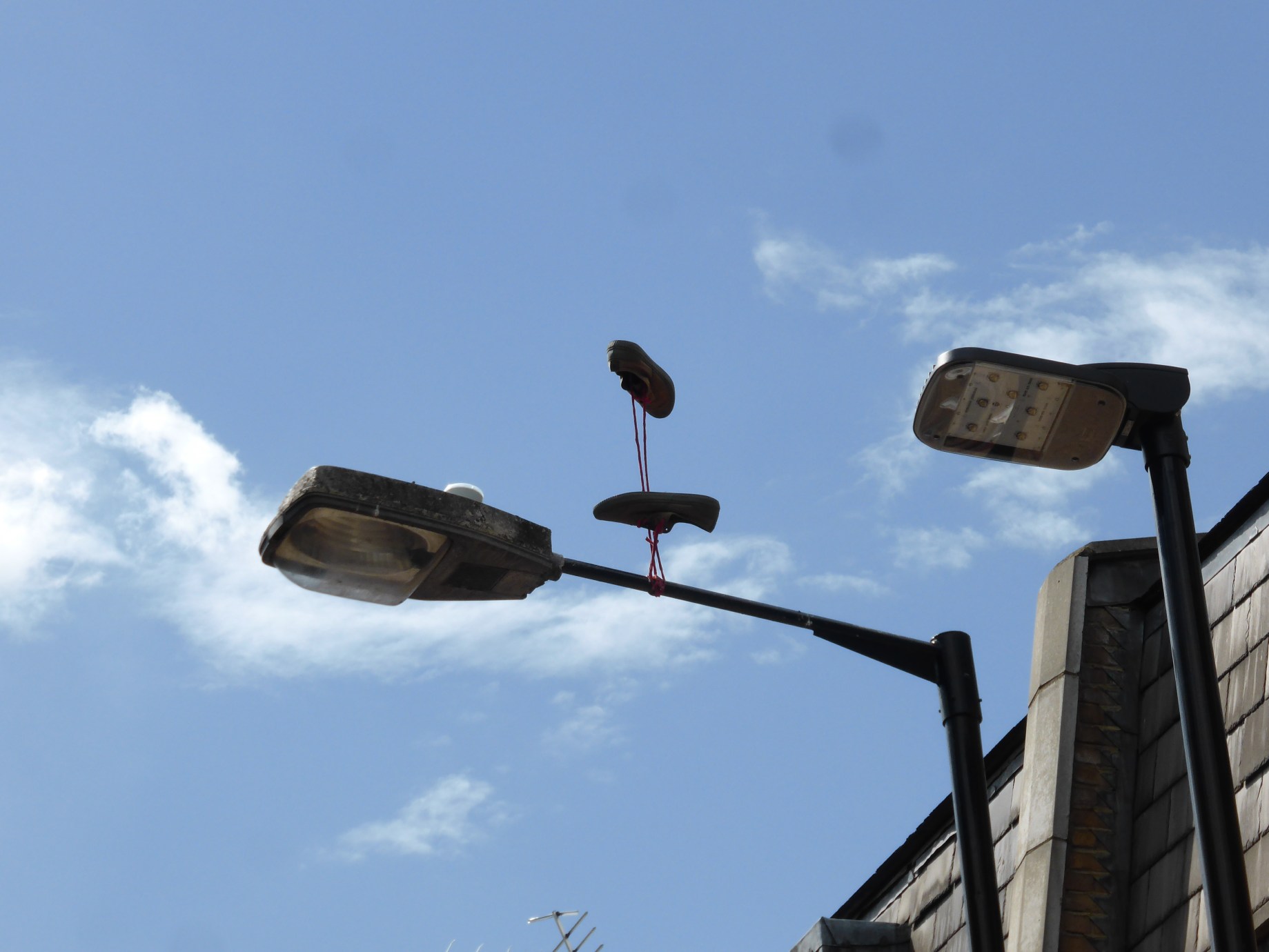 The works we are concerned with here are a series of four fantastic installations around the East End which feature shoes ‘hanging’ in defiance of gravity above lamposts, something so simple and also so effective, completely subverting the realms of normality. We have so far found two of the four installations and if anyone finds the other two, please let us know. Certainly some of the most interesting and unusual works we have seen around London this year and really a pleasure to see. Pejac’s solo show ‘Law Of The Weakest’ will be on at the LondonNewcastle Project Space in Redchurch Street, Shoreditch, and runs from 22nd-31st July.