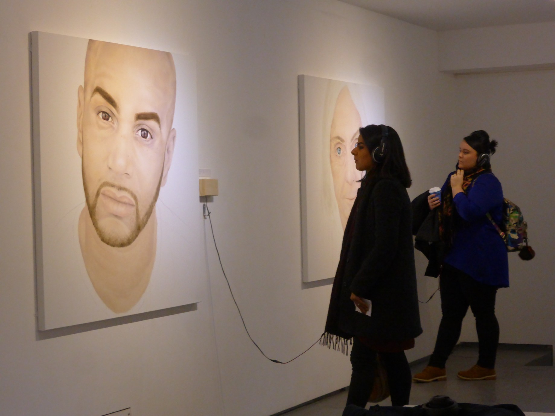 Friday night saw the opening of an excellent exhibition by contemporary Street Artist Andrea Tyrimos entitled ‘Bipolar Picasso’ at the 5th Base Gallery around Brick Lane. Andrea Tyrimos works in a range of mediums and as is the case here predominantly with oils, something she has even managed to utilize on the streets to astonishing effect. Originally conceived five years ago the show came into full fruition over the last year, the show ‘Bipolar Picasso’, as its title suggests, sets to draw the connection between mental illness and art, though for the purpose of this show not exclusively dealing with Bipolar disorder. The show explores subjects with a range of mental health conditions including the grips of depression, the intensity of addiction, the fear of anxiety, the ups and downs of Bipolar disorder and the delusions of Schizophrenia. Accompanying each of the striking portraits is an audio piece allowing the viewer to listen to the voice behind the subject as they relate some of their most personal and innermost thoughts to yourself as you are stood before the powerful and striking image in front. The addition of the audio recordings adding a new dynamic to portraiture in this show sets to a create sense of presence as well as identity to these otherwise invisible conditions.