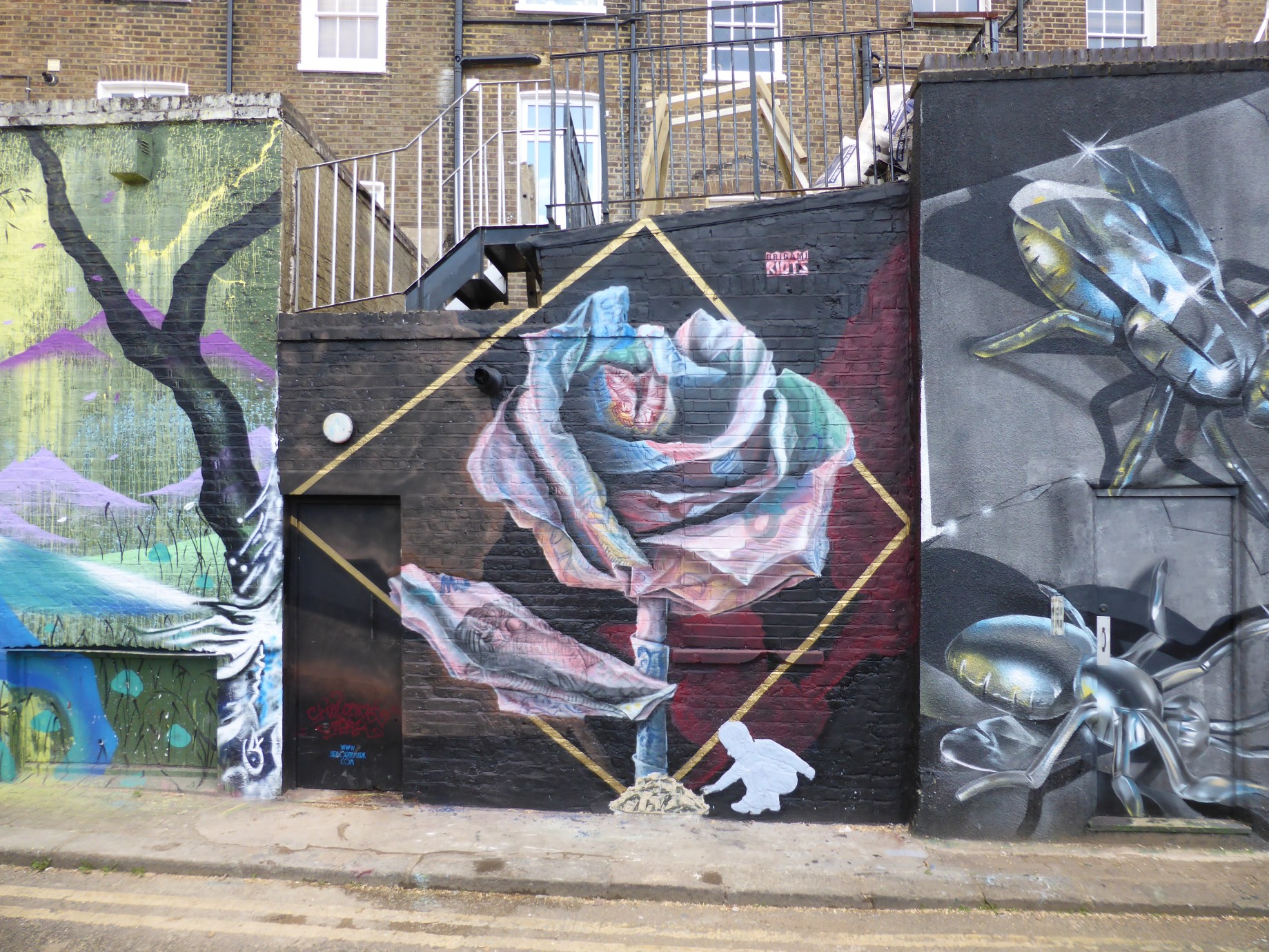 Last weekend we caught up with Street Artist Airborne Mark during his two day stint on his latest ‘Origami Riots’ creation “ROS£” in Camden Town, based on an original Origami design by Airborne Mark constructed from 5 x £5 notes. The effect is intriguing and just absolutely crammed with intricate details that compliment the complexity and depth in his designs focused on the shadow and fold dynamic he creates to make his works pop off the wall. This striking work can be found in Hawley Mews, Camden Town and was put up with support from The Real Art Of Street Art.