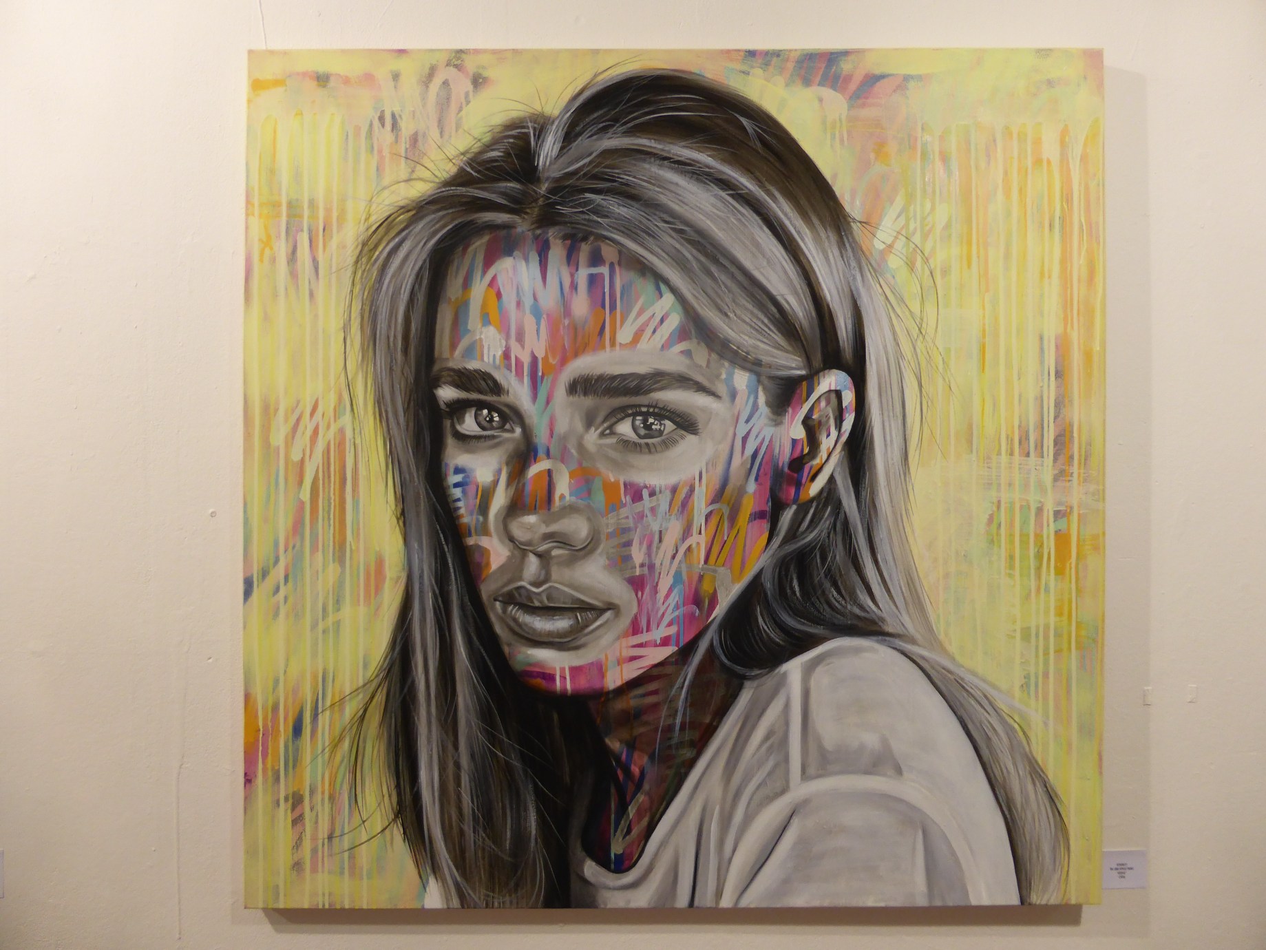We have long been fans of Ant’s output, his grey-scale realistic portraits sit so well on the fluid and colourful base he composes, creating that striking effect of the beauty to be seen among the chaos. What we love most is how with many of the pieces, the eyes on the subject appear to be looking directly at you as you stand before the work, creating that sense of connection between viewer and subject. This exhibition presents a superb body of works, portraying a broad range of subjects depicting different sexes, age groups and ethnic origins, set to display the universal beauty in people across all definitions. The overriding theme of the exhibition is to look at the positive in an image, with Ant feeling that quite often artists focus on the negative, with no real sense of deep underlying pretension about the show. For him, it is that initial reaction from the viewer that is the point of this body of works, that instantaneous spark that is formed upon seeing these works for the first time.