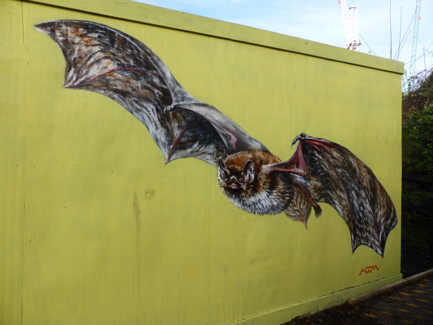 It’s been a few months since we have had the pleasure of sharing some fresh London work from ATM, an artist who we admire very much, but fortunately a couple of weeks back ATM took to the Camley Street Nature Park behind Kings Cross to lay out this fantastic painting for the London Wildlife Trust. The work is so realistic and in true ATM style, larger than life and constructed in a beautiful painterly style. Created entirely by brush work, you really can see the rich textured effect and harmonious blending of colours that bring his subjects to life. What is of particular interest to us here is that this work represents the first case of us seeing a subject painted by ATM that isn’t a bird, though this isn’t the first instance of ATM doing so, just of us seeing it. Certainly not something that disappointed.