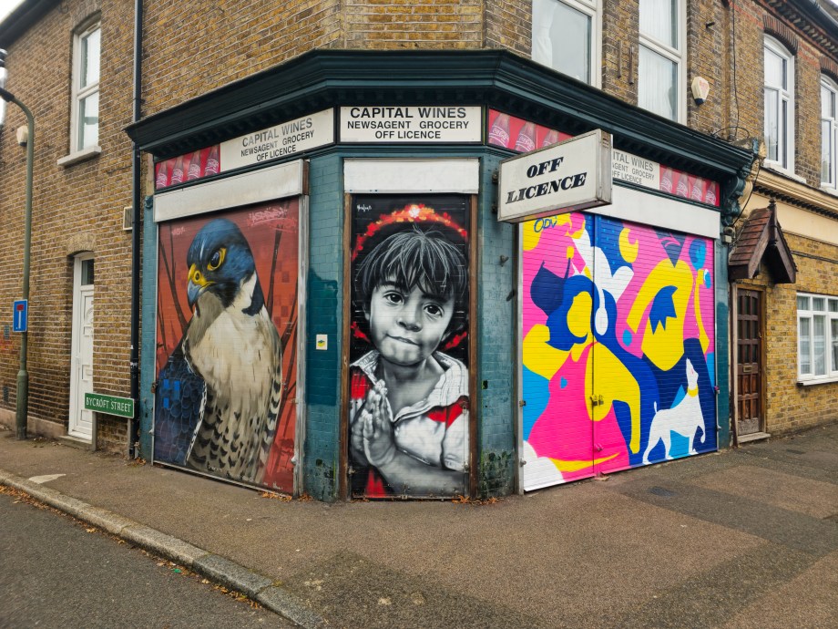 Seeing as our SprayExhibition20 Street Art Community Project in Penge and Anerley (SE20) has thus far exceeded our wildest expectations and there are now some 300 artworks to be seen around the area we thought we would put together a free Street Art Tour of Penge and Anerley. This full walk will take you about 5-6 hours (depending how long you stop to admire the artwork and take photos along the way) and starts a short walk from either Penge East or Anerley Station – If arriving in Anerley start the tour at step 9 and follow through. Our walk below begins and ends at Penge East Station, where the art trail commences as soon as you leave the station and can be completed in 32 easy steps. We would also suggest taking the tour on a Sunday in order to have the best chance of catching the dozen or so shutters that have been painted down and in all their glory.