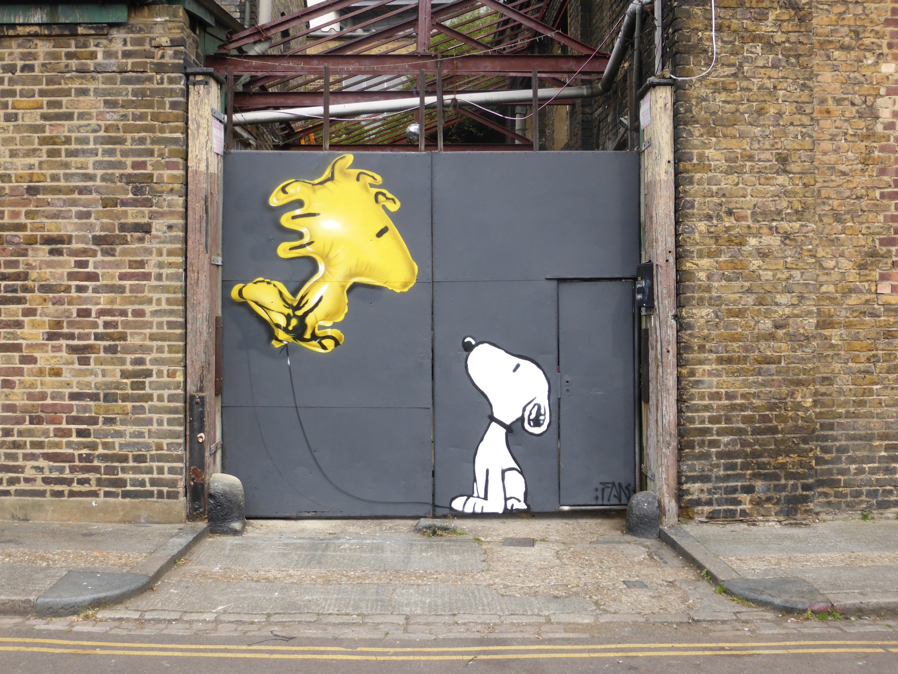 Over the last several weeks London has been treated to a fantastic pair of works around the East End from the vastly talented Fanakapan, with firstly a more elaborate design entitled ‘Shoreditch Clowns’ in Shoreditch as well as a quick and delightful Snoopy inspired work.