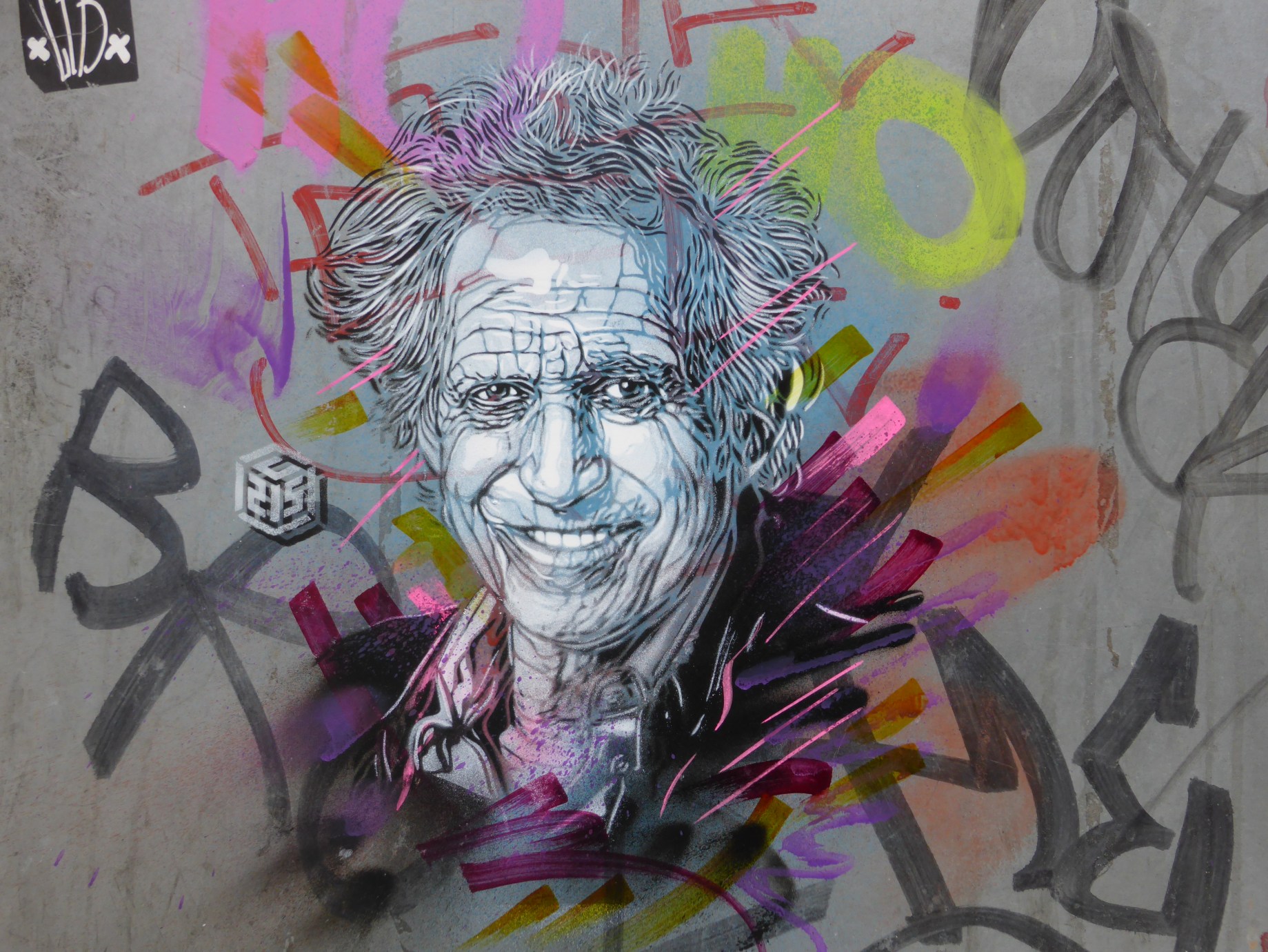 Work depicting Keith Richards of the Rolling Stones in Osborn Street.