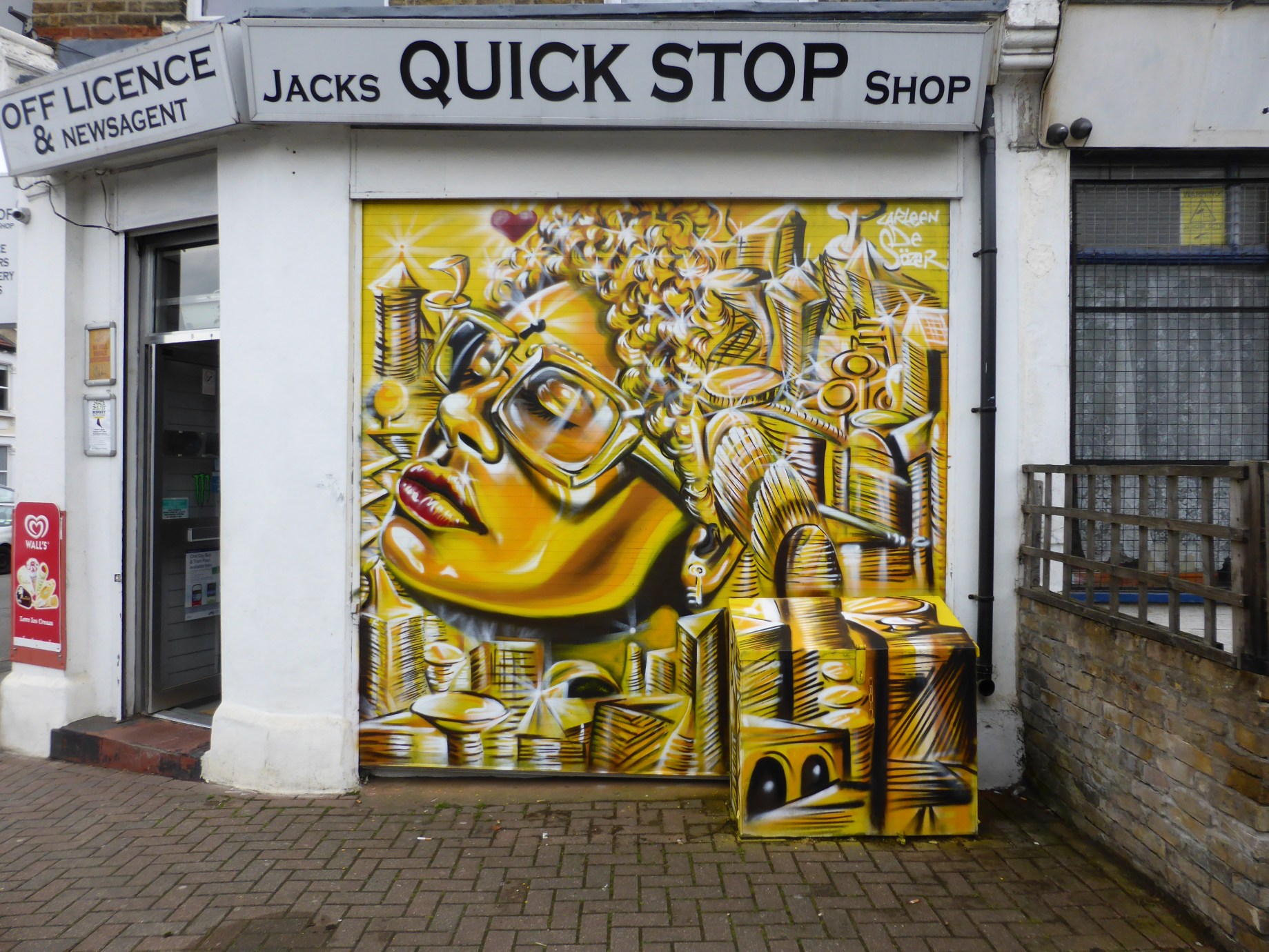 We would like to say thanks to the kind owners of Jacks Quick Stop Shop for allowing us to get Carleen De Sozer to add something so beautiful to their property. We also would like to offer a big thanks to Carleen for coming down to leave SE20 with her beautiful ‘Golden Goddess’.