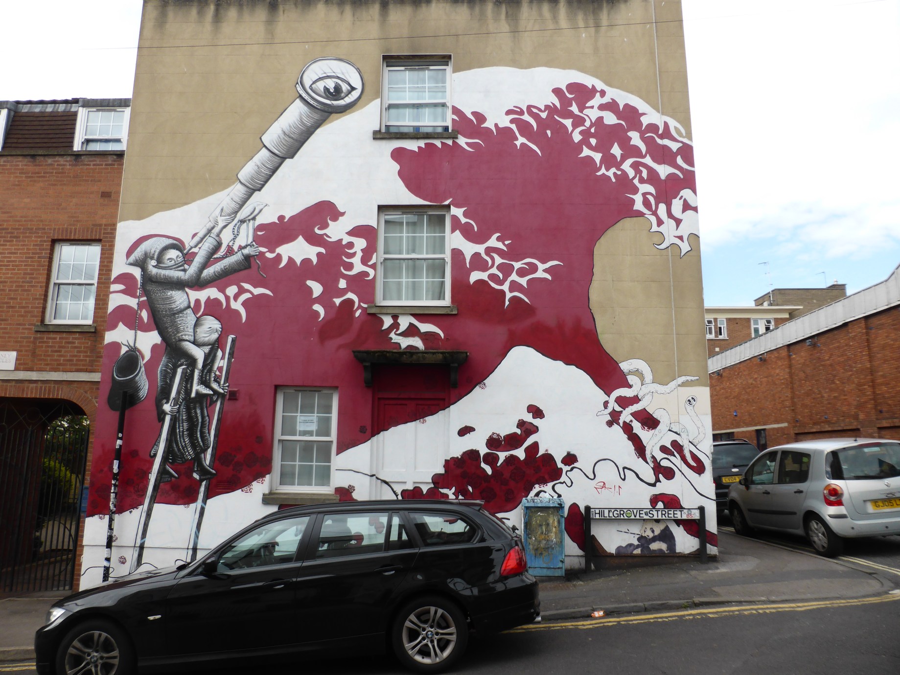 Work by Phlegm in Hillgrove Street, just off of Stokes Croft, and depicting a take on the iconic woodcut ‘The Great Wave’ by Hokusai.
