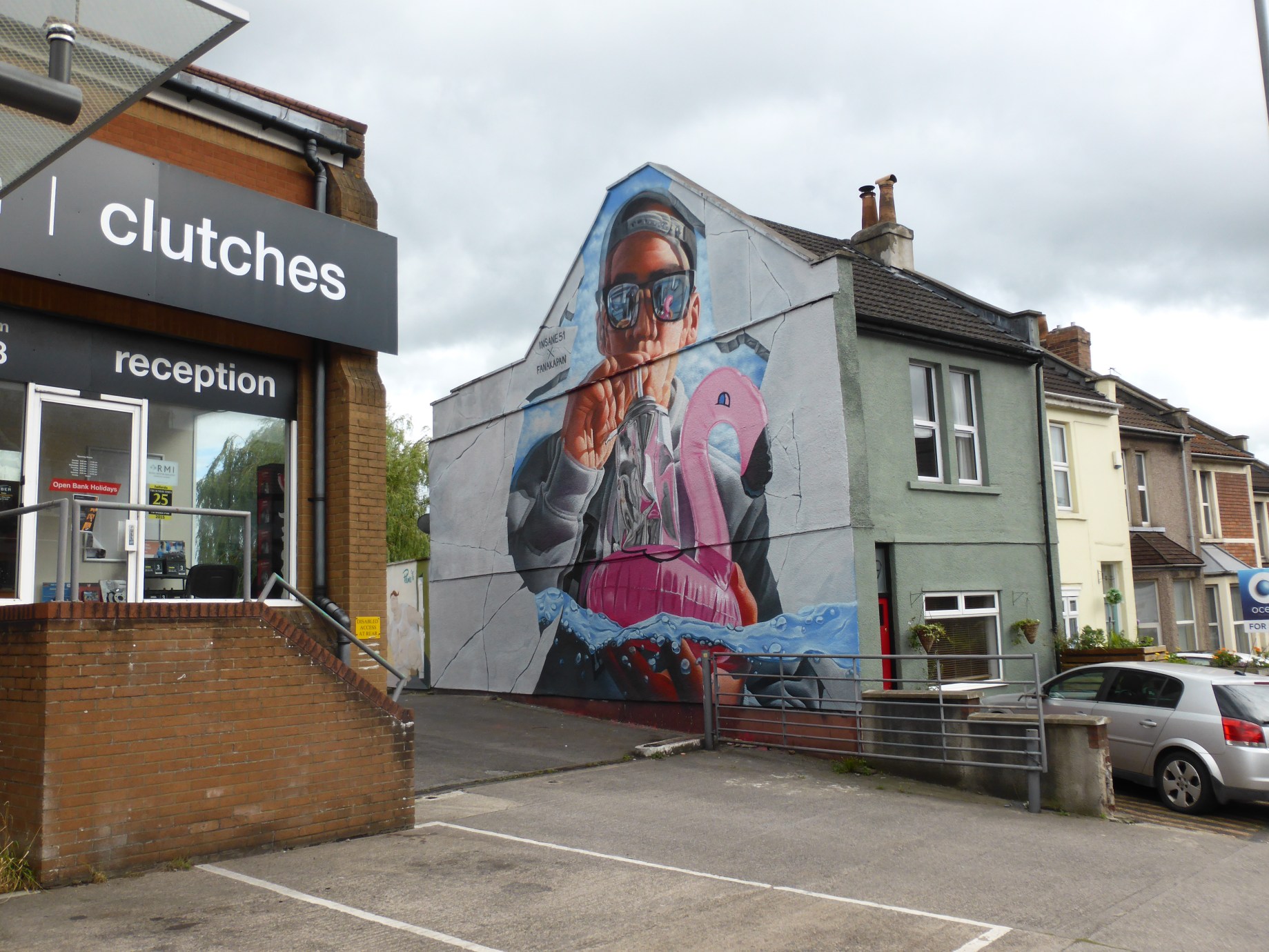 Setting to work over a few very rainy days, the pair painting their first work together crafted a magnificent scene fusing each of their own styles of hyper-realism depicting a surreal out-of-focus image of Insane51 emerging through the building whilst sipping from a crumpled can of drink and wearing an inflatable Flamingo. There is so much to take in when you find yourself confronted with this work, so many points of focus that draw the eye to this piece just brimming with life.