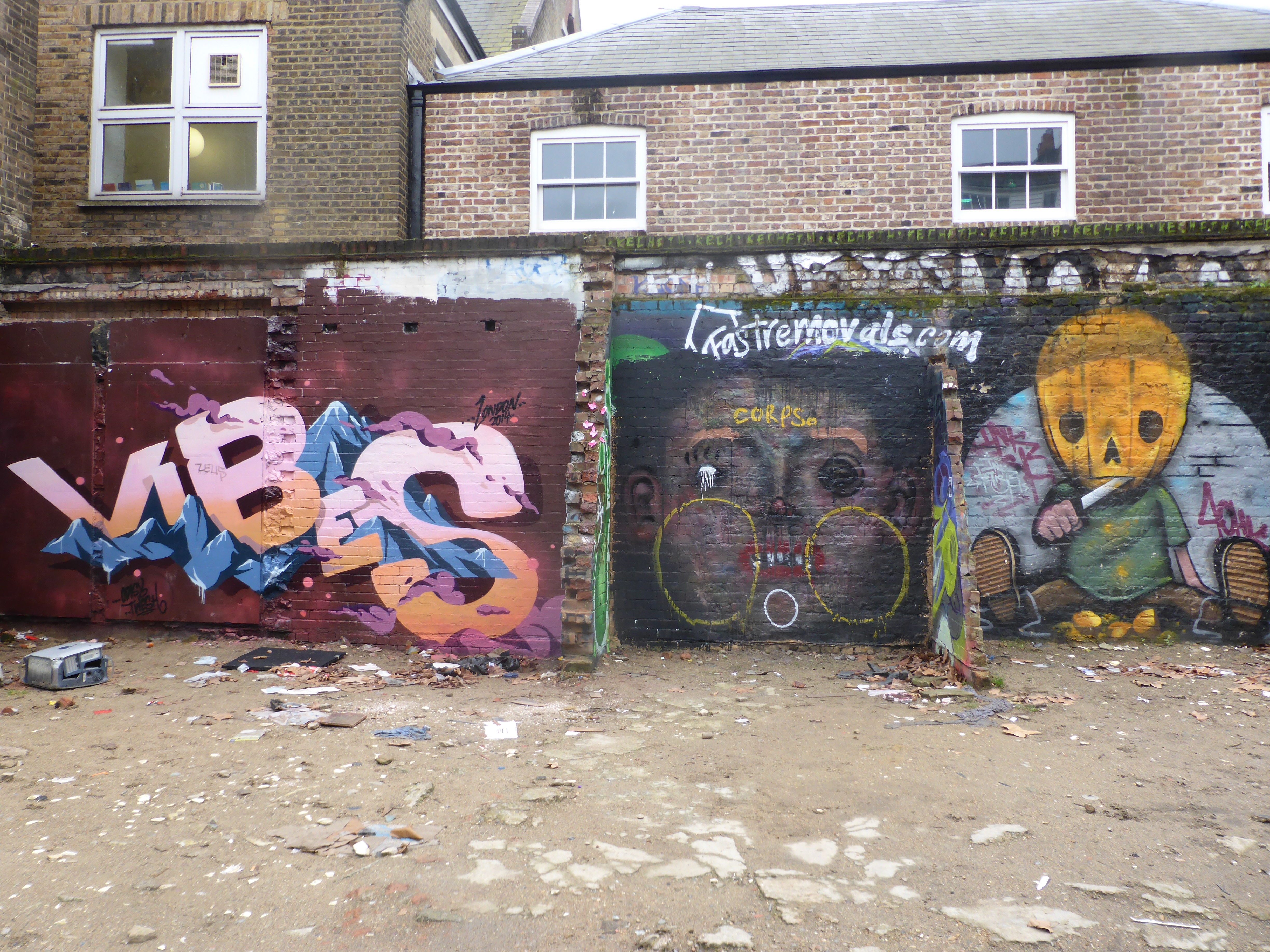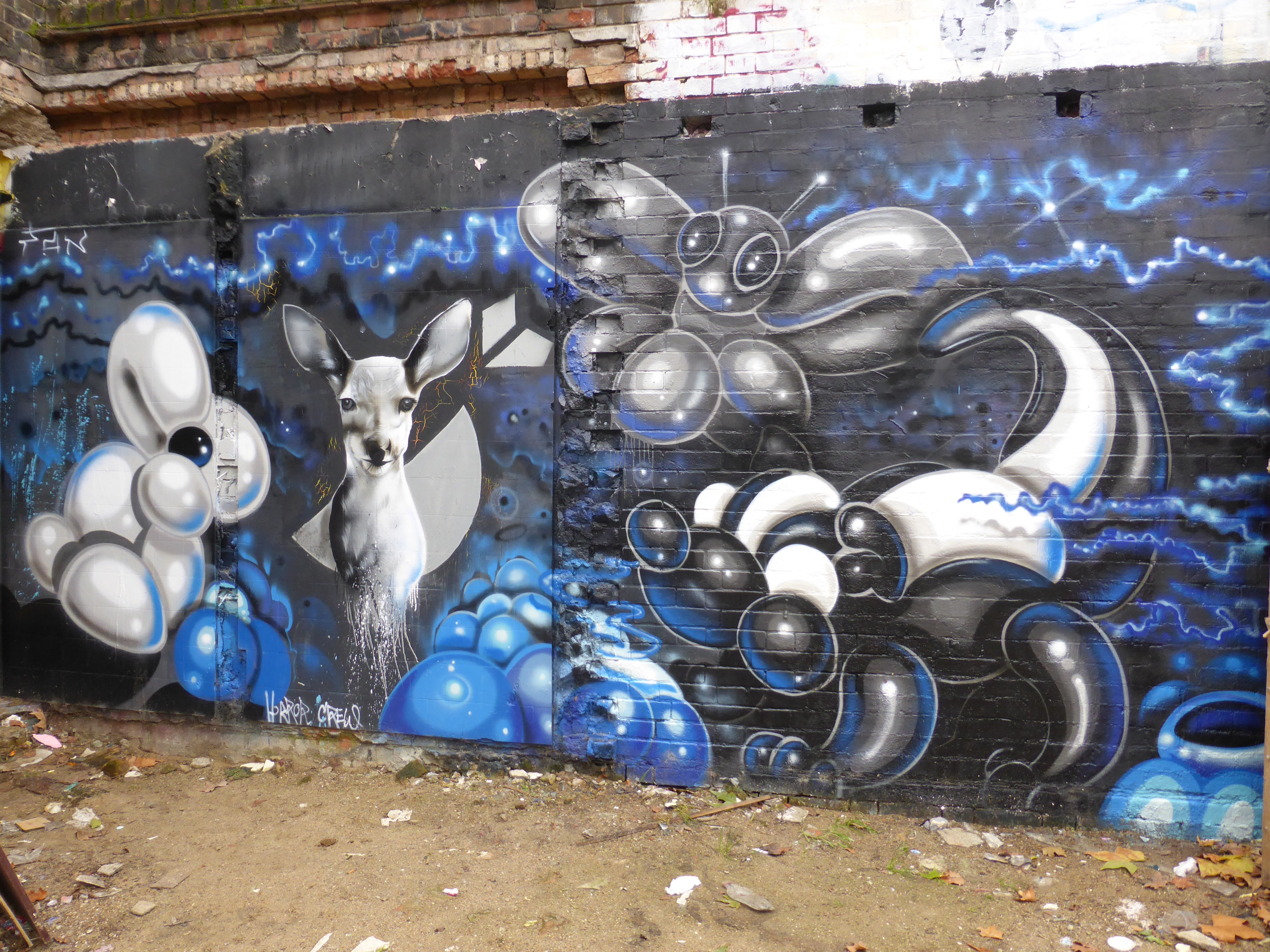 So it is with much disappointment that it appears that the owners Star Yard have now declared that no one is to paint in this area anymore and have installed a large metal shed which has instantaneously consumed half of the wall in the car park and further forced the cars that use the space to park in front of the five remaining walls spaces, also making it nigh on impossible to paint these spots during the day now. So it is with this in mind we thought we would take a look back at the wonderful array of Street Art and Graffiti we have encountered in Star Yard over the last three years, of which we are focusing solely on the 10 feature walls in the car park, though there is always plenty to be seen on the back of the shop and in the alleyway as you enter.