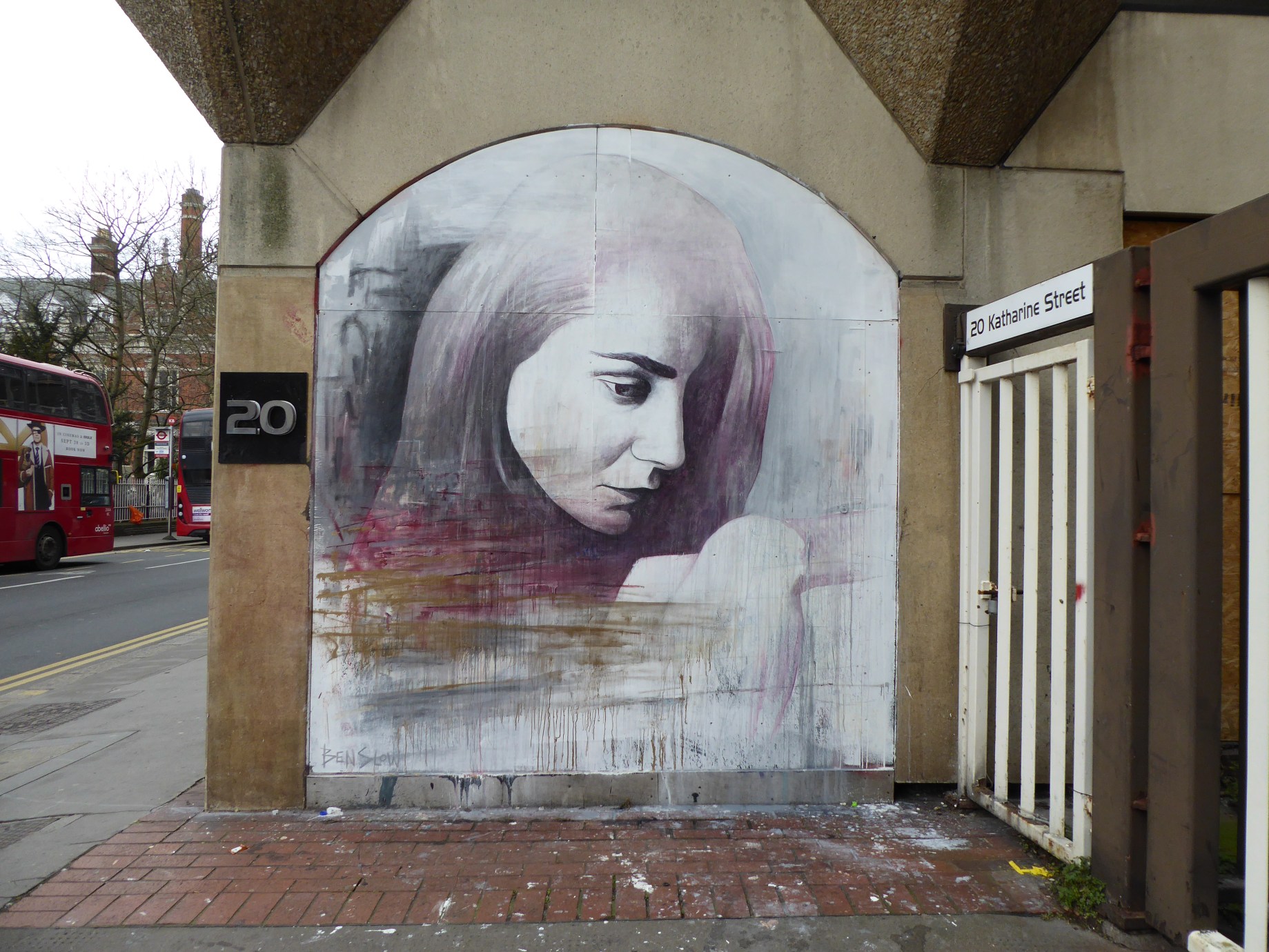 A couple of weeks back saw a wave of fresh activity for Croydon’s Street Art scene following a somewhat long hiatus of output through 2017 and one of the most notable recent additions to the Arts Quarter is this striking portrait from artist Ben Slow. Crafted by brushes the work comprises a soulful subject constructed from a minimal colour palette which is prevalent in this artists output and which generates such a captivating scene. This beautiful work can be found in Katherine Street, Croydon.