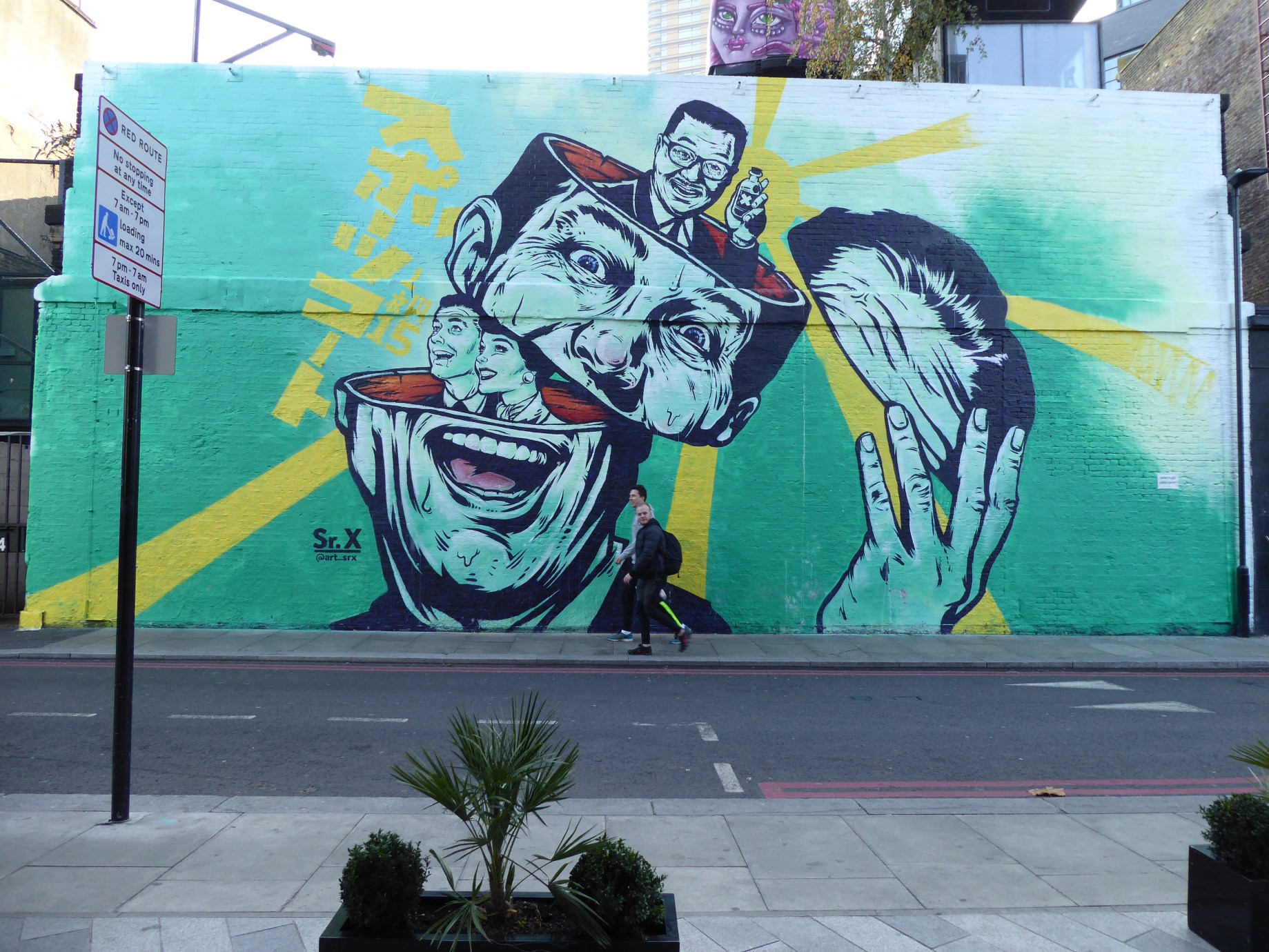 Here we are taking a look at a fantastic recent addition to the Village Underground in Holywell Lane, Shoreditch, by artist Sr. X, a work that sadly is already gone lost amid the rotation of adverts prevalent on this spot now, but still very much worth sharing. Through his work Sr. X sets to subvert social convention and traditional ideals with those all so humorous and at times dark twists that are very much exemplify Sr. X’s sense of sharp wit and fun, criticizing the over-abundance of pop culture and values it sets to install on society from above. All presented in that vintage style taken from 1950’s advertisements and imagery Sr. X’s work takes a look at vanity within society and offers a sarcastic take on the way in which commodity culture is ingrained within the popular sphere and how this can for many define ones’ self-worth. But it isn’t all just social commentary and critique what makes Sr. X’s output so unique it is also that his message is so often infused with that rather surreal and anarchic twist on old-fashioned values that is so fun and pure Sr. X. We aren’t going to pretend we know what this design is entirely about, but we do know it is instantly full of that charm, humour and surrealism that is pure Sr. X.