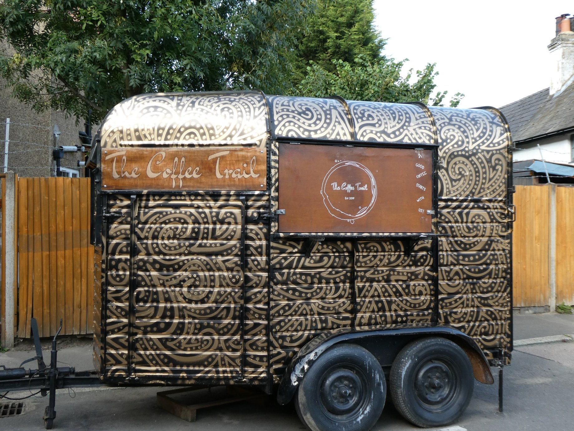 Next up in our catch up of recent works we oragnised around South-East London over the last several months we are taking a look at a great work from local talent NIck Wakeling placed up over the summer for our SprayExhibition20 community street art project. Taking to Penge West, this spot is something rather different than the average ones we get to paint, namely a former pony trap, now coffee stall, permanently parked outside Penge West Overground Station, Nick Wakeling placed up a striking work in the artists trademark abstract pattern styling which is reminiscent of Aboriginal design work and alive with flow and energy. An interesting spot exceptionally well utilised by the artist. We of course wish to say a massive thank you to the business who generously donated a space and trusted us to work it. As well as a really big thank you to Nick Wakeling for coming out to support this initiative and for leaving such a lovely artwork in the process.