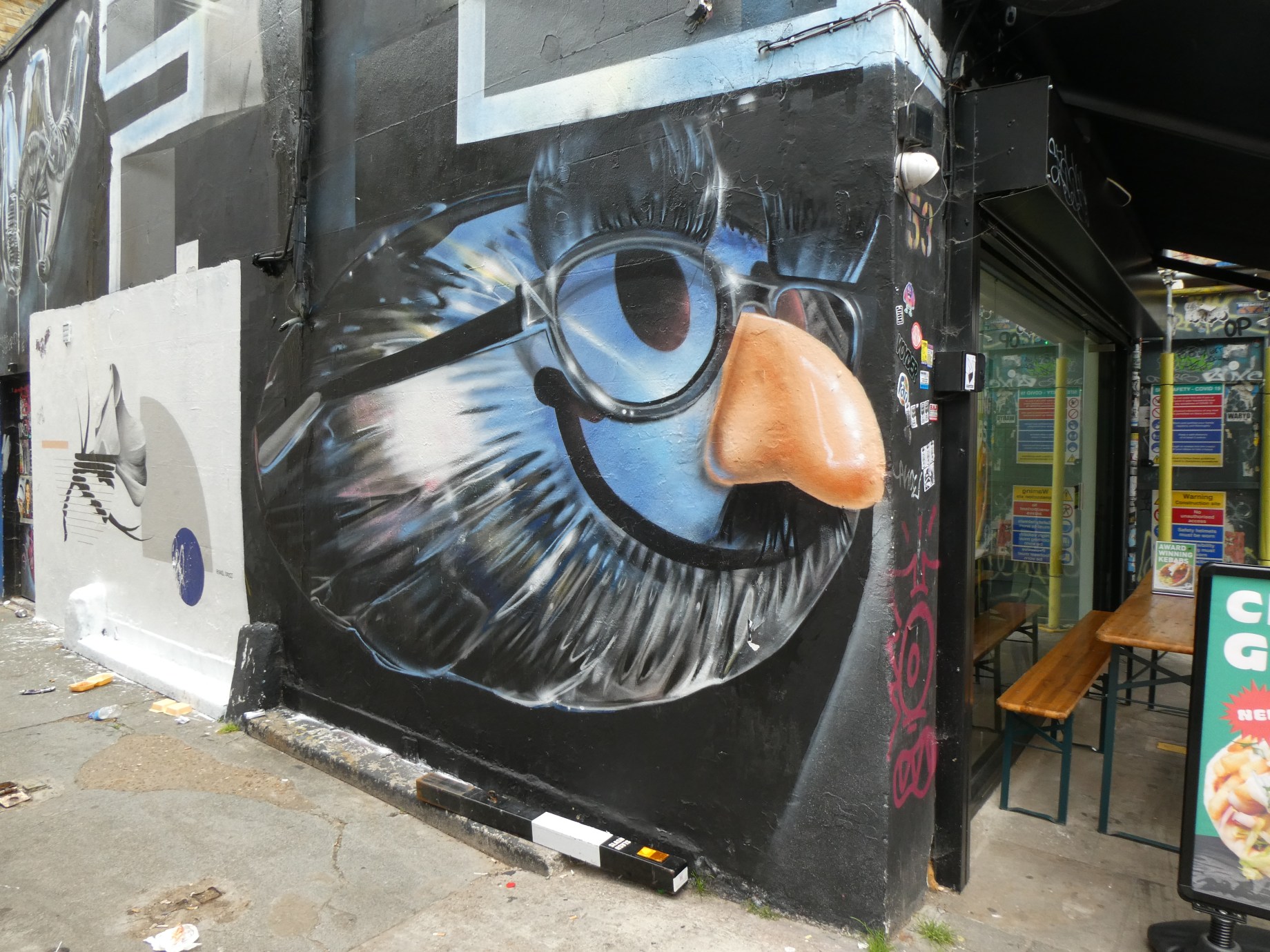 For this post we are taking a look at a pair of excellent works from Street Artist Fanakapan, both placed up in Star Yard, Brick Lane, over the last five months – one a couple of weeks ago and one several months ago, with both looking fresh. Both fun works feature balloons as the subject – very much the most prevalent subject in this artist’s output – with the work at the entrance to Star Yard featuring a rather comic looking chrome balloon in a rather distorted design set to be viewed from Brick Lane whilst walking along. The second older work features a smiley face balloon but aesthetically focuses on translucent properties creating an image within the image to reveal a double smile. Its always a pleasure to see work from this artist and the extent of his creativity and his ability to implement it on the streets seemingly knows no bounds.
