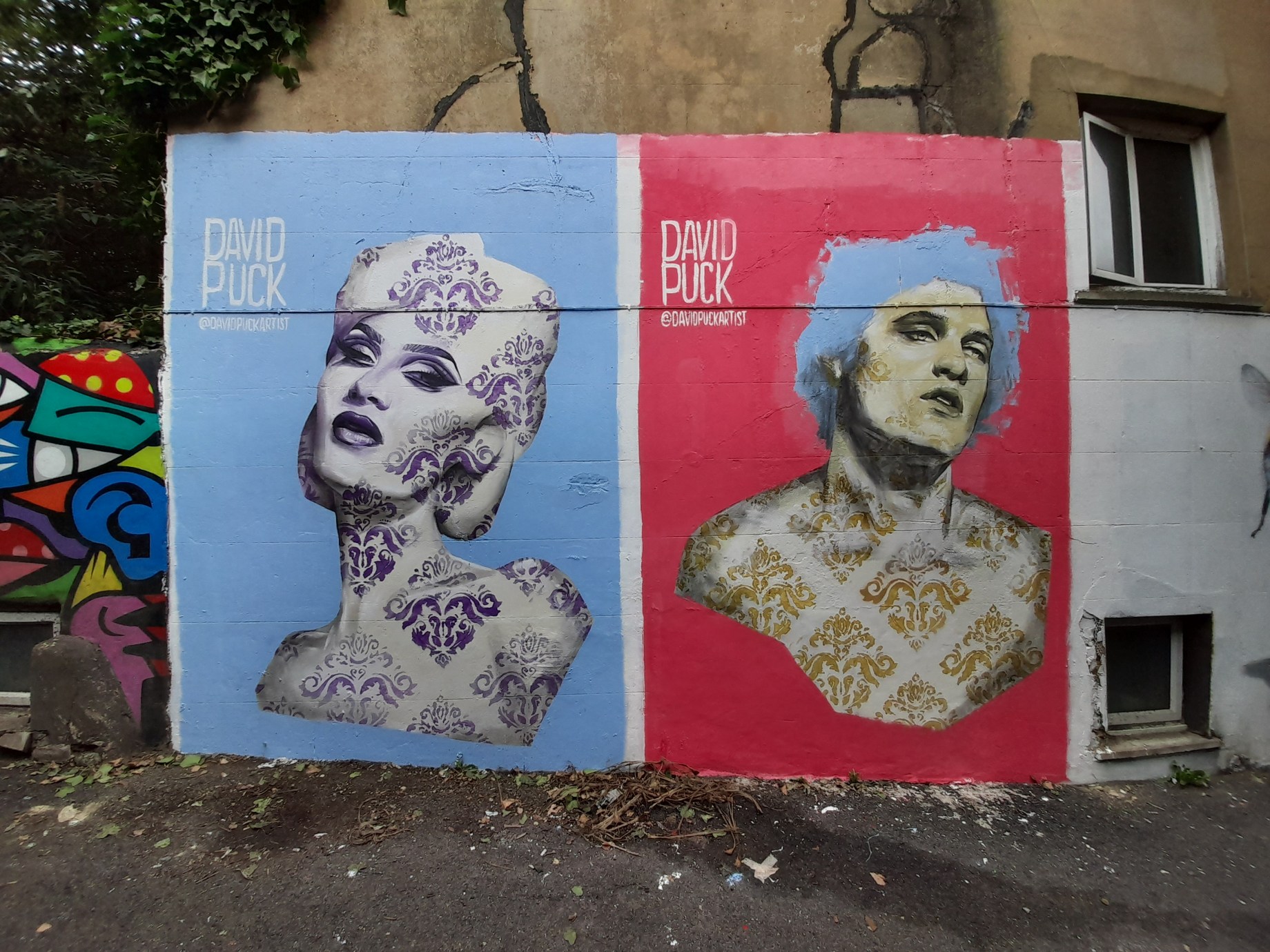 For our next post we are taking a look at a recent addition to Anerley Hill by street artist David Puck placed up for our SprayExhibition20 community street art project around Penge and Anerley. This beautiful pair of artworks makes for the first time we have got to see this artists work in person and the first time they have painted a spot around SE20 for ourselves. David Puck paints subjects which allow them to explore concepts of human experience and mental health, focusing on areas including identity, narrative, psychology, sociology and philosophy. We have to say David Puck left us with a pair of absolutely beautiful portraits imbued with a real strong classical sensibility. These works fuse a range of techniques, including free hand and stencil spray paint, as well as brush work and even one mop head.