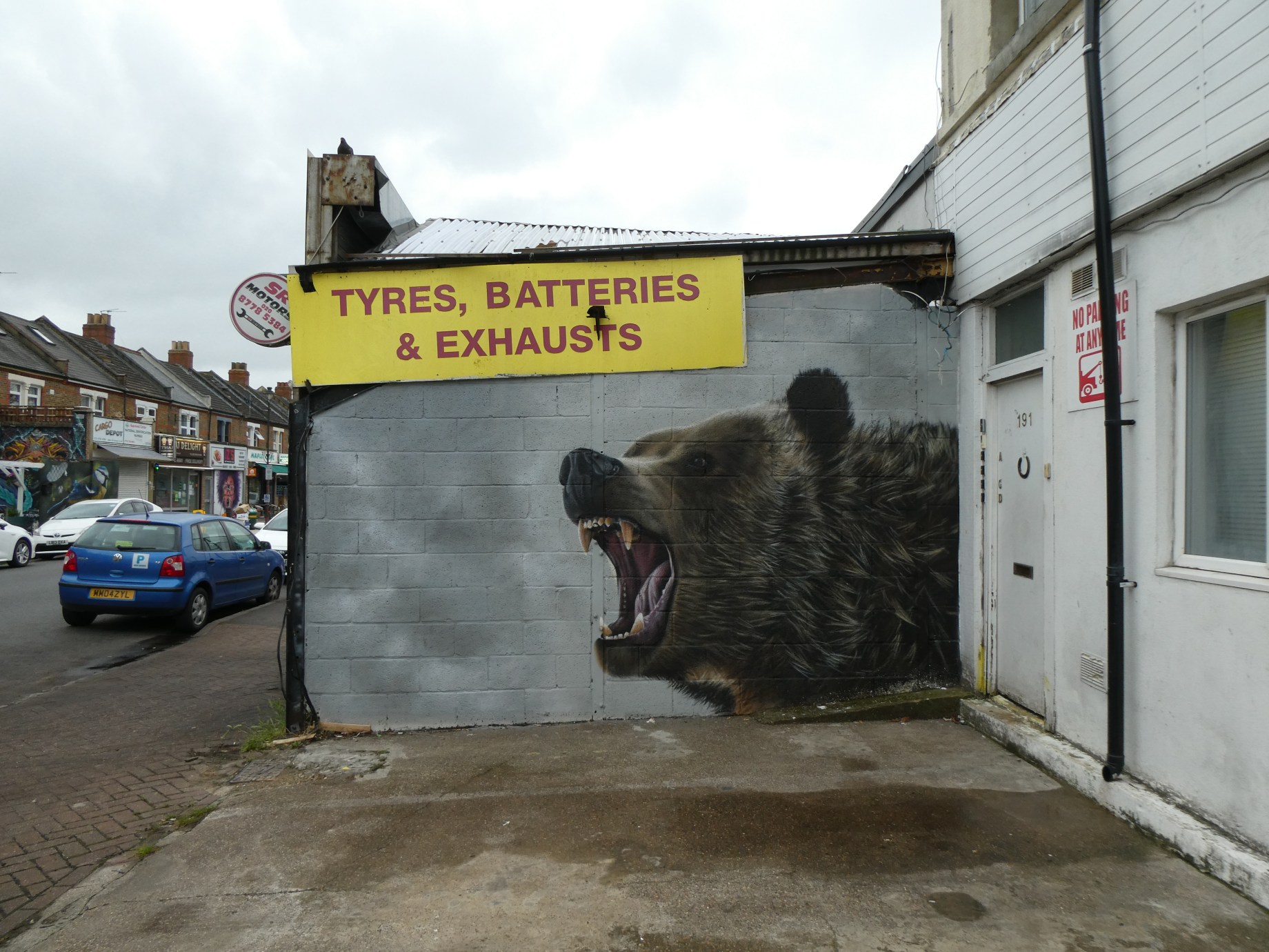 Next up we are taking a look at a superb addition to Penge by street artist JXC, which was placed up back in the early summer for our SprayExhibition20 Community Street Art Project. It’s always a pleasure to have JXC visit SE20 and leave some of his exceptional photo-realism work for us to admire, and this work below is no exception. Making for the fourth artwork JXC has painted for this project and the second work on this particular wall it is amazing to see how he has created yet again a superb piece that engages with the setting, in this instance with the grizzly bear set mid-roar at whoever happens to be passing by. The bear looks so life like, you feel as though you could feel its breath on your skin, blowing your hair back, as you get close enough.