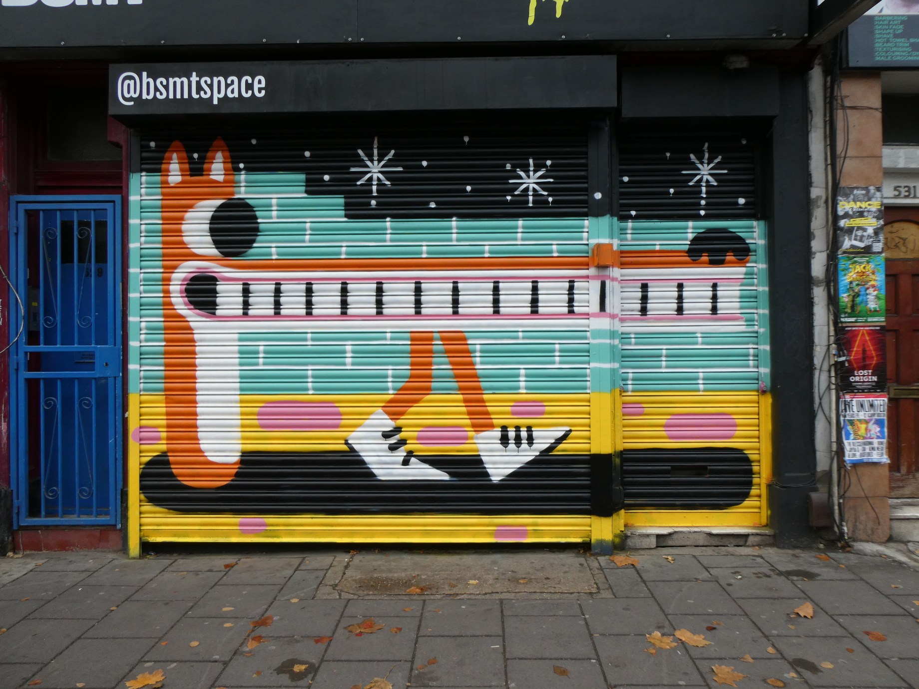 Next up we are taking a look at a recent addition to Dalston by the ever-prolific street artist Malarko who has reworked the shutter of BSMT Space along Kingsland Road. This fantastic work – which is pure Malarko at its finest – was placed up ahead of the artists inclusion in Under Wraps group exhibition currently on at BSMT Space until 22nd December 2021. This exhibition marked the 50th show BSMT Space have put on over the last six years and it’s incredbile to see how far these guys have come and reflect on the incredible diverse array of shows they have brought to London over six years now. This fun work can be found at the BSMT Gallery at 529 Kingsland Road, Dalston.