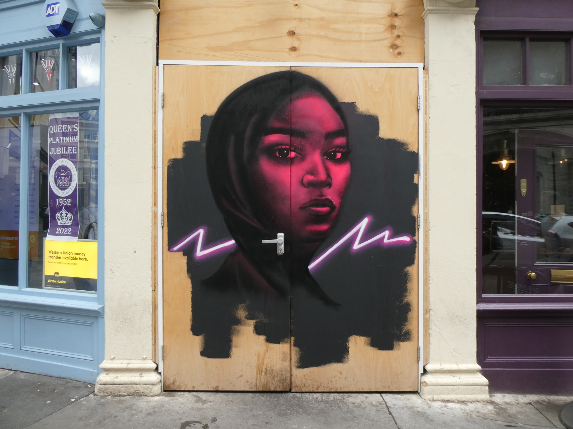 Next up we are taking a look at a series of thirteen works we have had the good fortune to view this year from Street Artist David Speed who has continued to remain one of London’s most prolific artists over the last two years or so, placing up a relentless series of striking neon pink and red scale portraits of people and animals. It’s certainly an impressive and powerful effect this artist creates in his work and it was definitely a pleasure to stumble upon so many of his recent works earlier in the year around Shoreditch. Additionally we have had the absolute pleasure of having this talented artist visit our corner of South-East London and drop a pair of stunning portraits through the course of 2022 for our community mural project around Penge, for the locals and ourselves to enjoy on a more regular basis as we go about our business in our hometown.