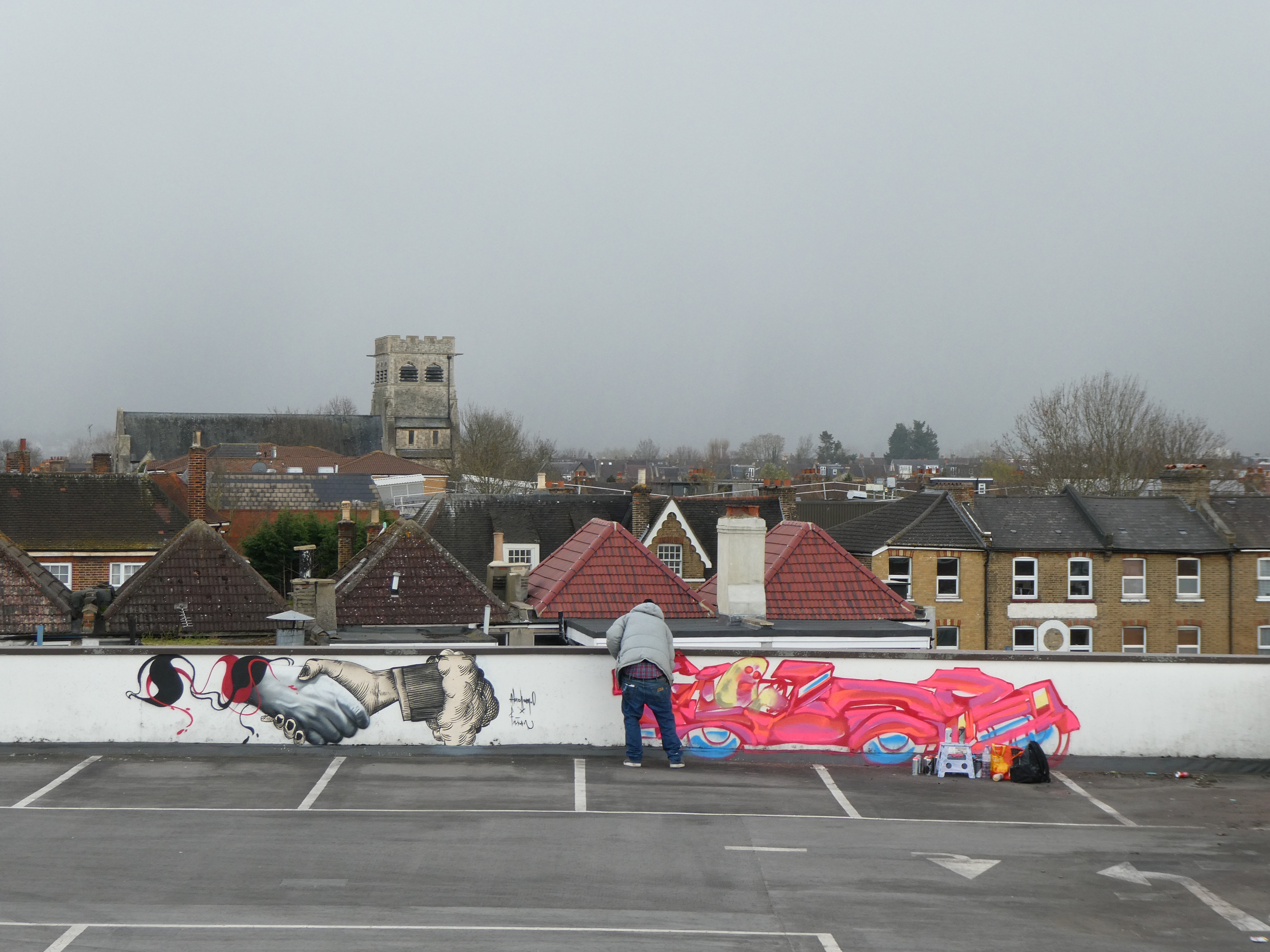 Tizer at work at the Penge Rooftop Gallery, Penge.