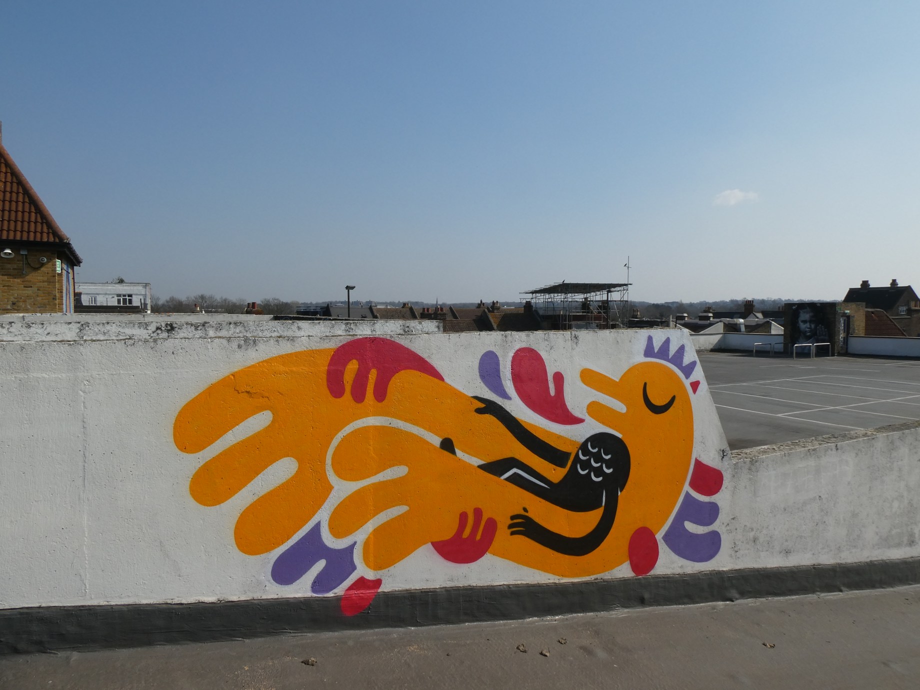 Next up we are taking a look at a trio of fantastic works – two solo works and one collaboration with Vinnie Nylon – placed up on a glorious spring day around Penge and Anerley by visiting artist KMG who made her way down from Scotland and left some beautiful and fun-fueled illustrative works in her wake. KMG’s artwork explores themes from the precarious to the mundane, often imbued with a subtle subversive dynamic to give her creations a little kick, fusing cynicism and playfulness masterfully.