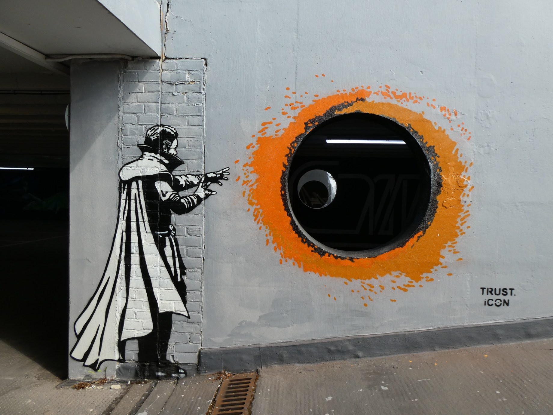 For our next blog post we are taking a look back at five excellent additions to Penge over the summer by the fantastic stencil artist TRUST.iCON for community mural project SprayExhibition20. Through his artistic output TRUST.iCON sets to capture a moment or a snapshot from his, and many peoples childhood, combined with his own style of poignant insight or humour often based on subjects from popular culture injected into each design, making his style his very own and his works what they are. His latest additions to SE20 over the last year are no exception. iCON has also continued to demonstrate his ability to come up with designs that suit quirky and unconventional spots absolutely perfectly. These fantastic works below were put up around Penge with support from ourselves London Calling Blog.