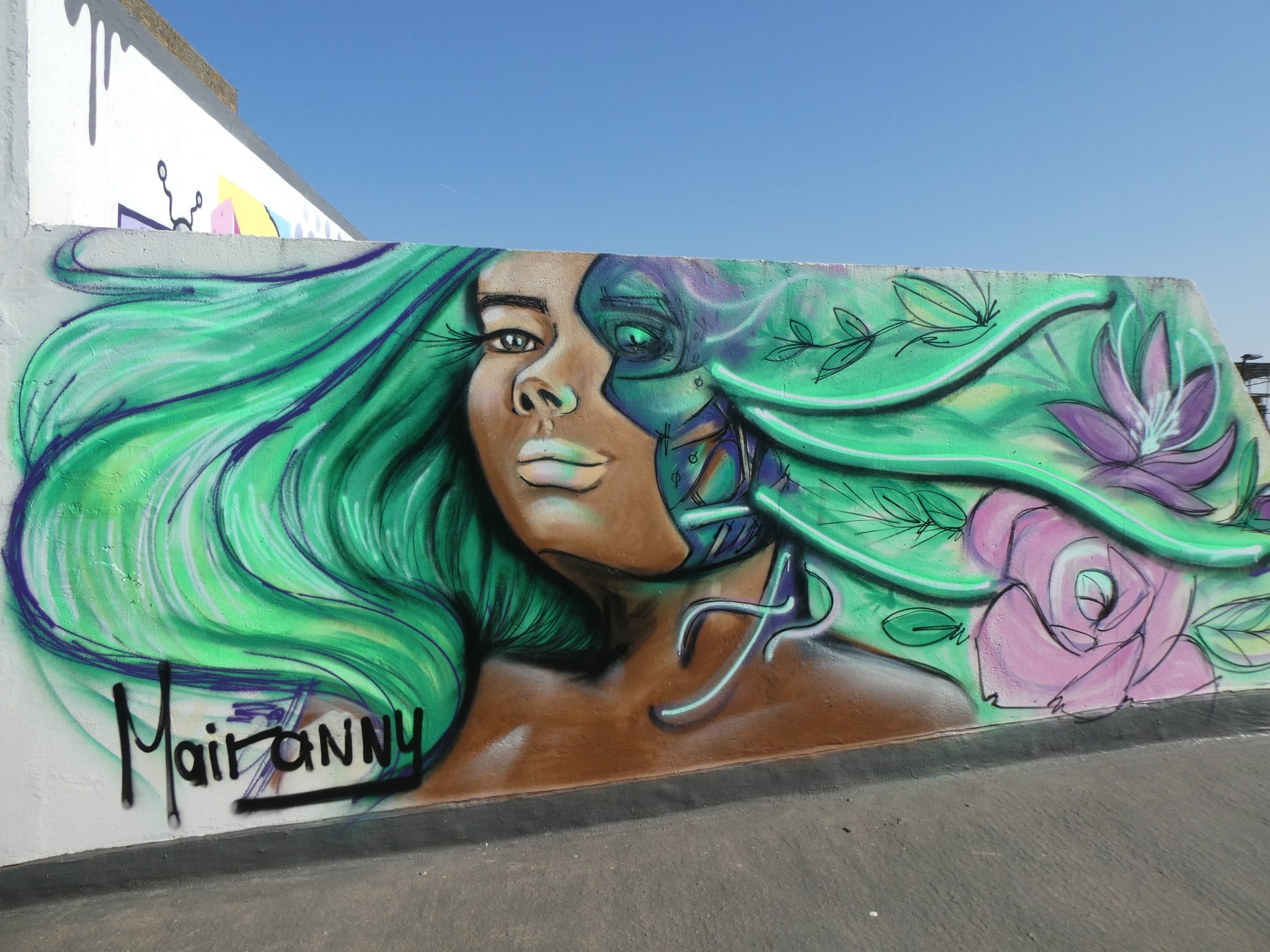 Earlier in 2022 London was fortunate enough to receive a visit from Brazilian street artist Mairanny who took up residency in the capital during the spring and summer and in that time hit up a number of works around East and South London, five of which we were fortunate enough to encounter. Mairanny’s work sets to depict imagery and subjects defined by a fusion of the natural world and the industrialized man-made realm, blending the soft and peaceful natural dynamics with the mechanized and robotic elements to great effect and simultaneously presenting an interesting view on how humanity’s creations continue to takeover and merge with the world that was here long before us. There is also one overriding themed dominant in her work and that is as you shall see the use of the colour green, especially with a predilection for energetic neon touches.