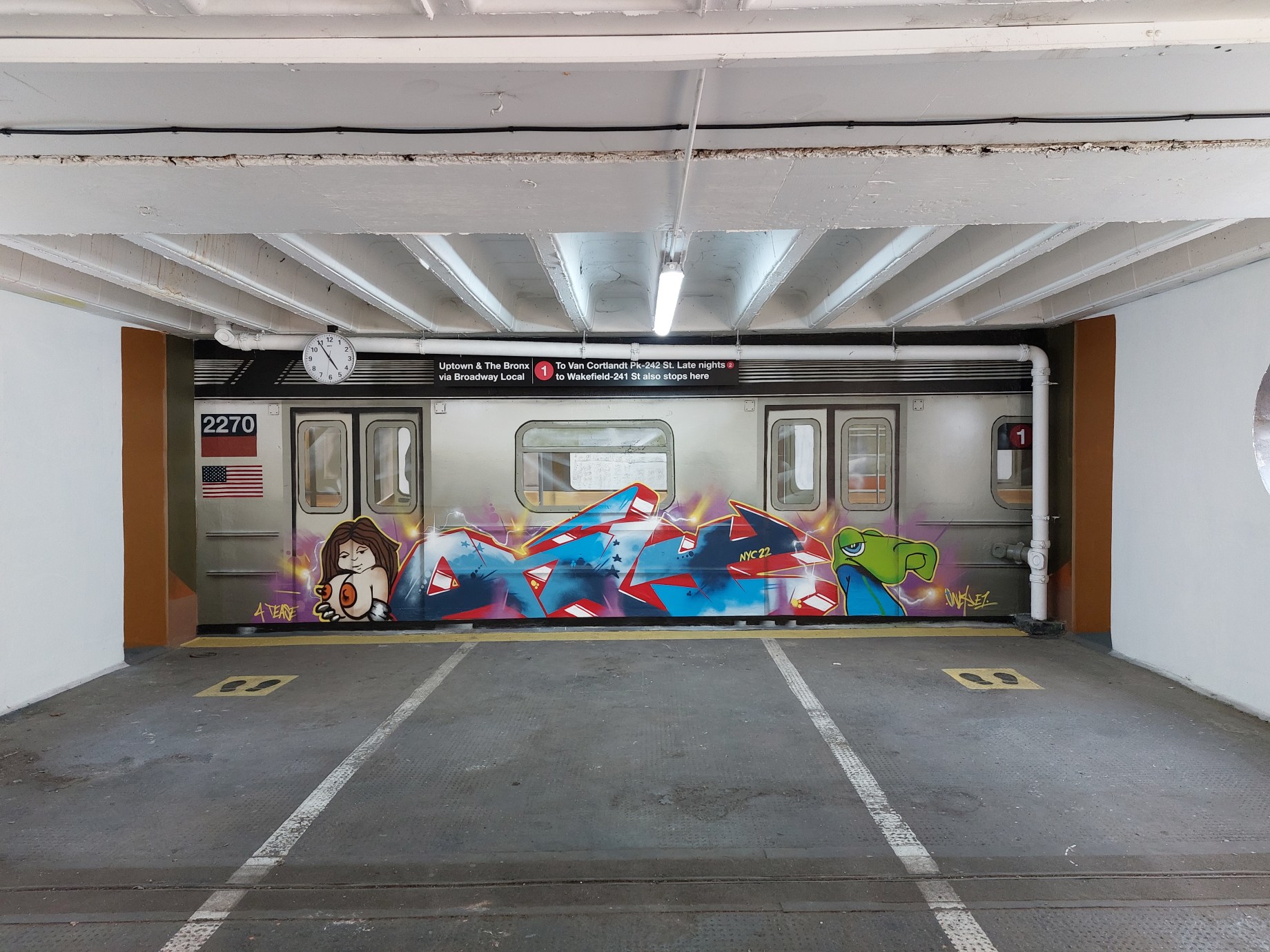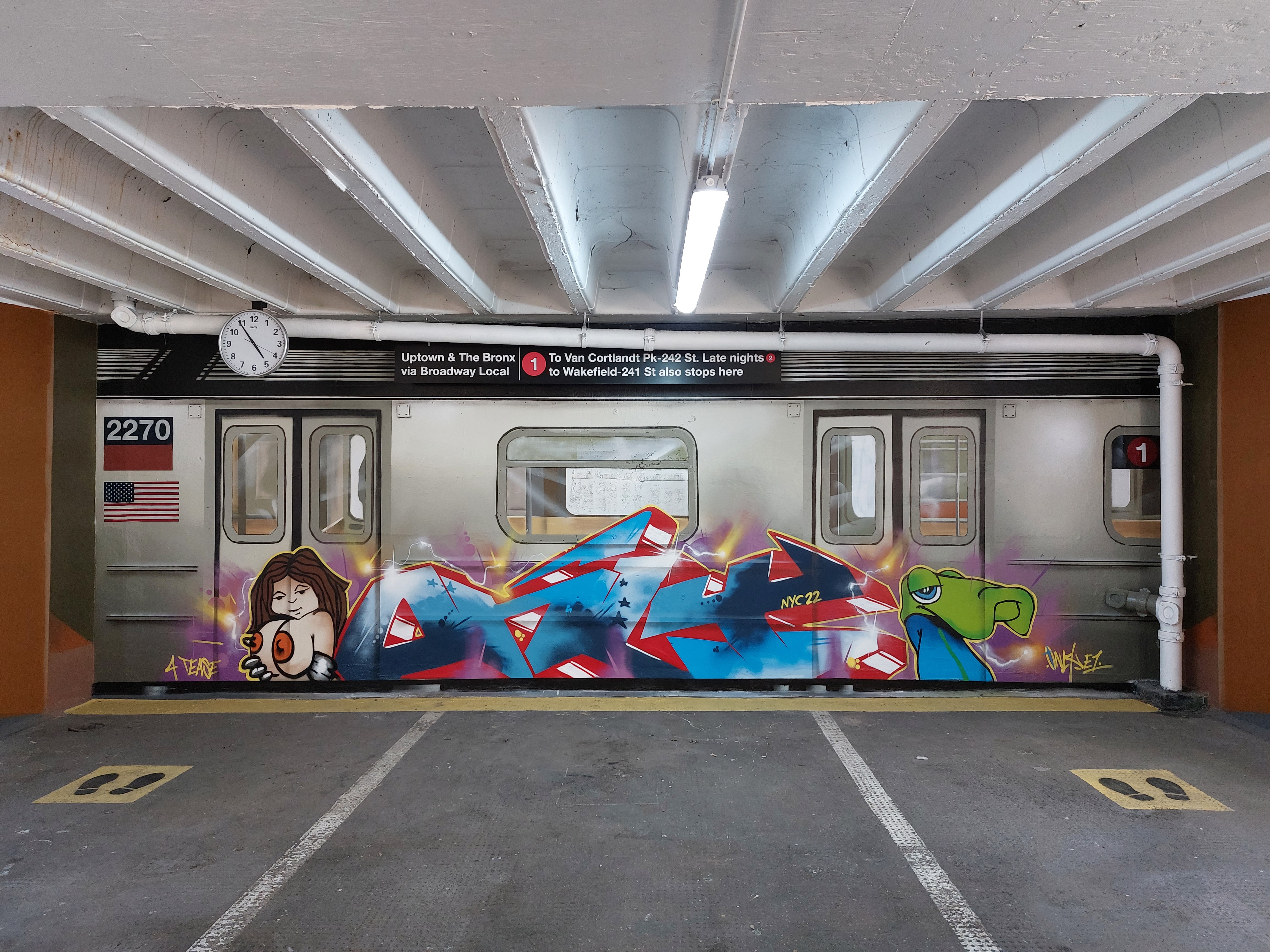 Only’s work is always so detailed and masterfully executed, On a whole the depth and details in his pieces are so incredibly clean, it really has to be seen in person to fully appreciate the effect he generates in his art. Of the works below we have to say that the New York subway installation are by far the most impressive pair of works from this artist this year, and for that matter the most impressive of anyone in London this year. These works represent an incredible use of space – we do love sight specific works – and an absolute level of perfection in the implementation. The additional touches of the subway sign and the ceiling clock set to New York time are just genius additions that elevate this piece to the next level.