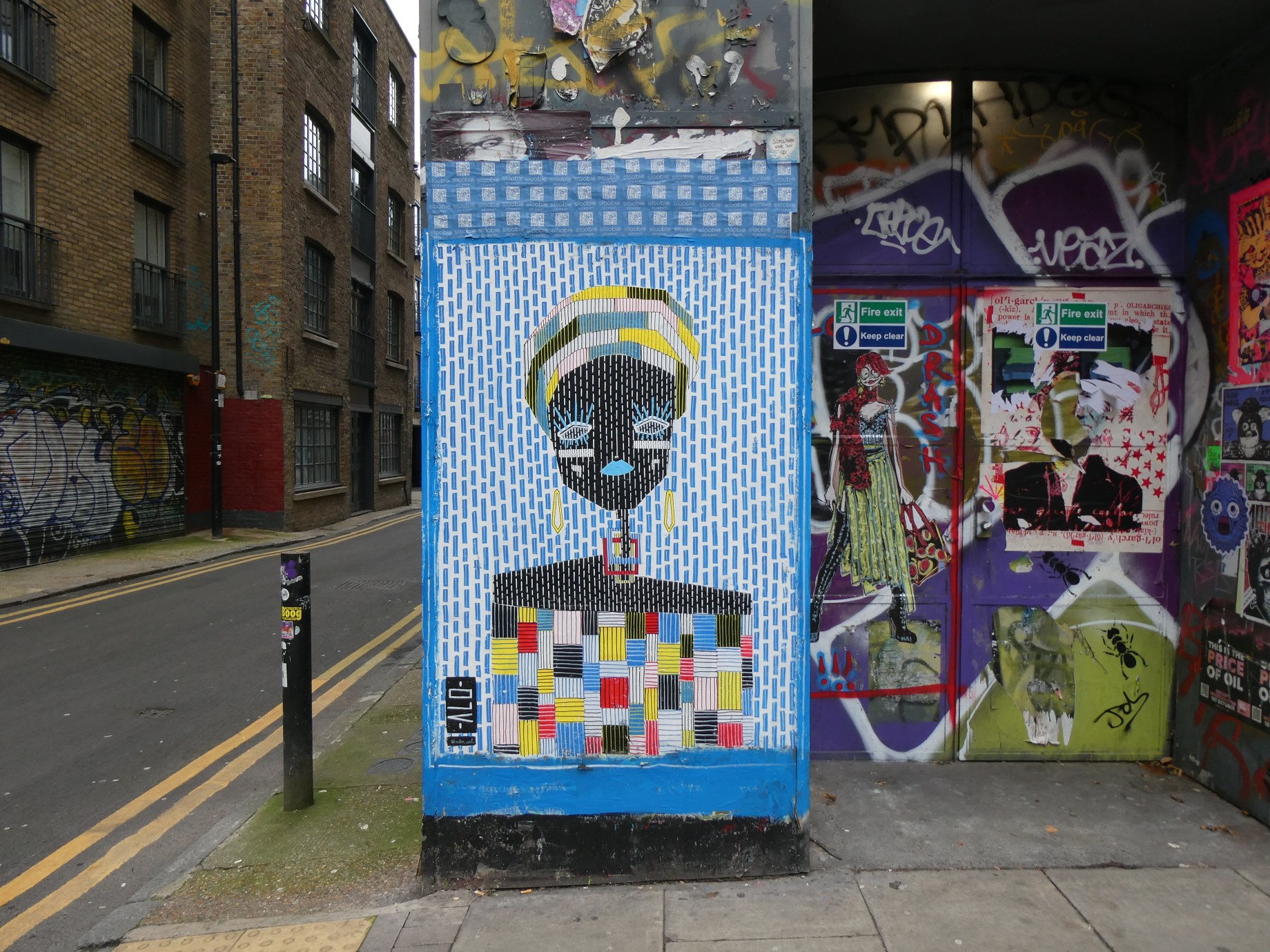 Next up in our look back at the last year, we are taking a look at four new street pieces from Alo which we saw on our visits to Shoreditch over the last 12 months. The artist’s work feature his own brand of urban expressionist abstract portraiture based on subjects including real people Alo observes on the streets, people from the media as well as mythical creatures, setting to examine their role in society, Creating his public artworks using a combination of brushes, acrylic and mixed media, mixing painting with a mixed media technique. It is always a pleasure to spy fresh work from this inimitable artist and we look forward to the next time we come across his work when venturing up the East End.