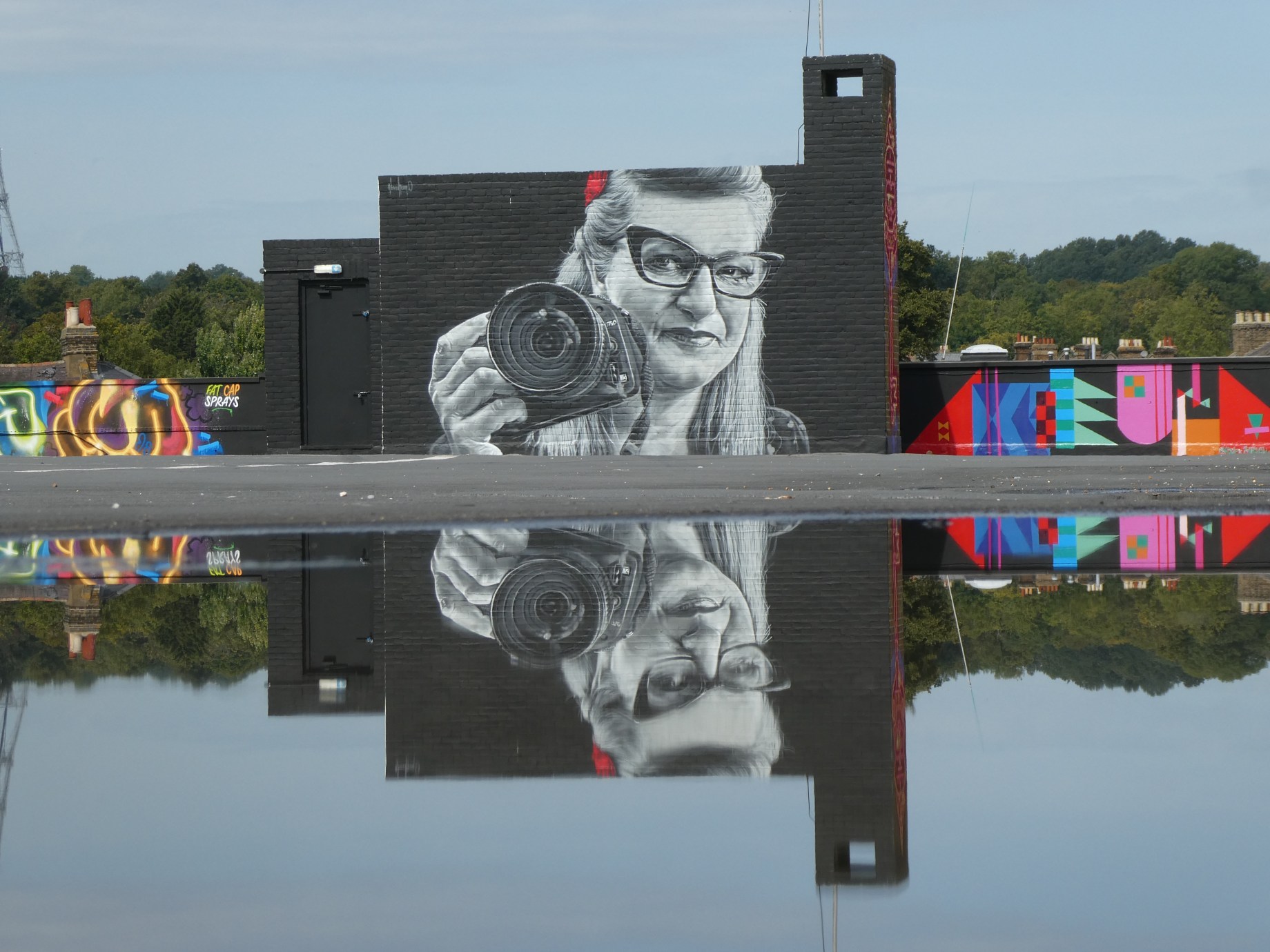 Even though we just featured a series of works from Abraham.O in our last blog post, we wanted to give this incredible work below a post of his own. Taking to the top floor of the Penge Rooftop Gallery Abraham.O painted a stunning portrait of our dear friend Street Art Atlas. Having worked with many people over the years, we have yet to work with anyone more trustworthy, driven and dedicated to supporting the artistic community than this person. Not only is she the best street art photographer in the country, we have yet to meet someone more dedicated to supporting the urban art scene than this woman. Something which extends way beyond taking first-rate photographs. We have been organising walls around Penge and elsewhere in London for 8 years now and from day one Street Art Atlas has been there documenting works from beginning to end, holding ladders, grabbing food and drink, driving paint, artists and ourselves around, making a book that we raised over £5k for the local Hospice with and so many more things to support making art happen. Our SprayExhibtion20 project in Penge would not be as big and thriving as it is without our team of Kevin and Street Art Atlas. Freezing cold, baking hot, silly early and late she is always there, taking “just one more shot”, which is always worth waiting for! Thank you to Street Art Atlas for everything they do supporting the whole scene and more specifically OUR scene in SE20. It has been our privilege to have her as part of everything that is London Calling Blog. We aren’t the only ones who recognise all the effort, time and immense dedication she puts into the scene, as exemplified by Abraham.O choosing her as his subject for painting this killer spot. We are also very grateful to Abraham.O for choosing to paint her portrait in Penge, we may be biased, but nowhere was more fitting for it.