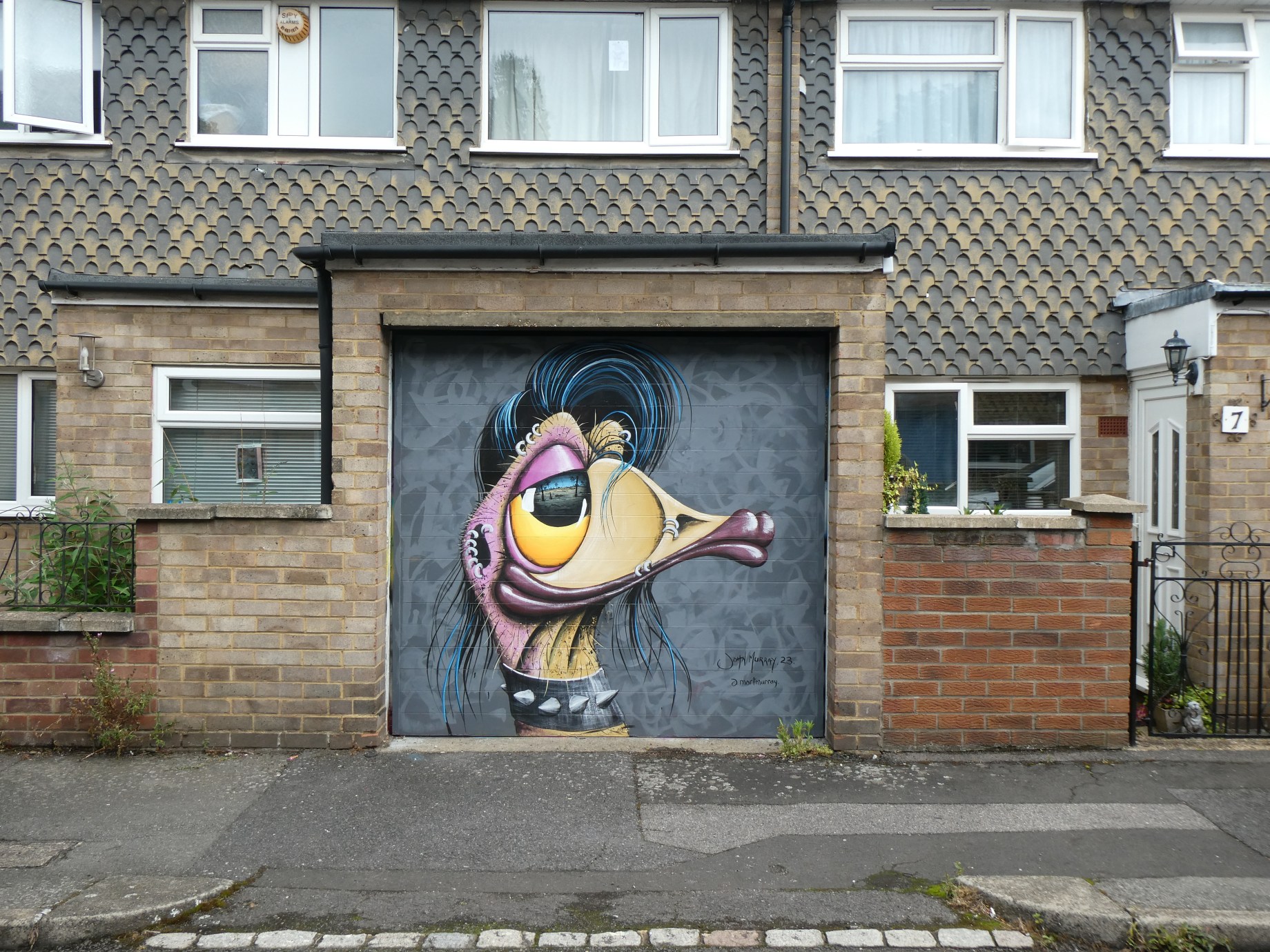 During the summer London was lucky to receive a visit from two exceptionally talented Australian artists, who both very much made the most of their short visit from across the other side of the world to get up all over the place. One of the artists in question was John Murray – aka Mort Murray – who predominantly paints personified Emu’s, inspired by the wildlife of his homeland, based on his exceptionally original Ernie character, which has evolved into a whole host of variations – as exemplified below. Painted at impressive speed for acrylic paint and brush work, it was a pleasure to witness John Murray paint two spots on his day in Penge, and in general whilst in London, to leave such an incredible series of Emu’s in a host of fashions, be it a punk aesthetic or a classic city gent. Whatever the subject there is a strong subversive dynamic to his subjects, as characterized by the abundance of facial jewelry they feature – or what some of they may be smoking. It was an absolute pleasure to have this artist come paint in London and even more so to have him come and paint in our corner of the world, we for one very much hope it isn’t to long before he returns to share some of his captivating and fun characters for us to enjoy further.