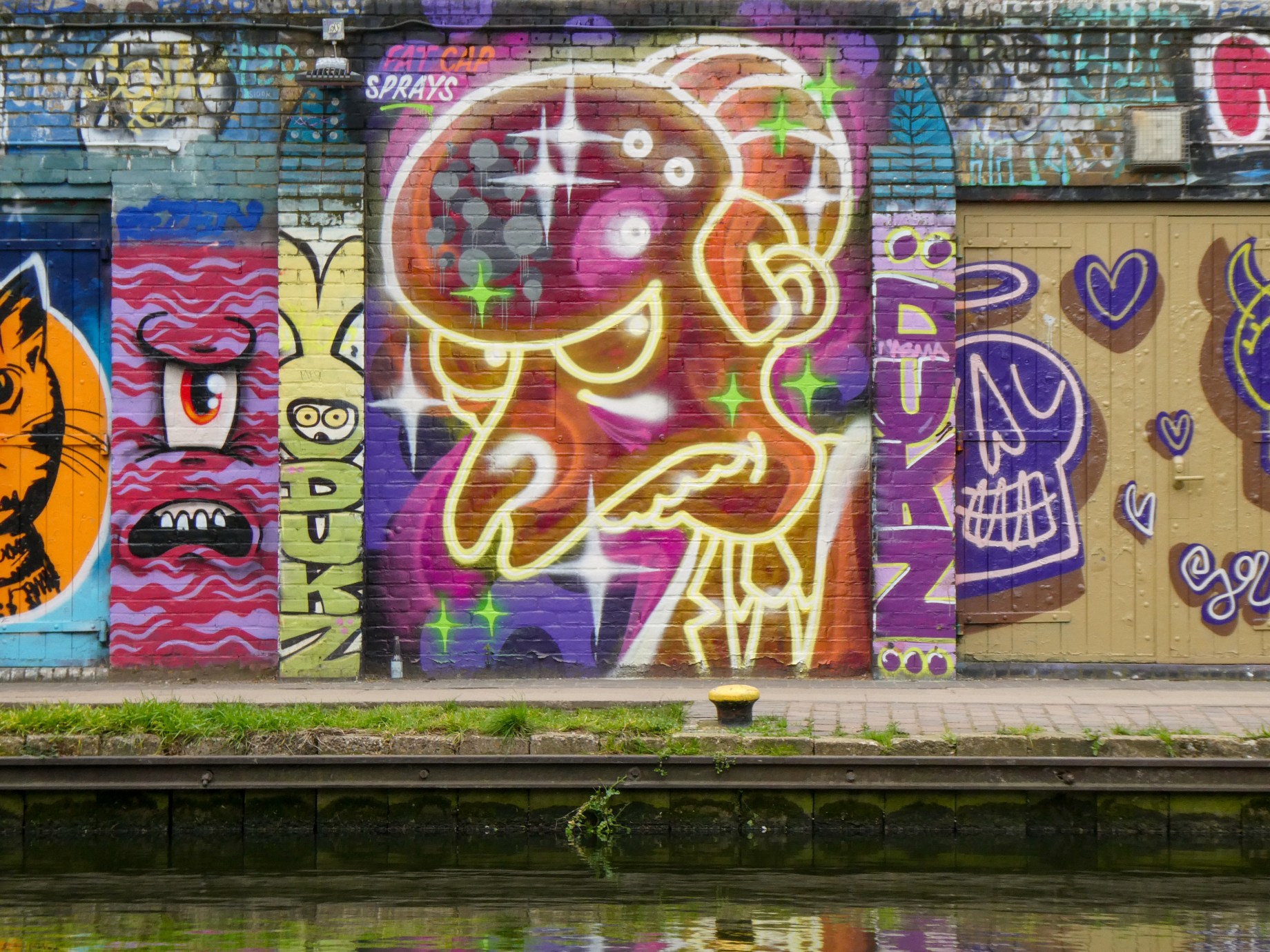 For this blog post we are taking a look at a pair of artworks that have been placed up over the last couple of months, which we have seen on our recent visit to Hackney Wick in East London from street artist Fat Cap Sprays. It’s always a pleasure see fresh works from this prolific artist and thankfully we never have to go to far and wait to long to do so, this artist is always getting up all over London. Both works have been depicted in the artist’s own distinct take on neon style illustration that bring these characters to life and really pop from the surface they adorn. It was a pleasure to see what we believe is now the third The Simpsons character this artist has placed up along the canal – this time in the form of the one and only Mr Burns and we previously saw the painting of Groundskeeper Willie.