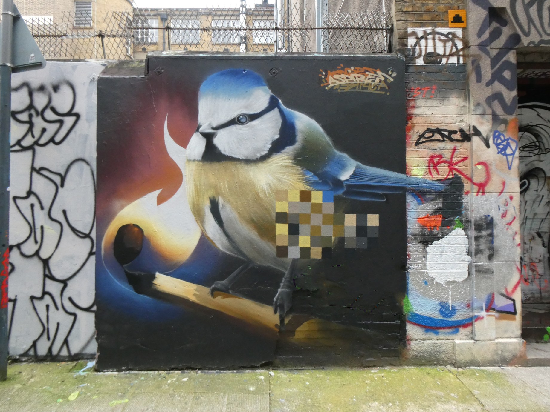 Earlier this year street artist Aspire took to Brick Lane to hit up a pair of bays with two additions of his Firestick Series. For an artist that is so proactive around London and beyond his work makes for a surprisingly exotic sighting when it comes to the Brick Lane and Shoreditch area of the scene. So it was definitely a treat to see this pair of drops in a less common environment, with one work featuring a Blue Tit and the other a Sparrow as the subjects of his predominantly bird focused works. Of the two works, our favourite is the Blue Tit in placed up in Corbett Place, solely for the tail coming out of the frame of the wall, however both pieces were fantastic. The work below in Corbett Place is miraculously still up and running. The work in Jerome Street is however long gone.