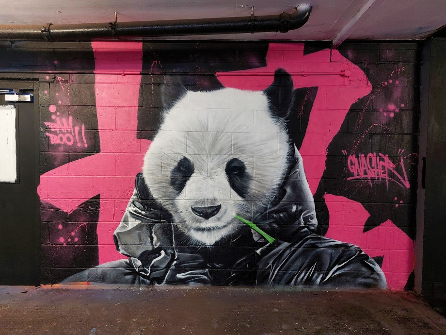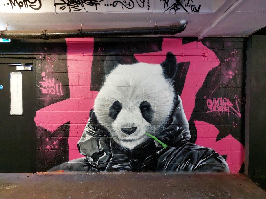 For our next post looking back at what’s been happening through 2024, we are back in Penge and taking a look at this fun and well executed piece by street artist Gnasher. Bringing his first rate photorealistic style, in the form of this larger than life panda depicted wearing a human jacket and chewing a piece of bamboo, whilst set in front of Chinese Hanzi letters. It has been sometime indeed since we last saw work from Gnasher in London and it was more than worth the wait to see this piece. This superb work was placed up at the Penge Rooftop Gallery, Penge, and was put up with support from ourselves London Calling Blog.