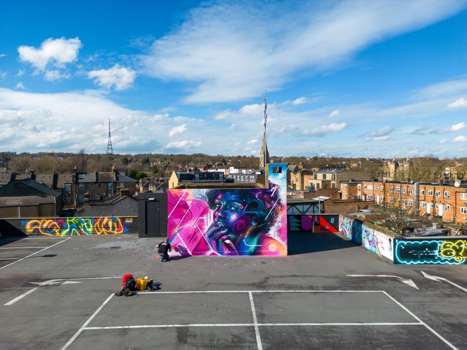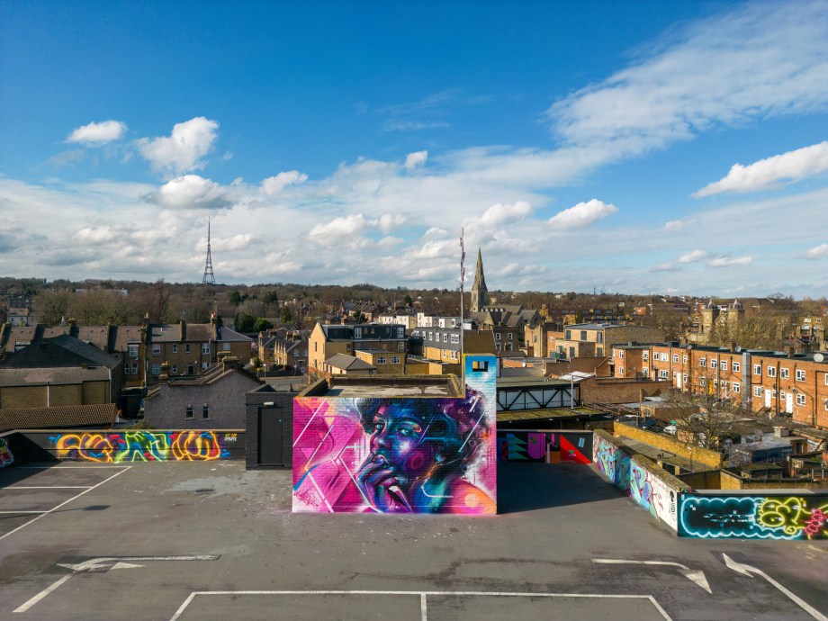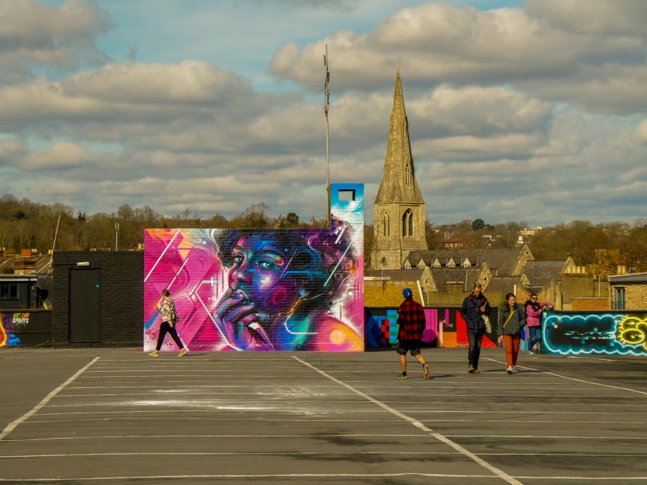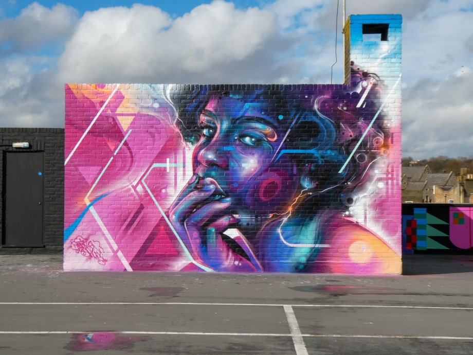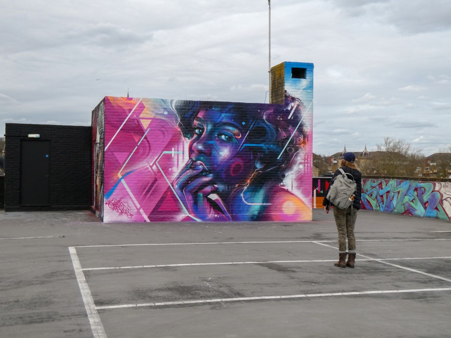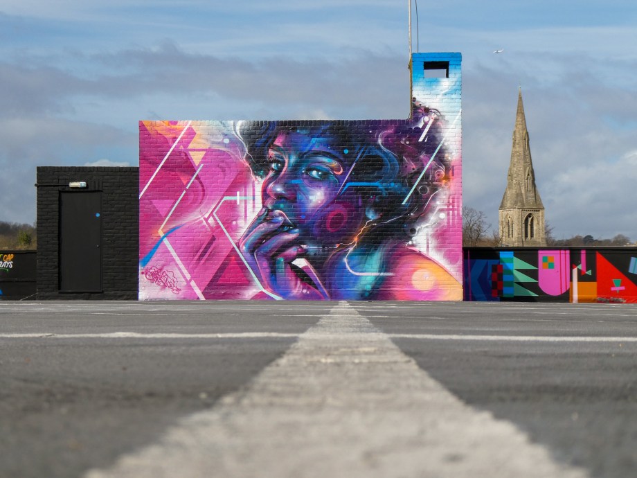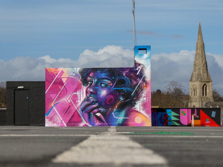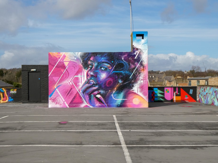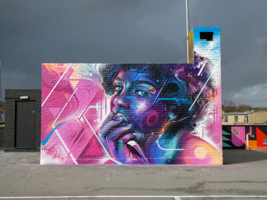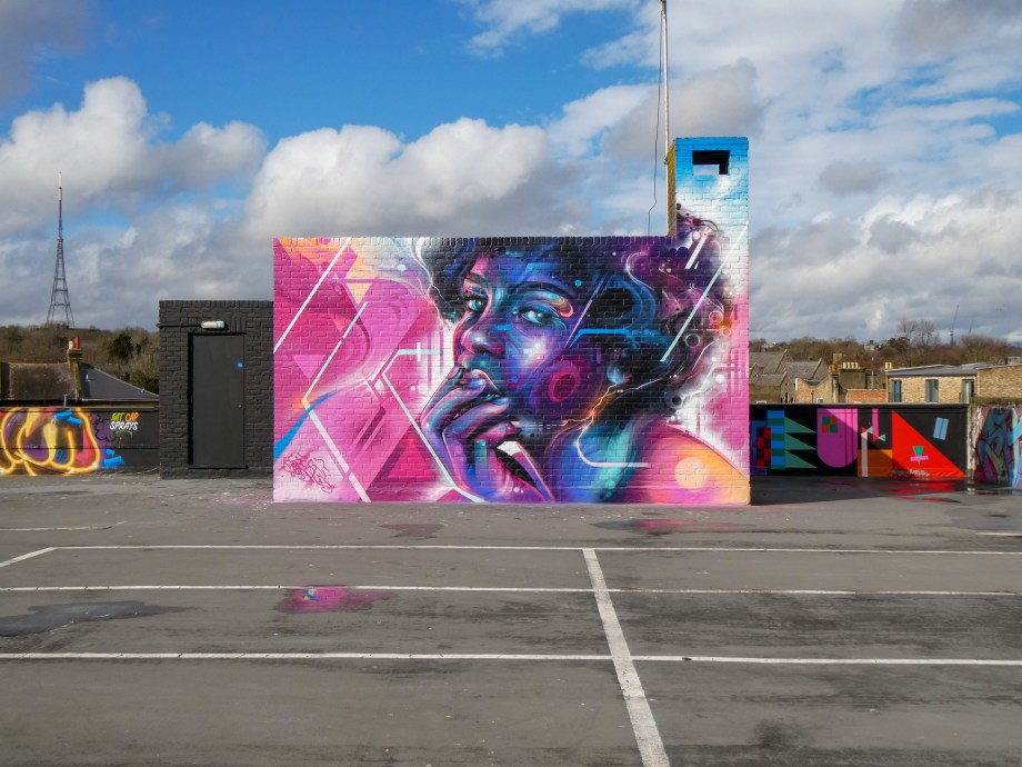 For our next post playing catch up with works and pieces we have had the pleasure of seeing in 2024, we are taking a look at a beautiful artwork by local and internationally acclaimed street artist Mr Cenz that was placed up in Penge at the end of the winter weather. The piece is immediately recognizable as being by Mr Cenz, presenting his distinct and striking colourful portraits featuring a black female subject fused with geometric dynamics depicted in the artist’s entirely original and trademark ‘futuristic space funk’ style. This stunning artwork was placed up at the Penge Rooftop Gallery, Penge, and was put up with support from ourselves London Calling Blog.