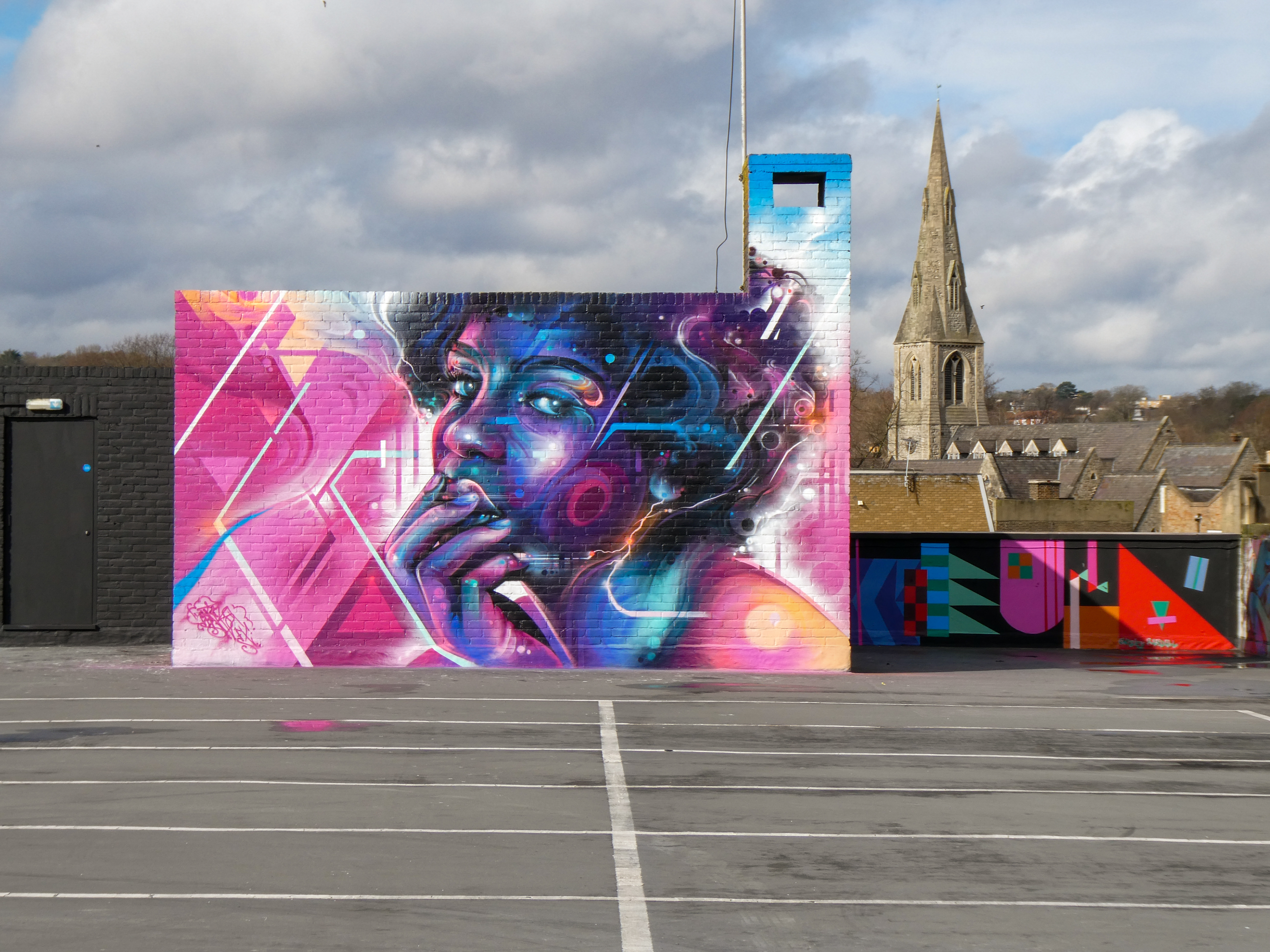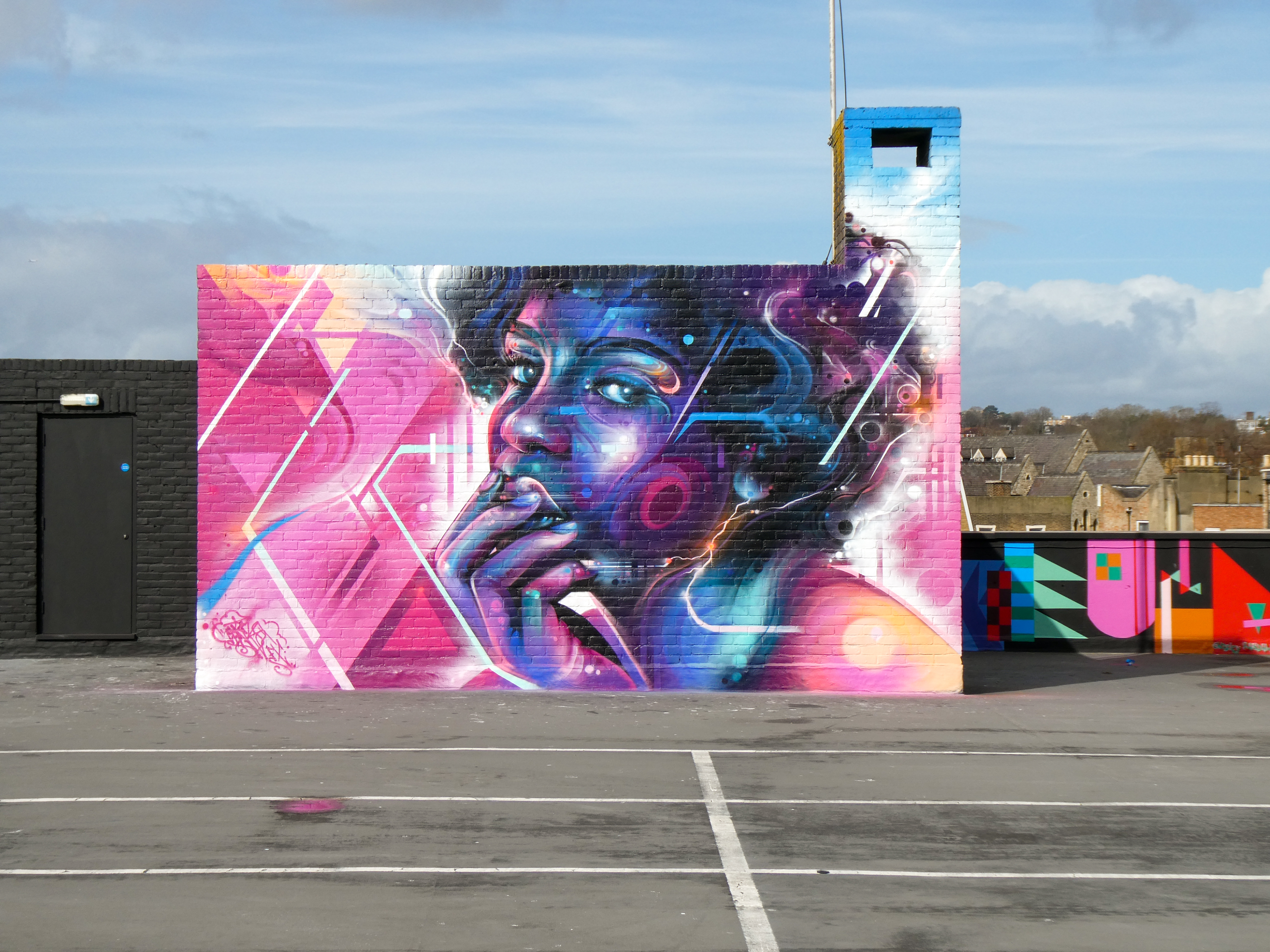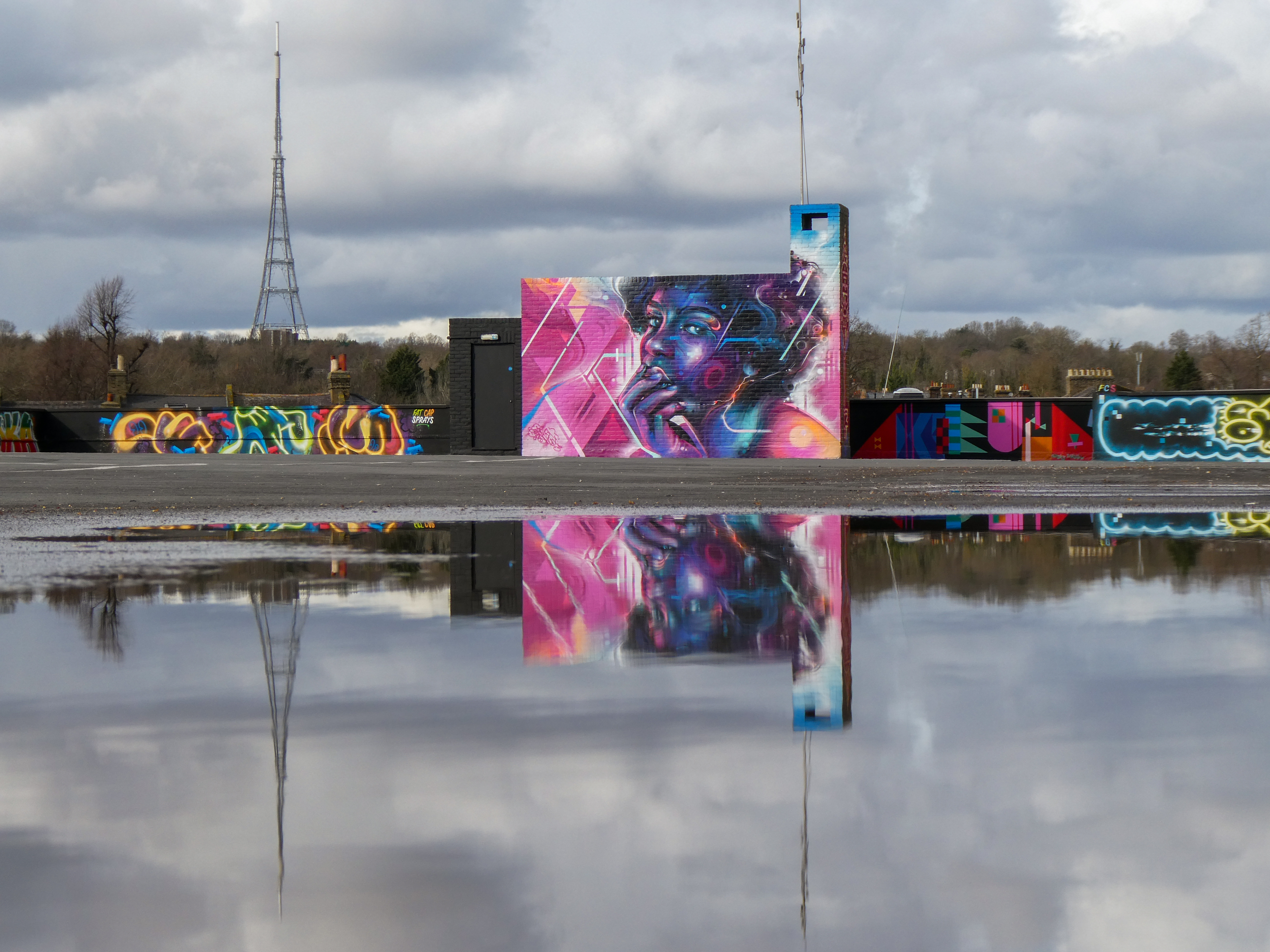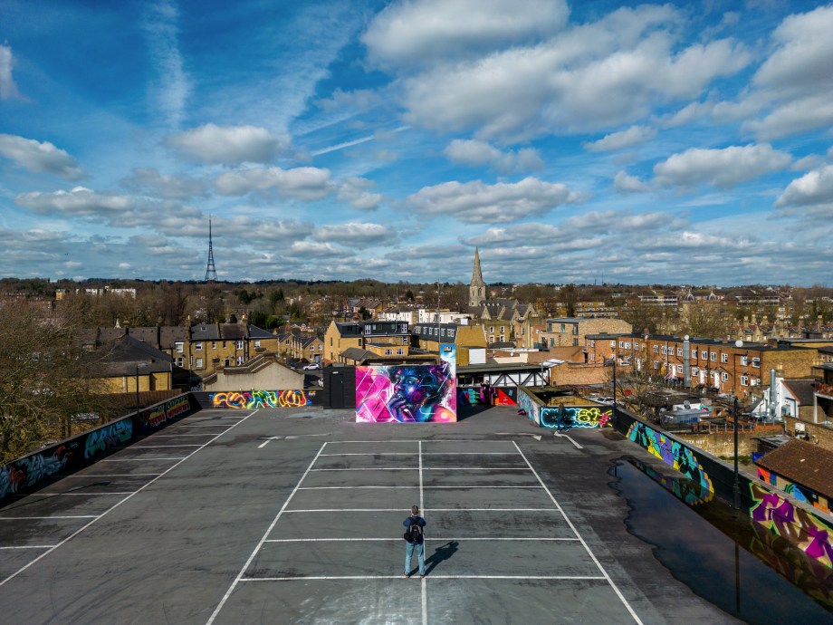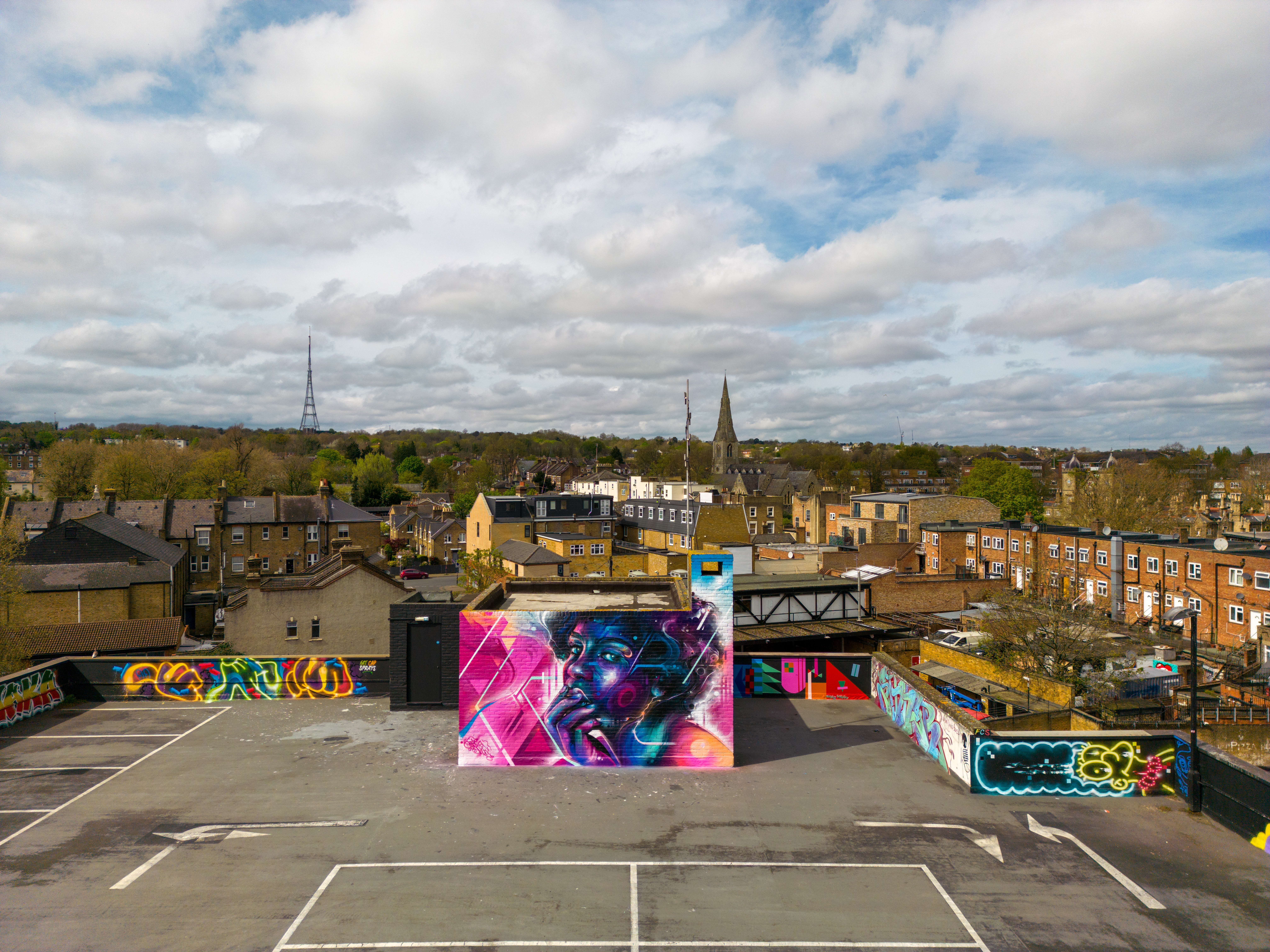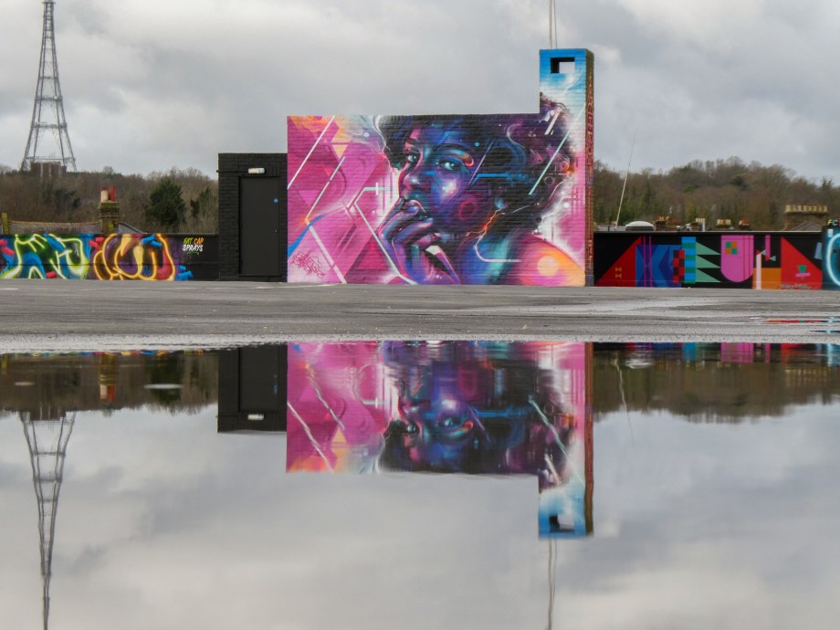 For our next post playing catch up with works and pieces we have had the pleasure of seeing in 2024, we are taking a look at a beautiful artwork by local and internationally acclaimed street artist Mr Cenz that was placed up in Penge at the end of the winter weather. The piece is immediately recognizable as being by Mr Cenz, presenting his distinct and striking colourful portraits featuring a black female subject fused with geometric dynamics depicted in the artist’s entirely original and trademark ‘futuristic space funk’ style. This stunning artwork was placed up at the Penge Rooftop Gallery, Penge, and was put up with support from ourselves London Calling Blog.