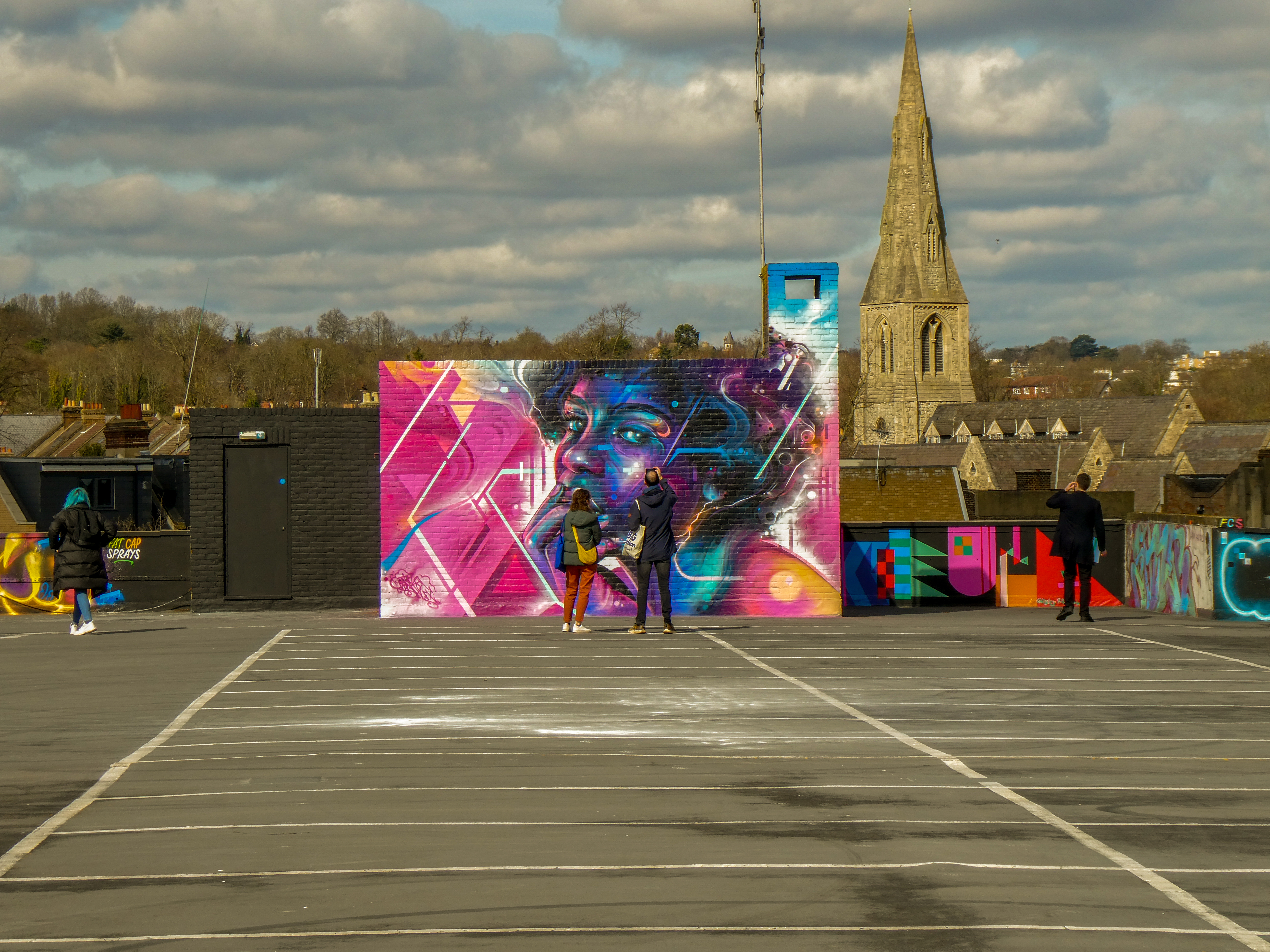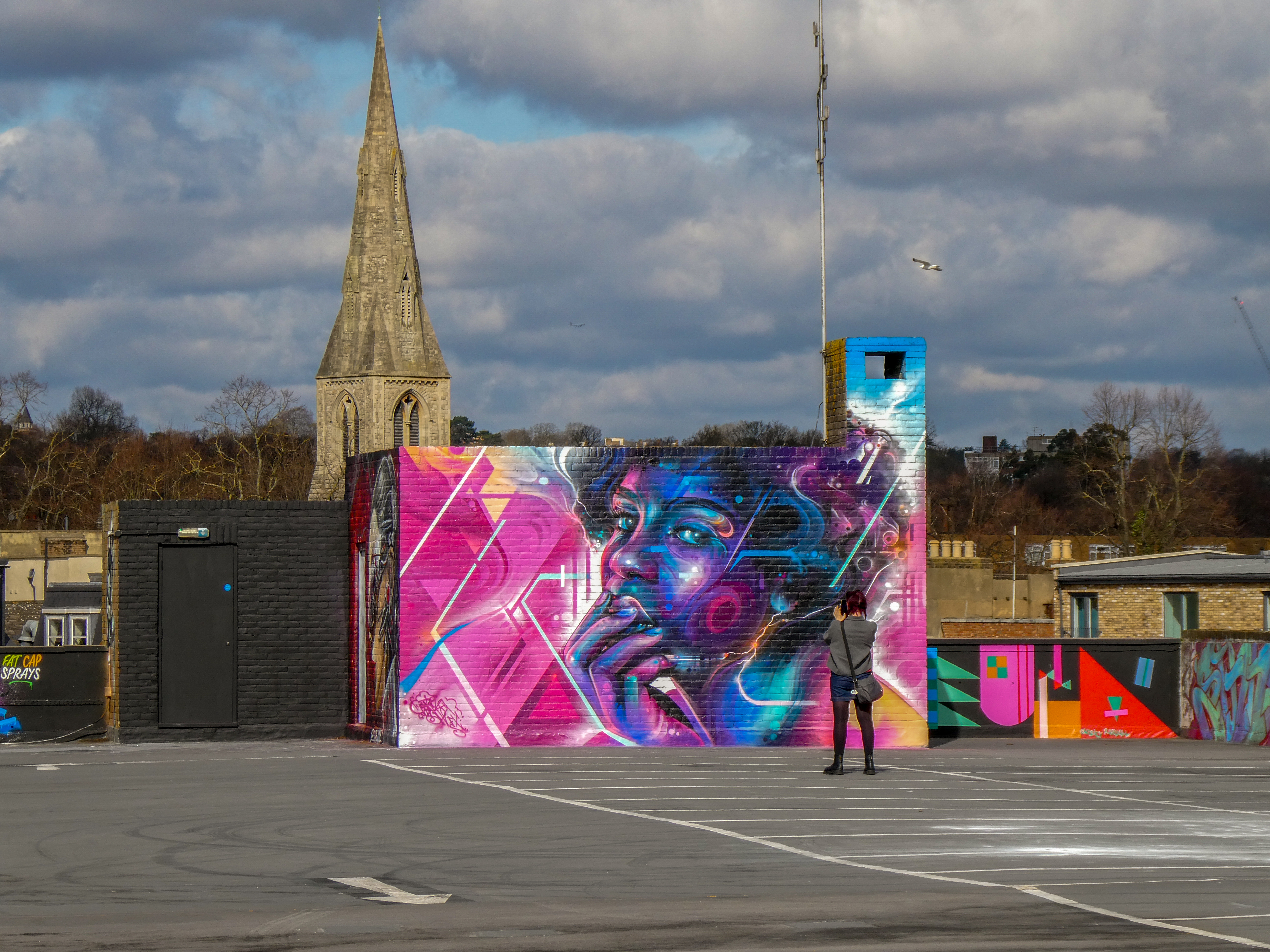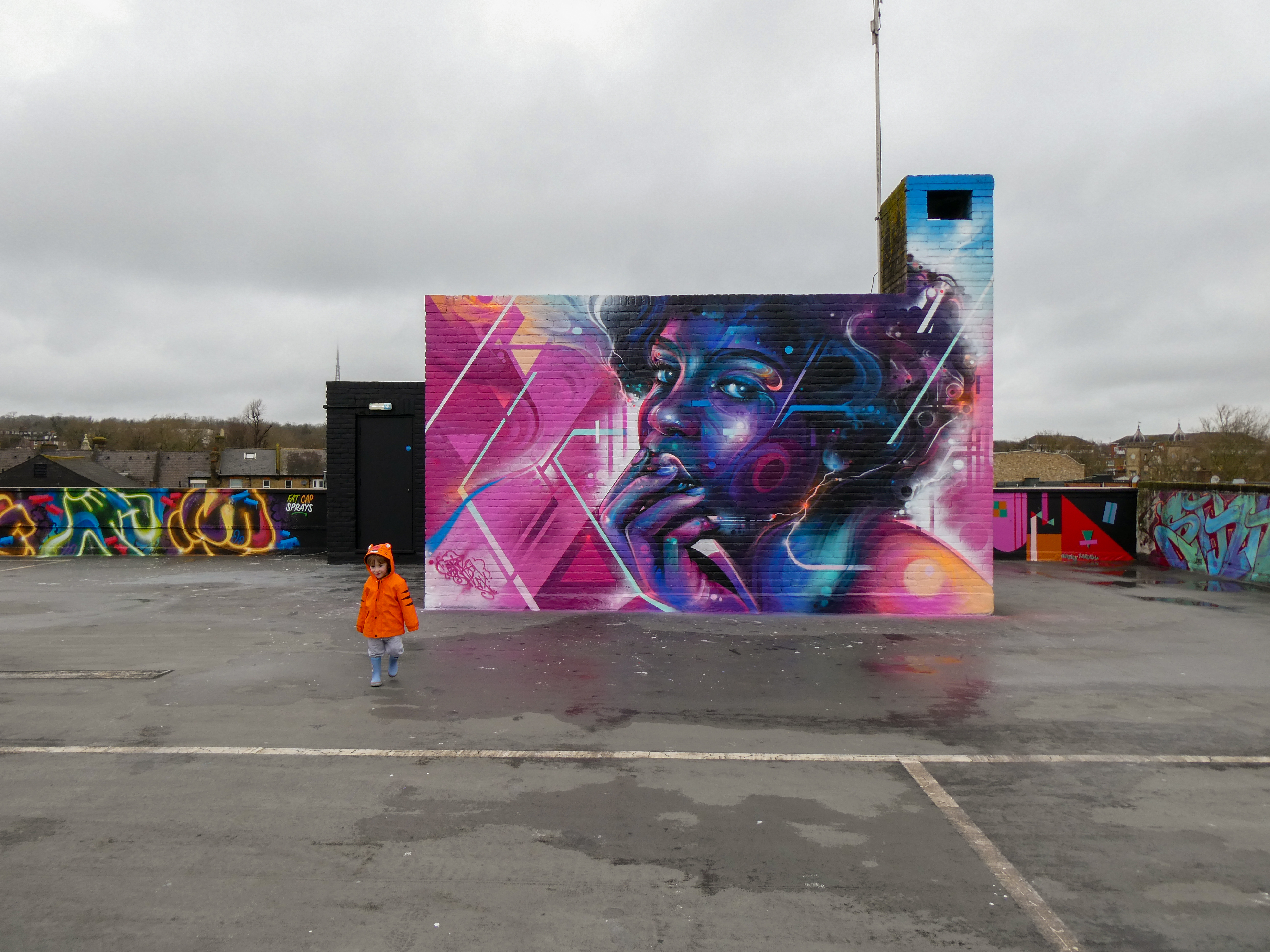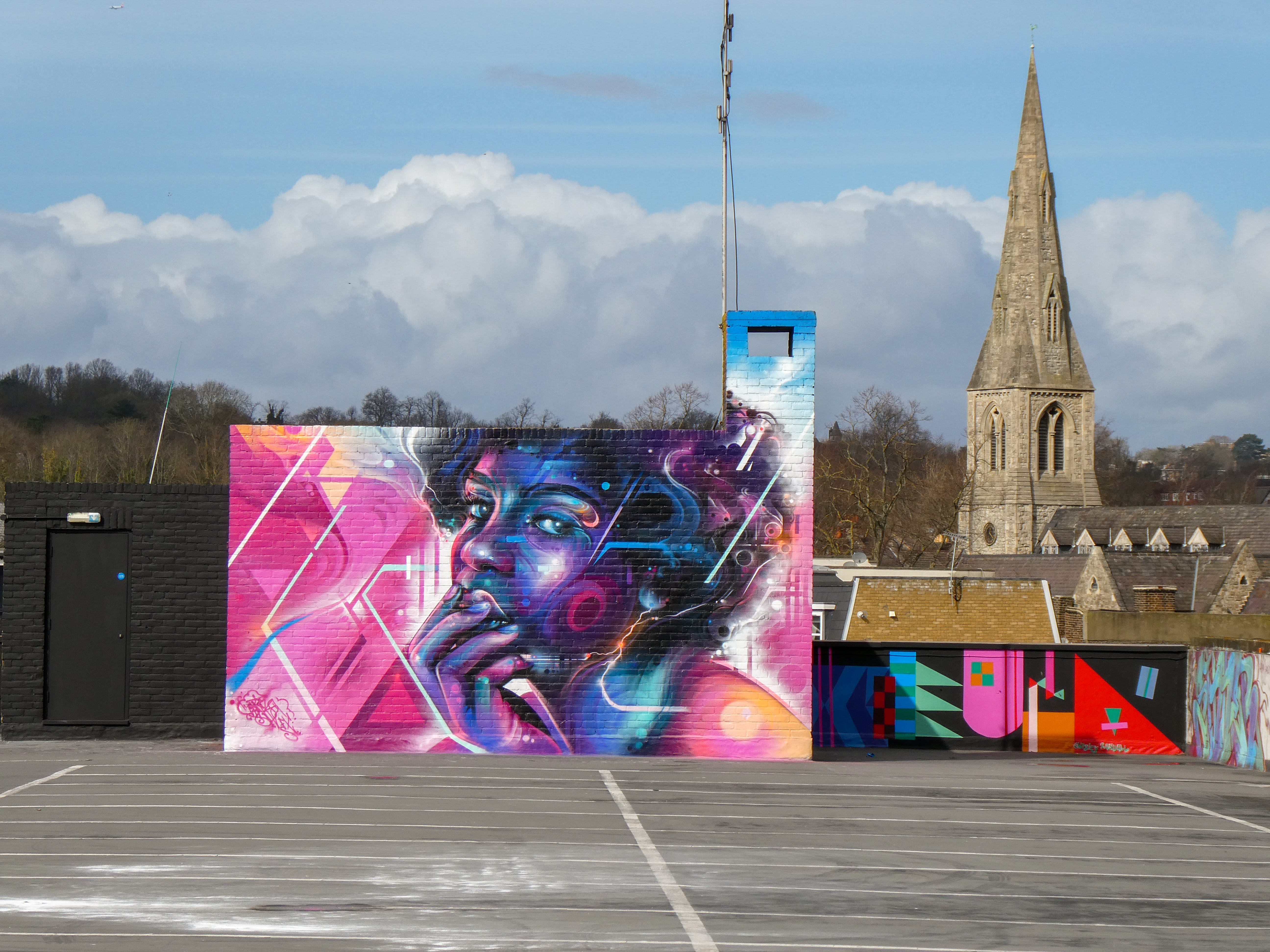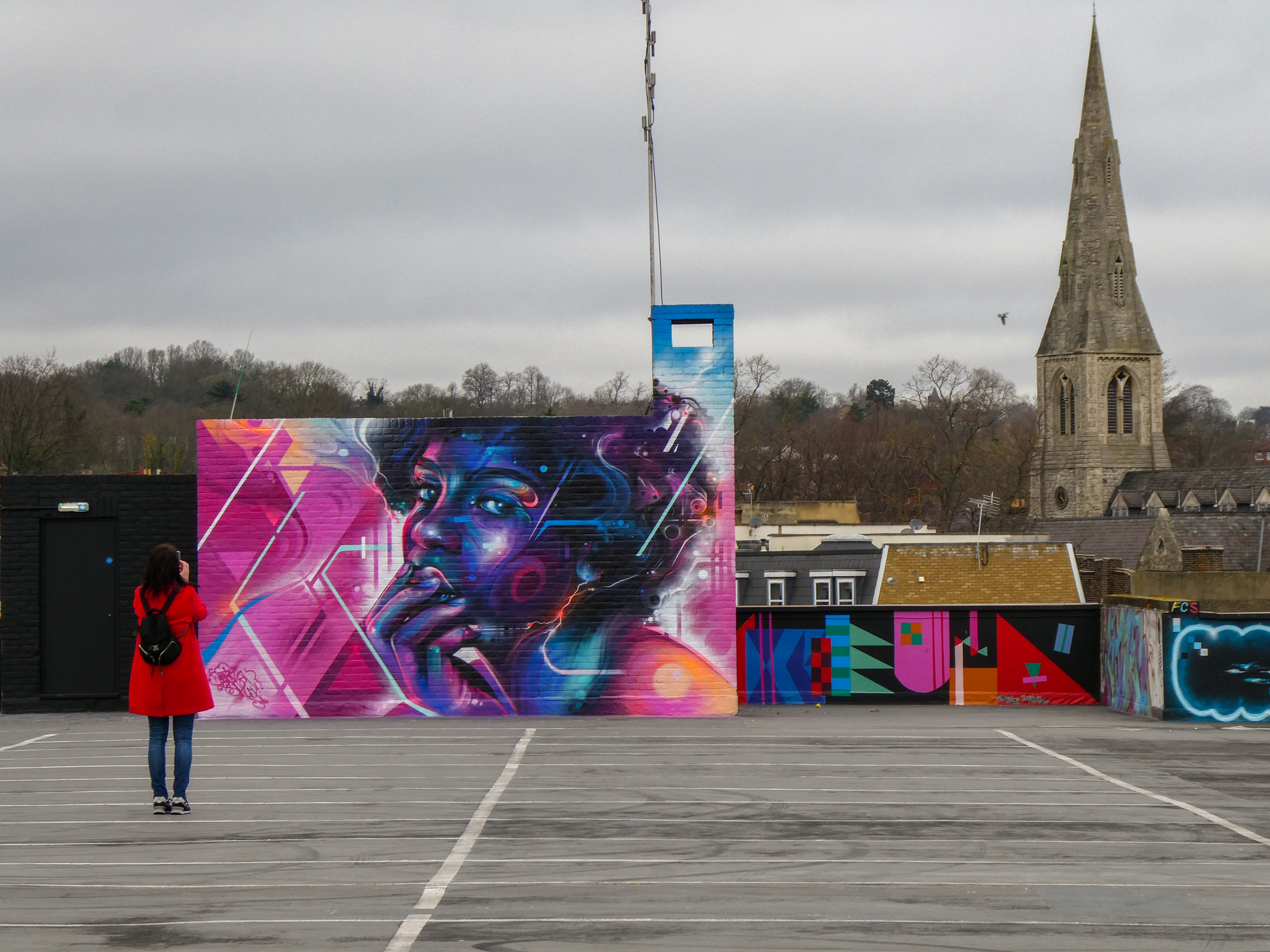 For our next post playing catch up with works and pieces we have had the pleasure of seeing in 2024, we are taking a look at a beautiful artwork by local and internationally acclaimed street artist Mr Cenz that was placed up in Penge at the end of the winter weather. The piece is immediately recognizable as being by Mr Cenz, presenting his distinct and striking colourful portraits featuring a black female subject fused with geometric dynamics depicted in the artist’s entirely original and trademark ‘futuristic space funk’ style. This stunning artwork was placed up at the Penge Rooftop Gallery, Penge, and was put up with support from ourselves London Calling Blog.