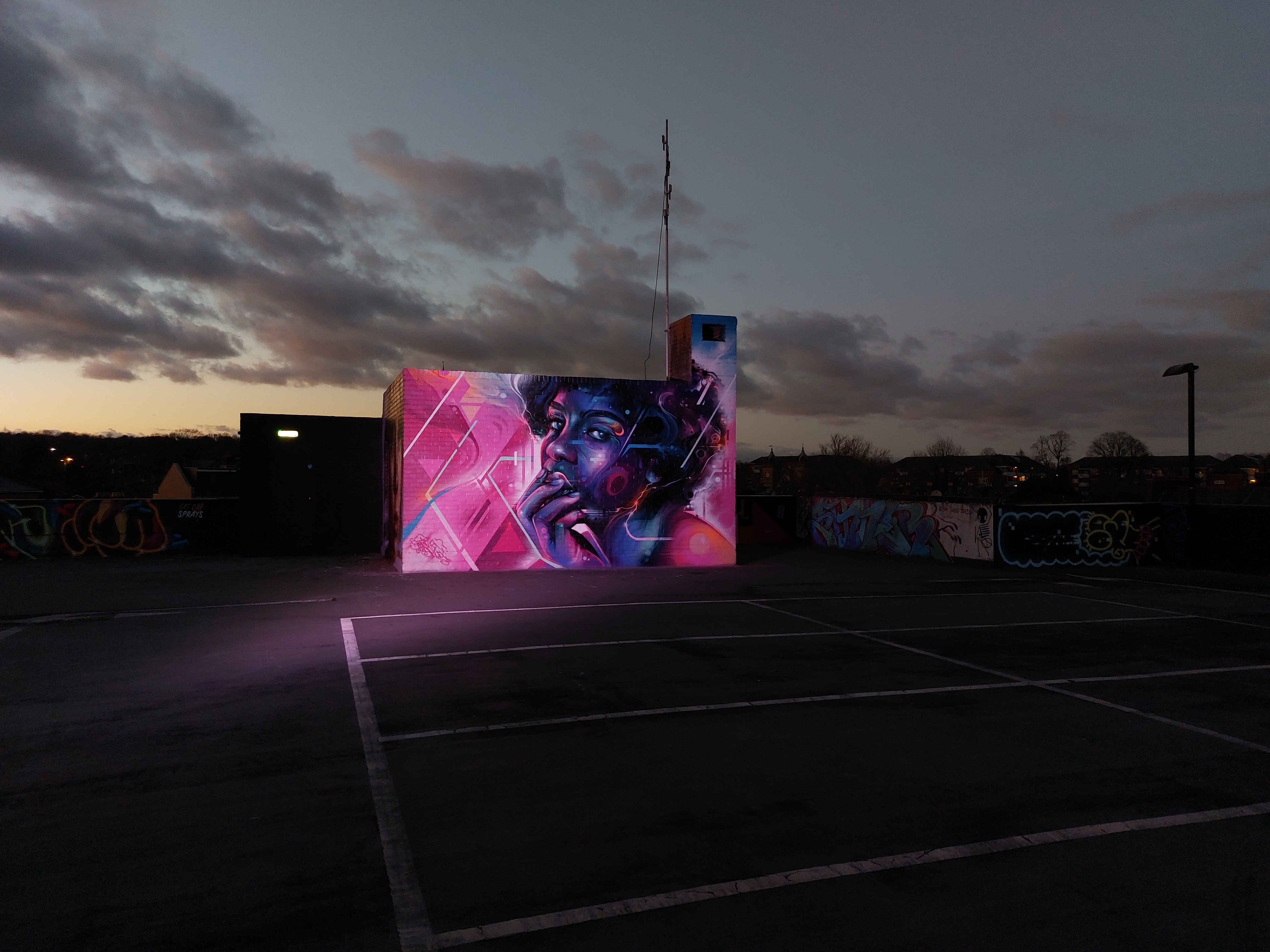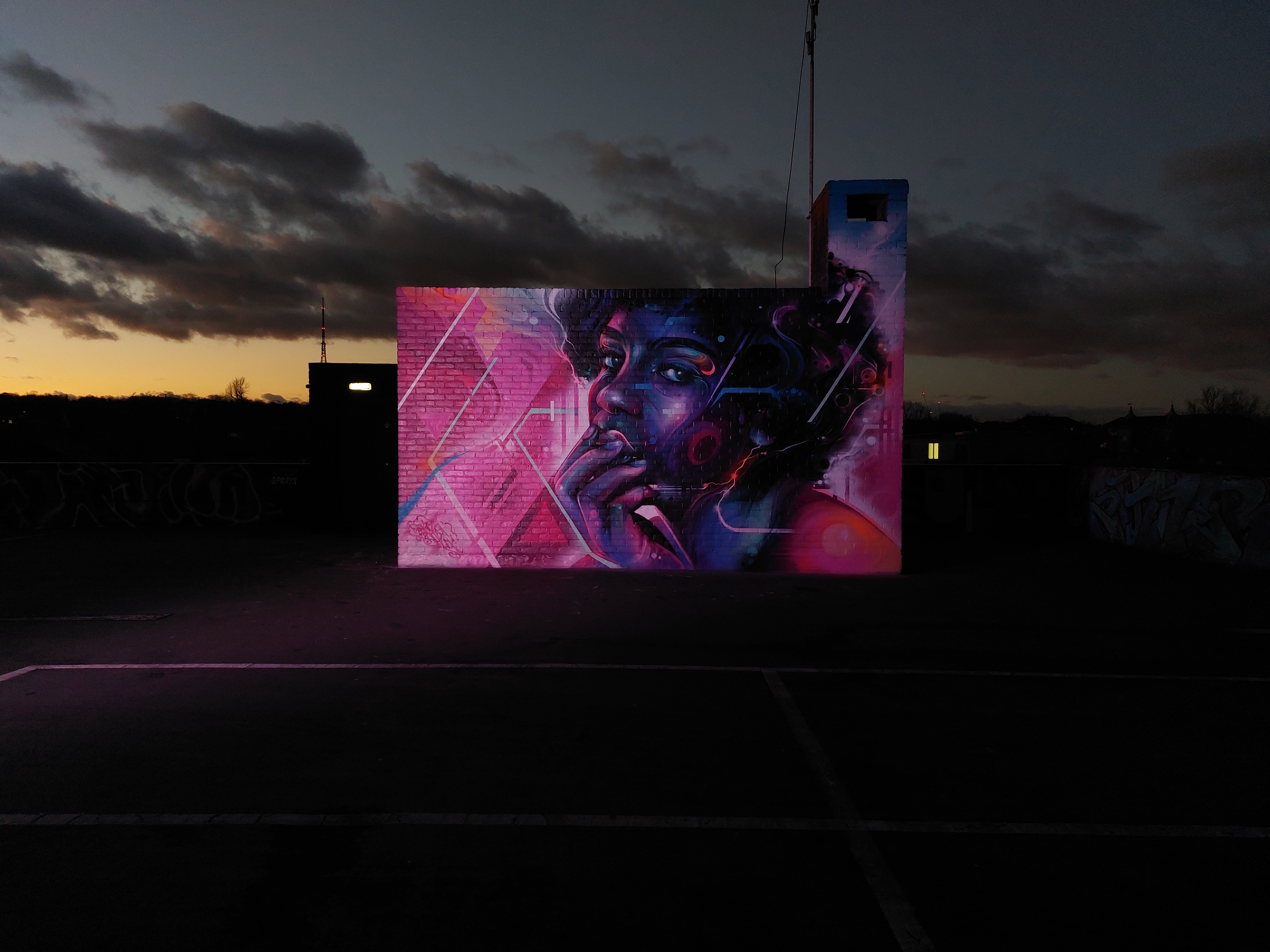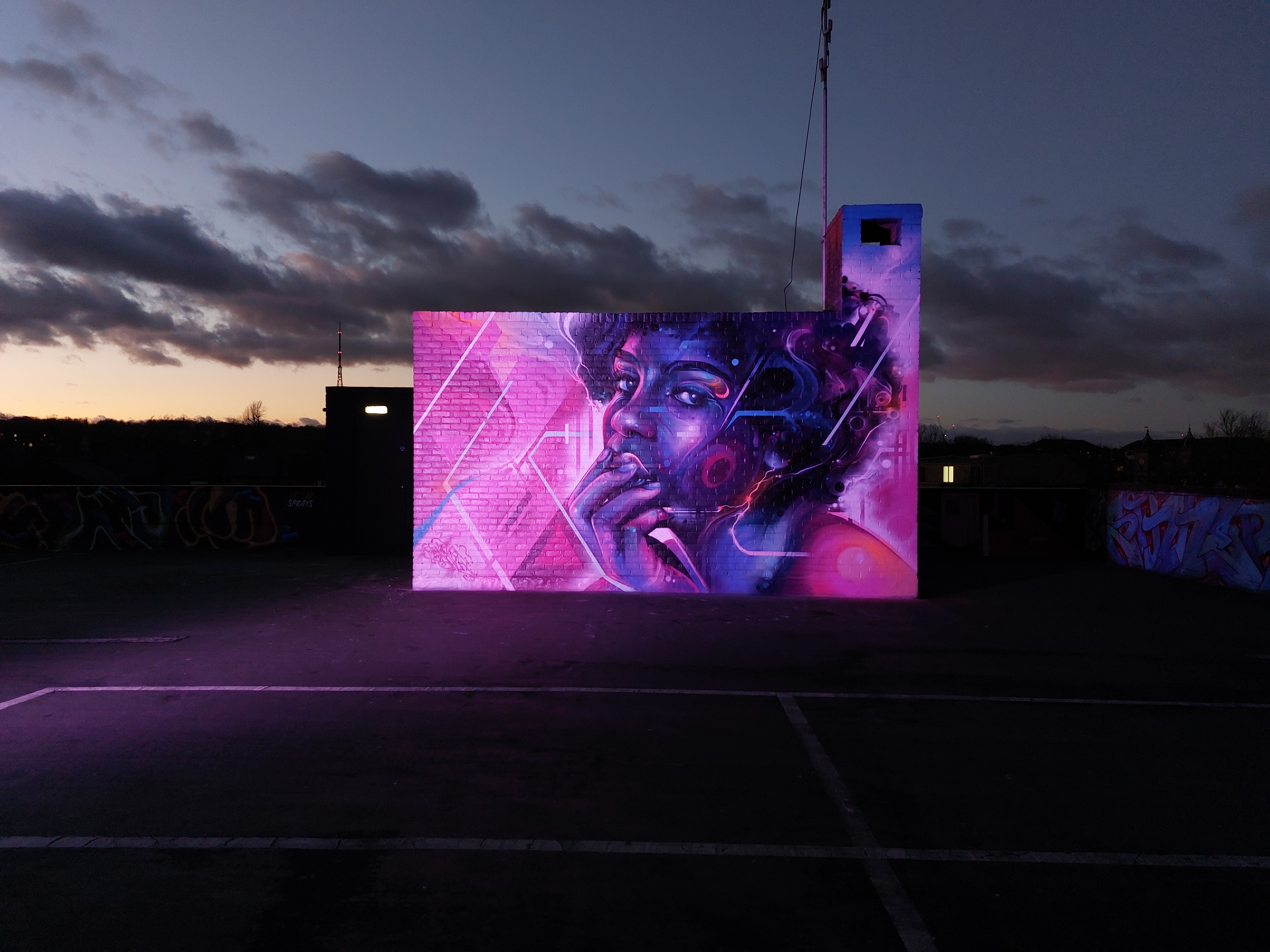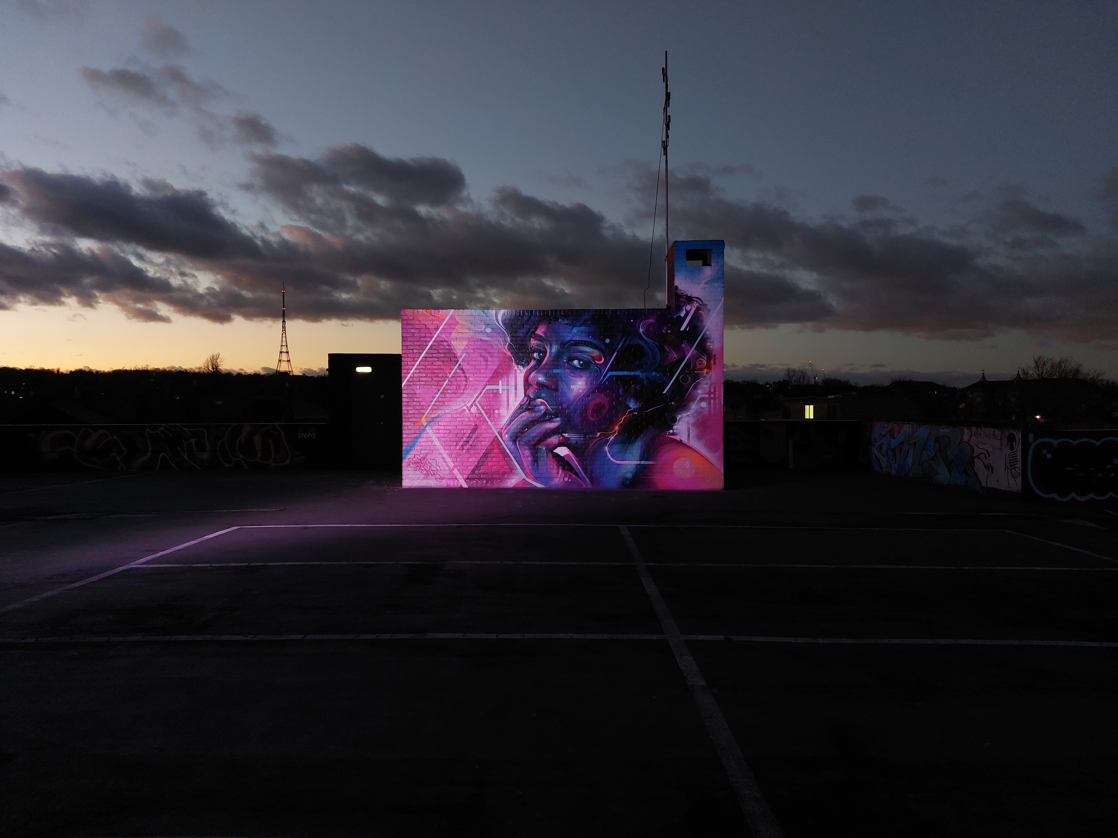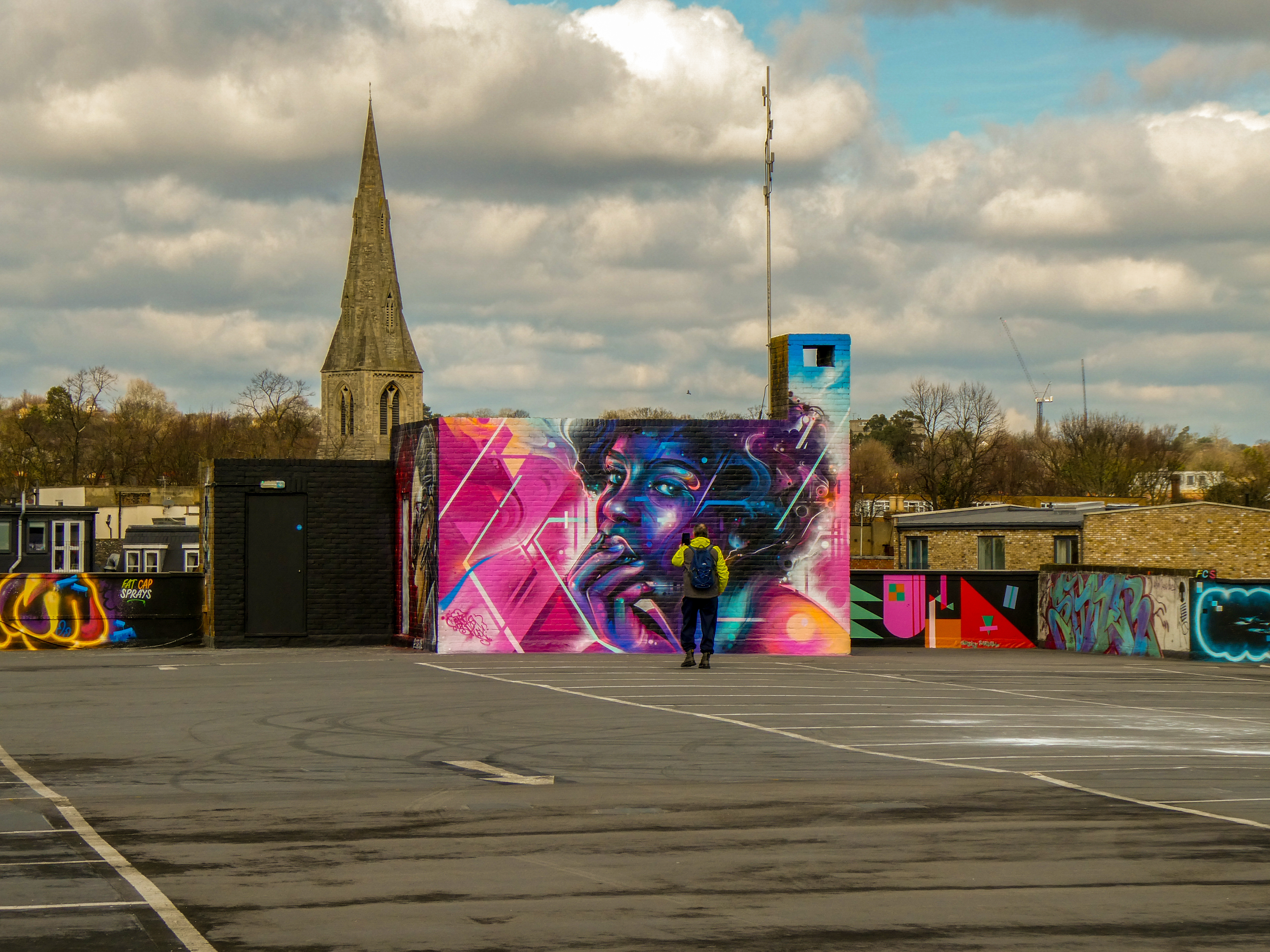 For our next post playing catch up with works and pieces we have had the pleasure of seeing in 2024, we are taking a look at a beautiful artwork by local and internationally acclaimed street artist Mr Cenz that was placed up in Penge at the end of the winter weather. The piece is immediately recognizable as being by Mr Cenz, presenting his distinct and striking colourful portraits featuring a black female subject fused with geometric dynamics depicted in the artist’s entirely original and trademark ‘futuristic space funk’ style. This stunning artwork was placed up at the Penge Rooftop Gallery, Penge, and was put up with support from ourselves London Calling Blog.