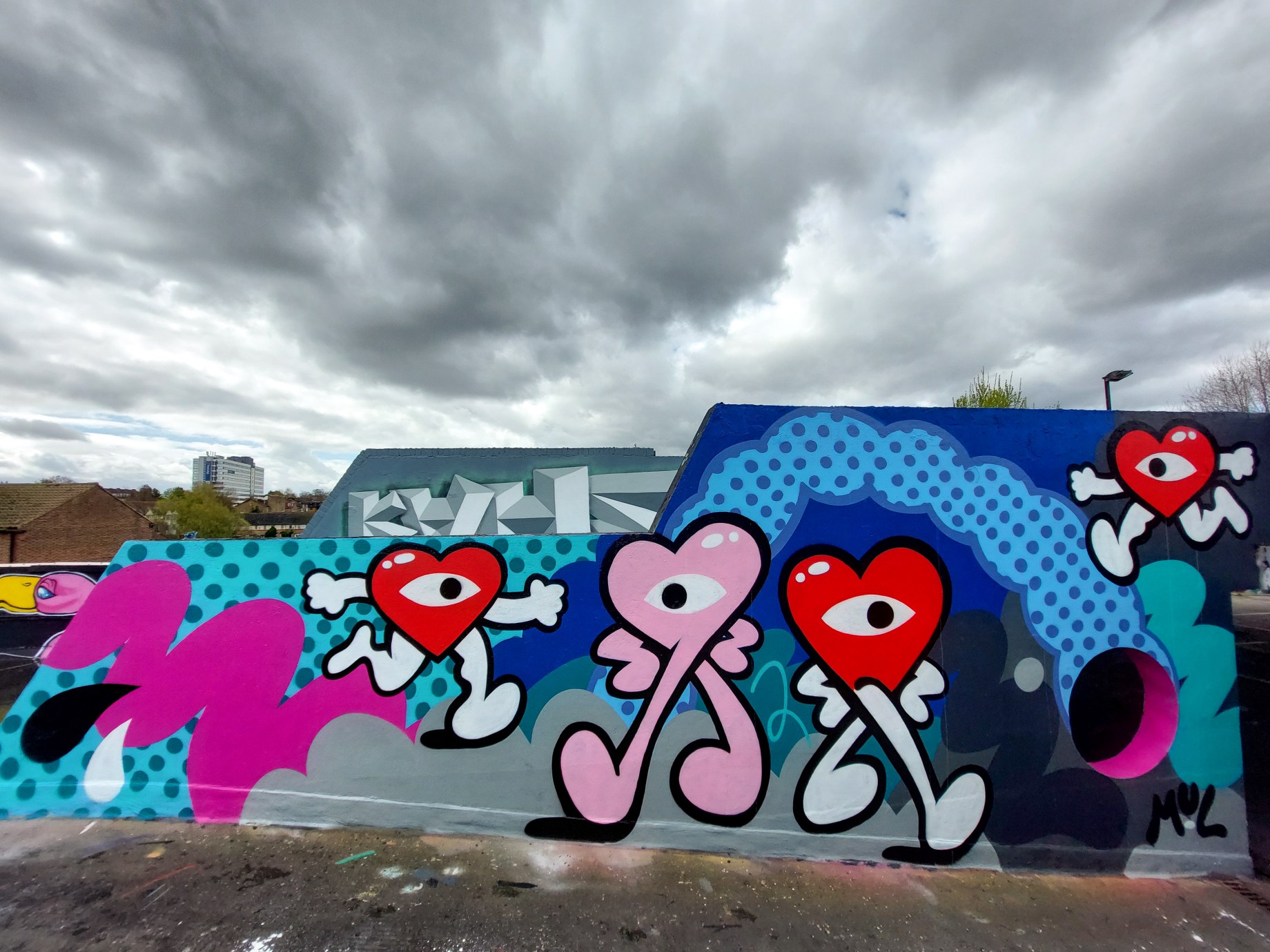 Around Spring time London received a visit from Newcastle based street artist Mul, who had a busy couple of days painting around South and East London. Mul painted his distinct and immediately recognizable one eyed heart character set strutting and running about the place. It is always a pleasure to see new artists come and paint in London and this was certainly the case with Mul and his fun characters we spied around Penge, Hackney Wick & Brick Lane. The works below placed up in Penge were done so with support from ourselves London Calling Blog for our SprayExhibition20 community mural project.