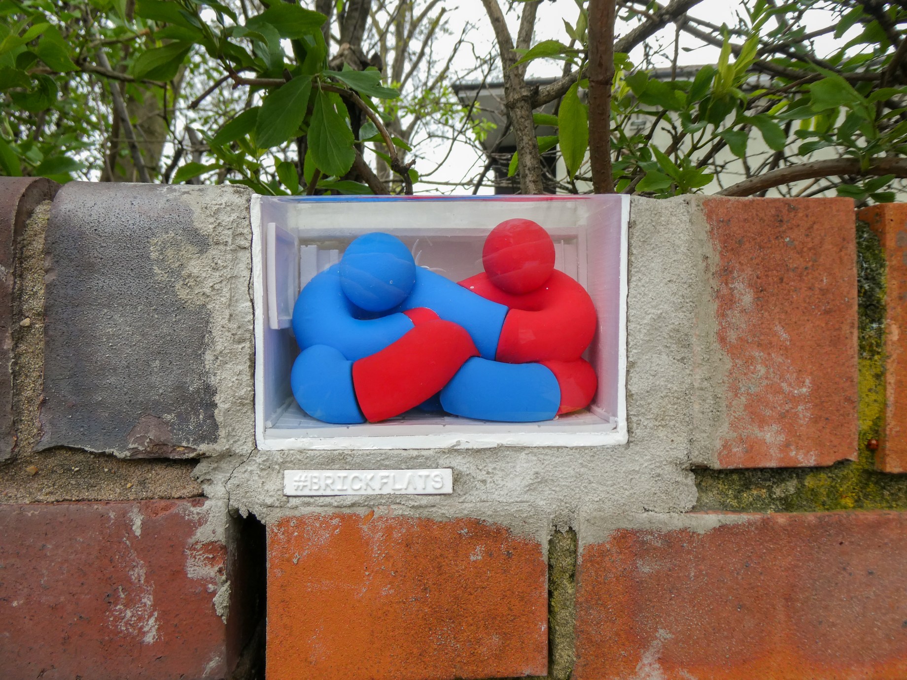 As Winter faded and Spring began we started whilst traveling about East London to notice a number of fantastic installations around Hackney by artist Raphael Vangelis aka Brickflats who has offered some of the most interesting and fresh artistic additions to London’s streets that we have seen in sometime. His artistic name Brickflats, pretty much says it all, he has created a series of Flats to be placed in missing bricks in a satirical and all too on the nose commentary regarding the dynamics of living in big cities, with people paying a fortune to exist in the most cramped of conditions. Brickflats works are very much hidden in plain sight, if you aren’t paying attention you could easily miss them. The fact that we tend to cycle about when out exploring around East London means that we ourselves often miss such little gems, especially when then are off the beaten track of regular street art spots. His work that is not just incredibly original, is so full of character and presents such a clever and accurate view on life in a big city. So keep your eyes peeled and you maybe lucky enough check out some of his flats about town and explore a world that says so much.