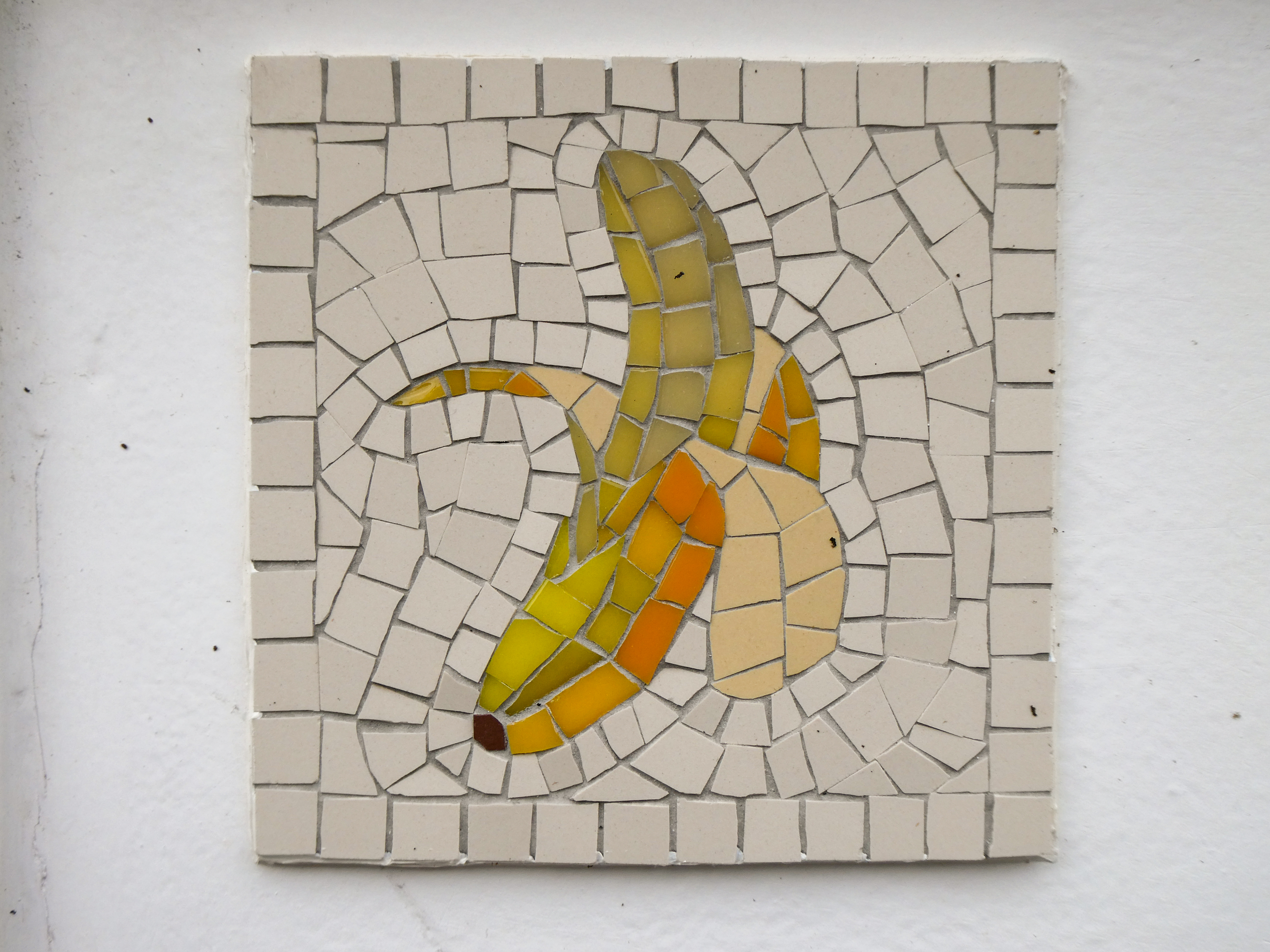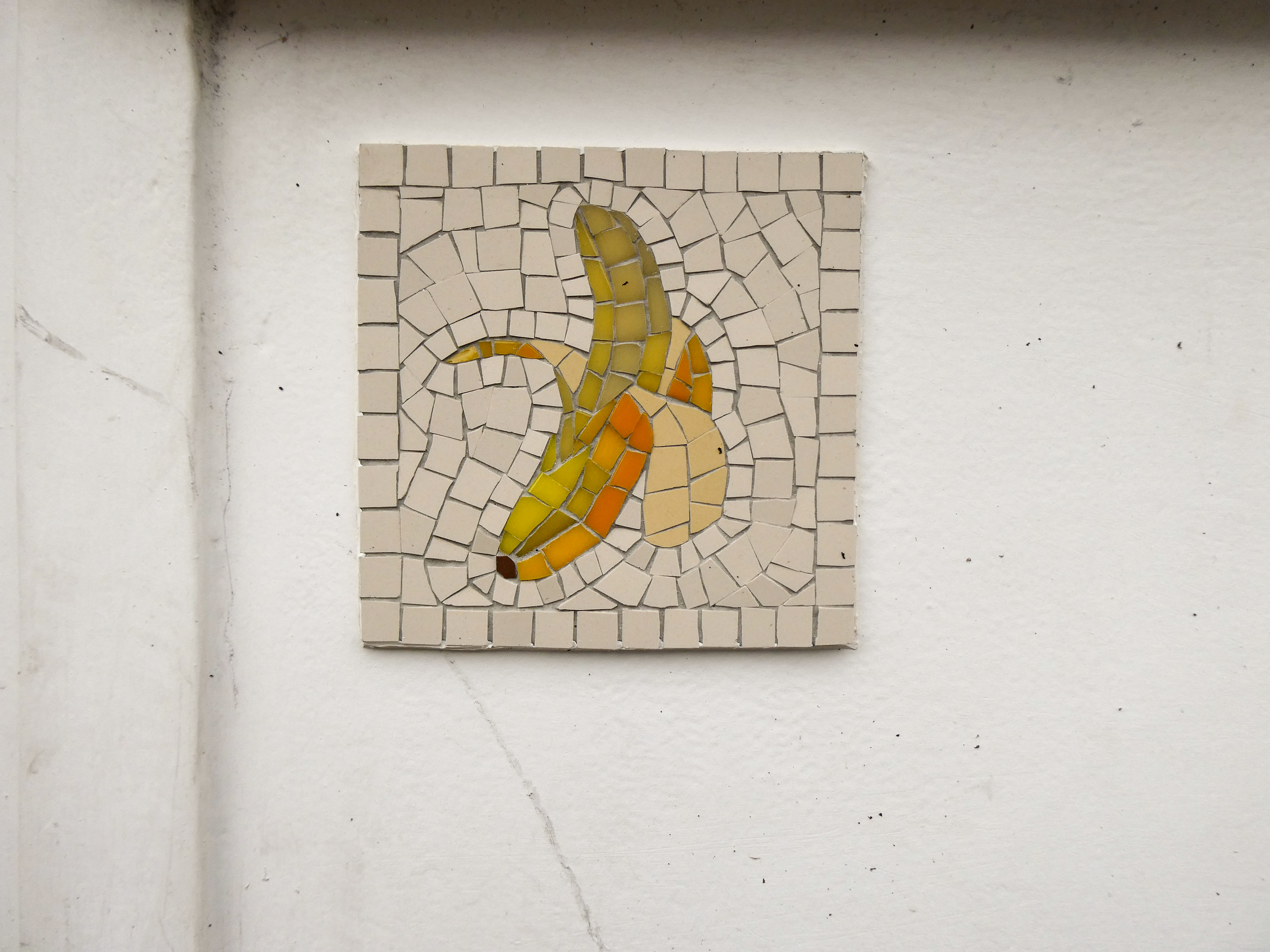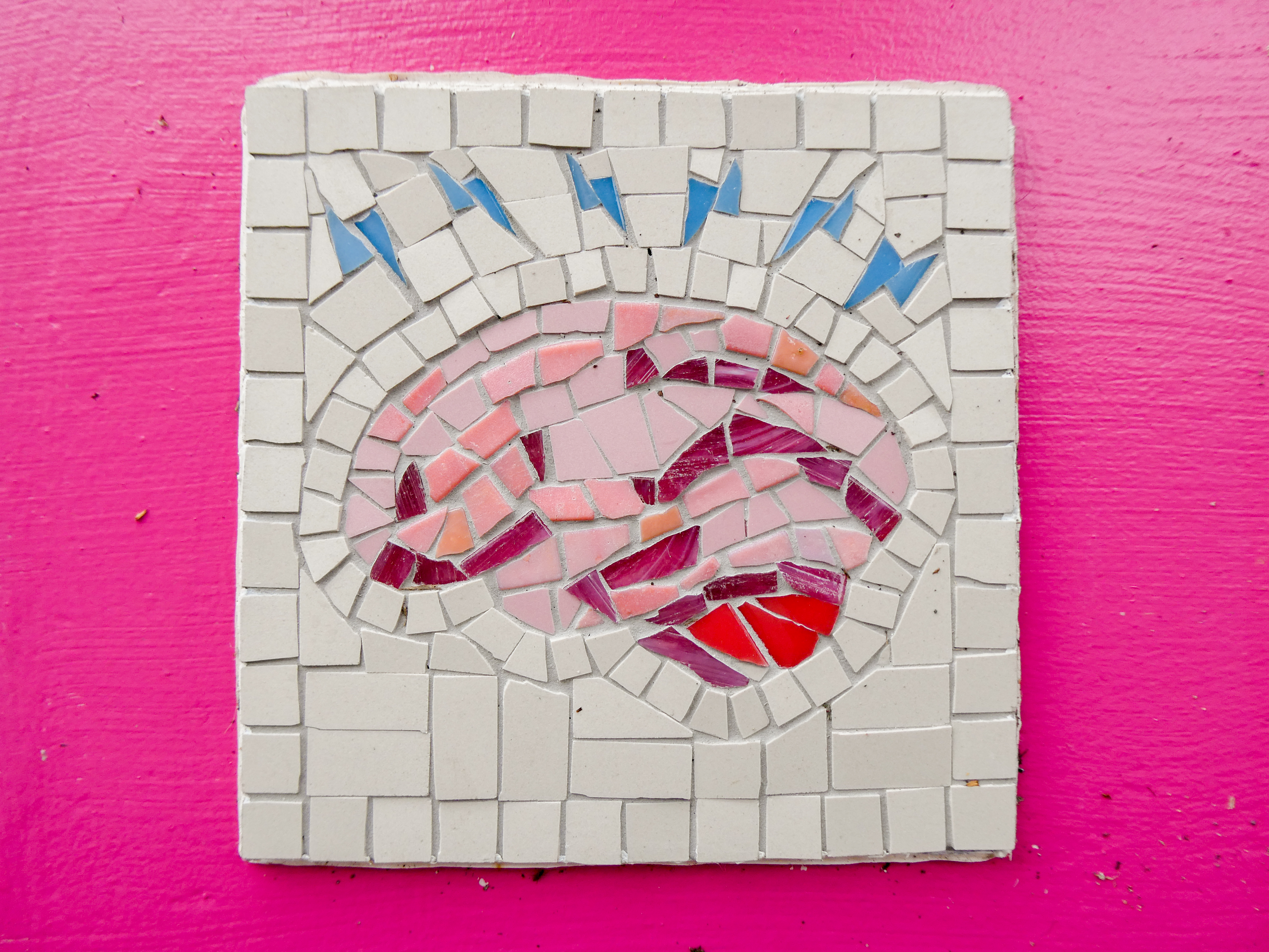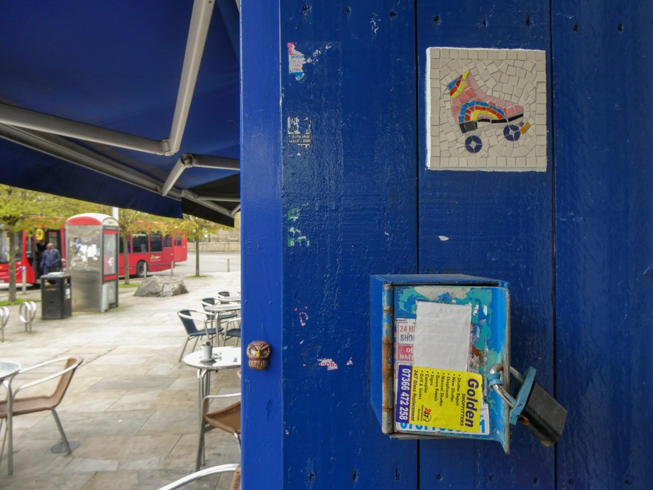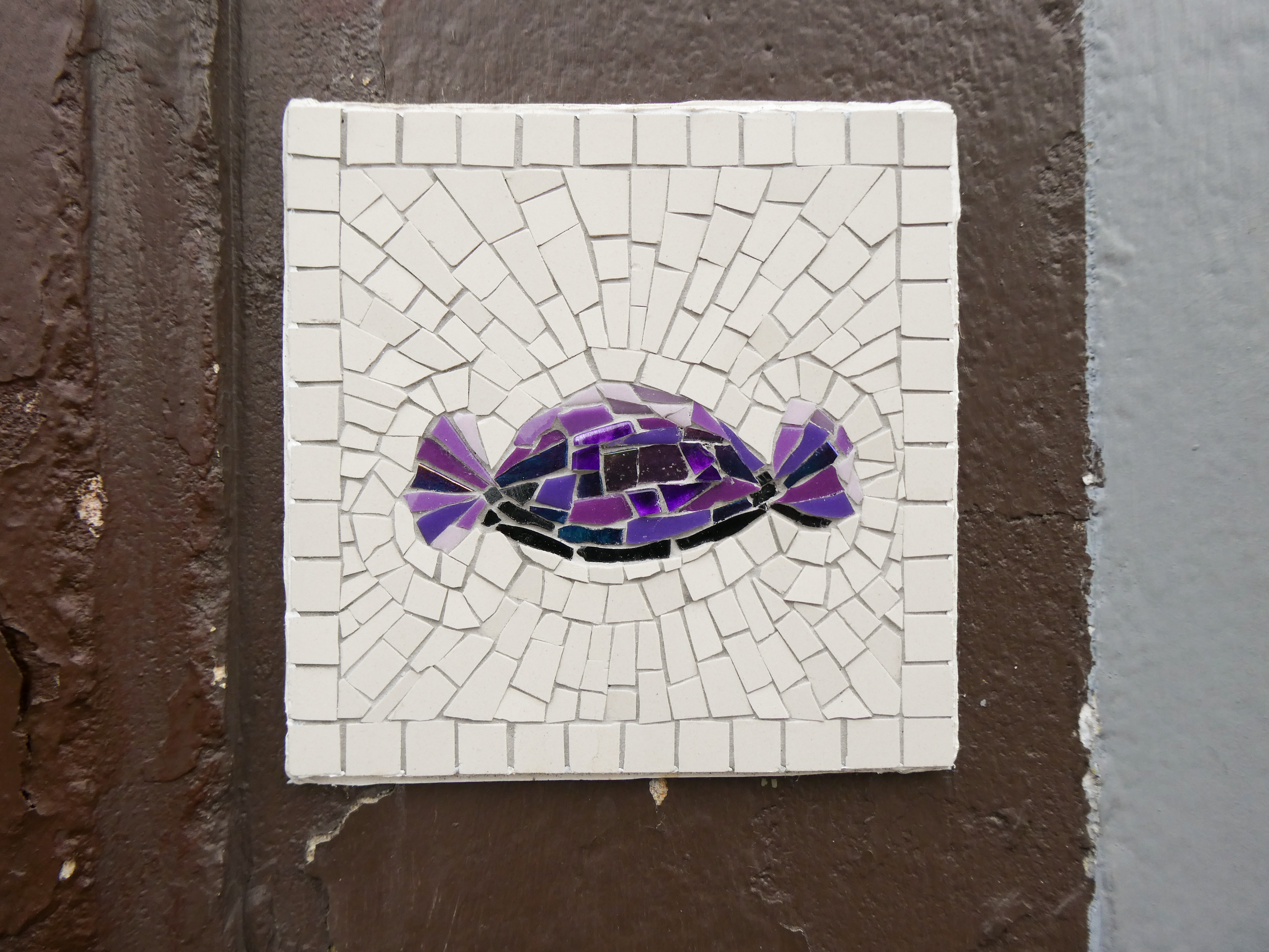 In Spring this year we met a very talented and original mosaic artist Corin Ashleigh Brown who had a selection of 16 mini mosaics comprising Corin’s Quirky Collection to place up ahead of a group exhibition in Dulwich they were participating in. As a result half of the collection went up in Dulwich and we were incredibly fortunate to be able to find spots for the other half about Penge. So if you are wandering around Penge or Dulwich if you keep your eyes peeled you may just see some of these excellent installation works with a very modern cross-section of subjects. If you do see any, please do let us know which ones and what your favourite is – for us its a between the sponge in Penge and the Croc shoe in Dulwich. We also have a couple of pics of a bonus mouse mosaic placed up at a cheese shop in Norwood. The works below in Penge were placed up with support from ourselves London Calling Blog for our SprayExhibition20 community mural project.