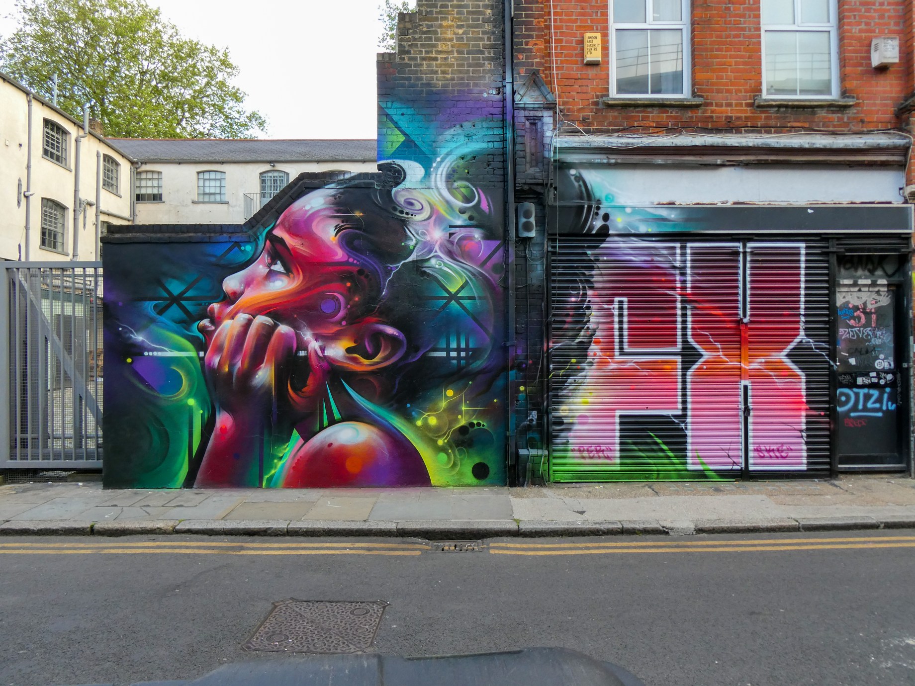 For our next post playing catch up with works and pieces we have had the pleasure of seeing in 2024, we are taking a look at a beautiful artwork by London based street artist Mr Cenz that was placed up in Brick Lane during Spring. The piece is immediately recognizable as being by Mr Cenz, presenting his distinct and striking colourful portraits featuring a black female subject fused with geometric dynamics depicted in the artist’s entirely original and trademark ‘futuristic space funk’ style, and in this case fusing some letters offering a nod to the FX crew he is a member. Taking to this particular wall that has been painted by Mr Cenz for as long as we can remember, one this we particularly love about the life this artist has given this wall is how it has continuously and gradually just got bigger and bigger as a canvas, at this point spilling up the brick work and to the right across the shutter. This striking artwork is in Fashion Street, Brick Lane.