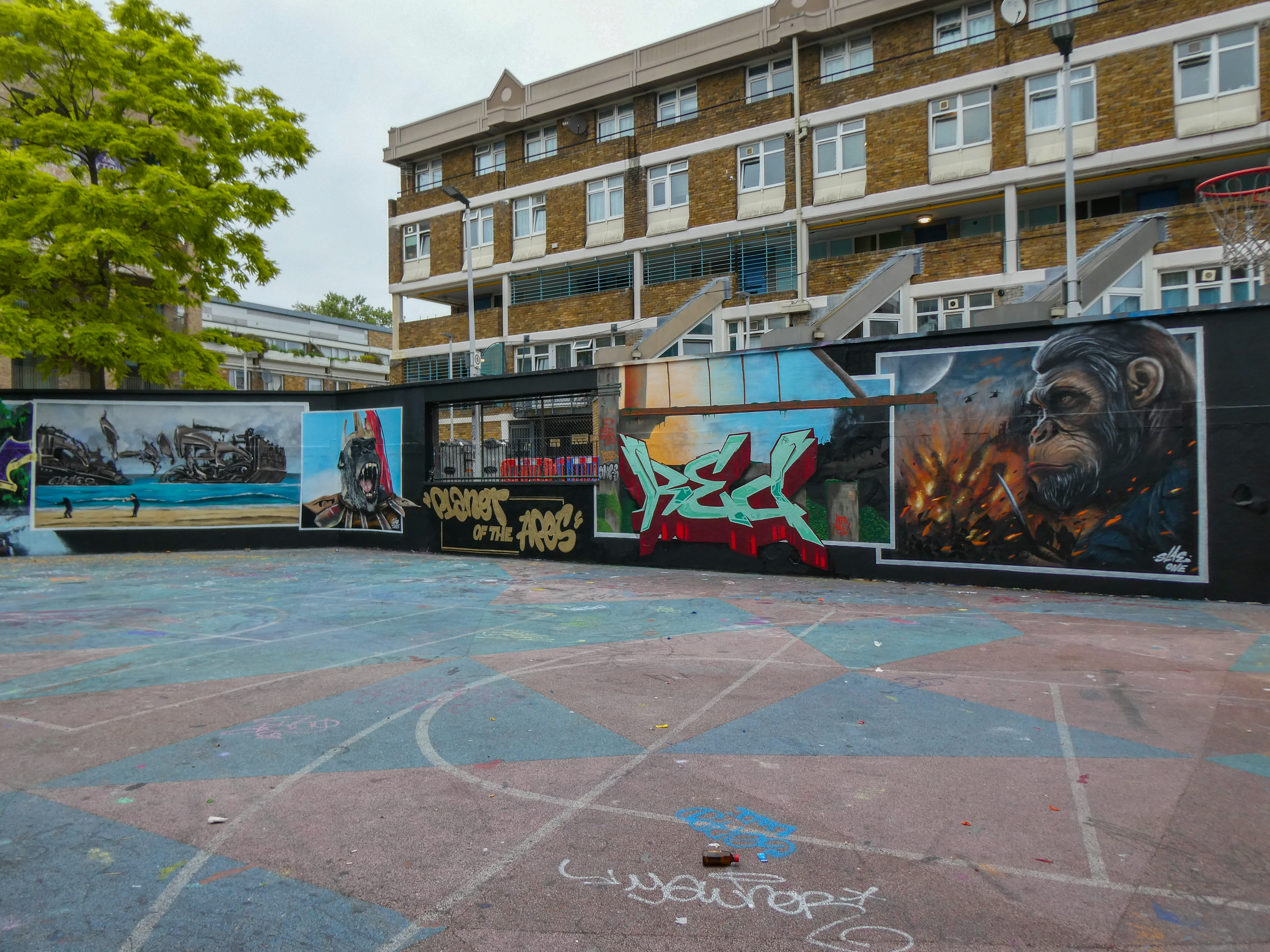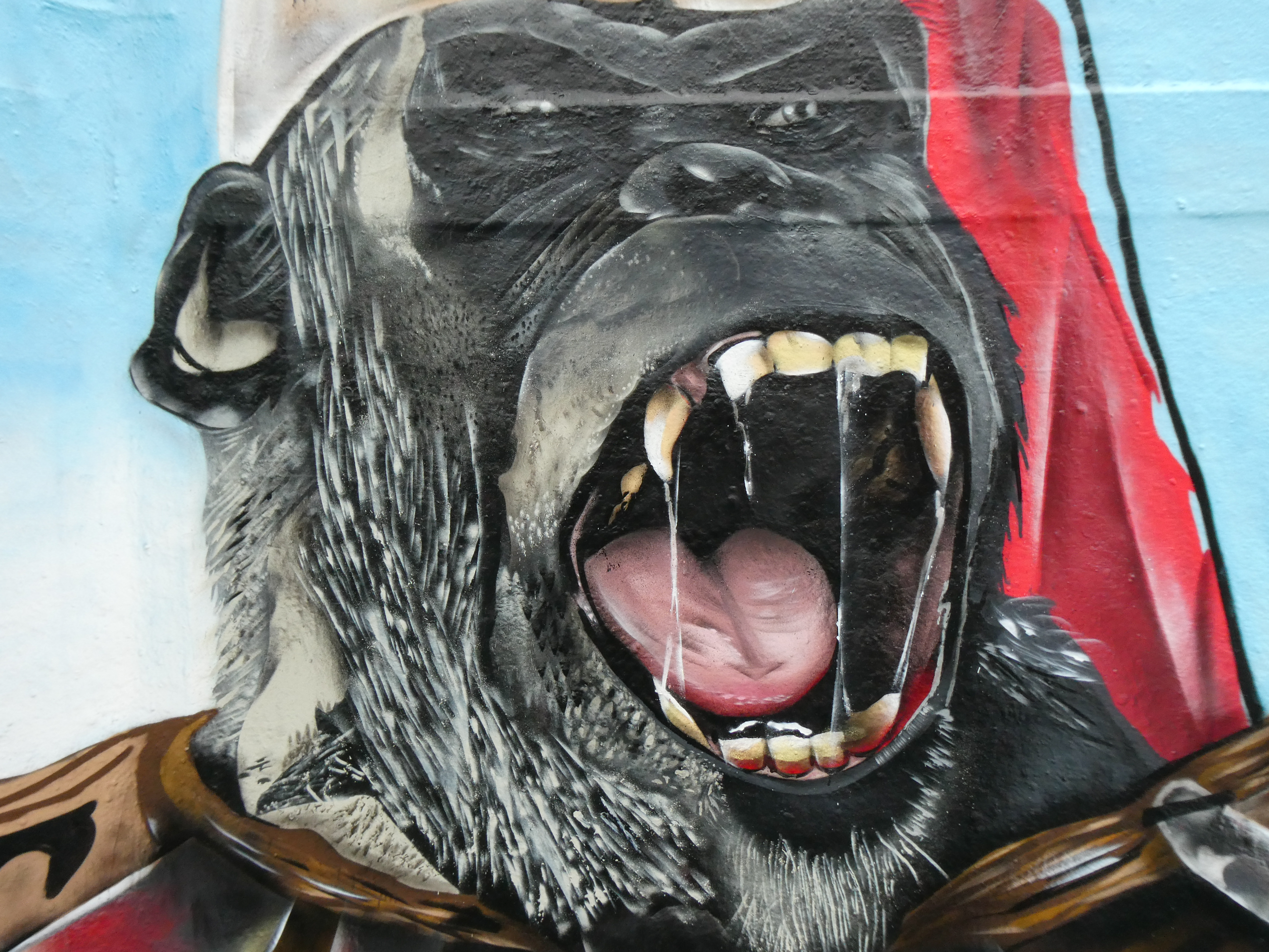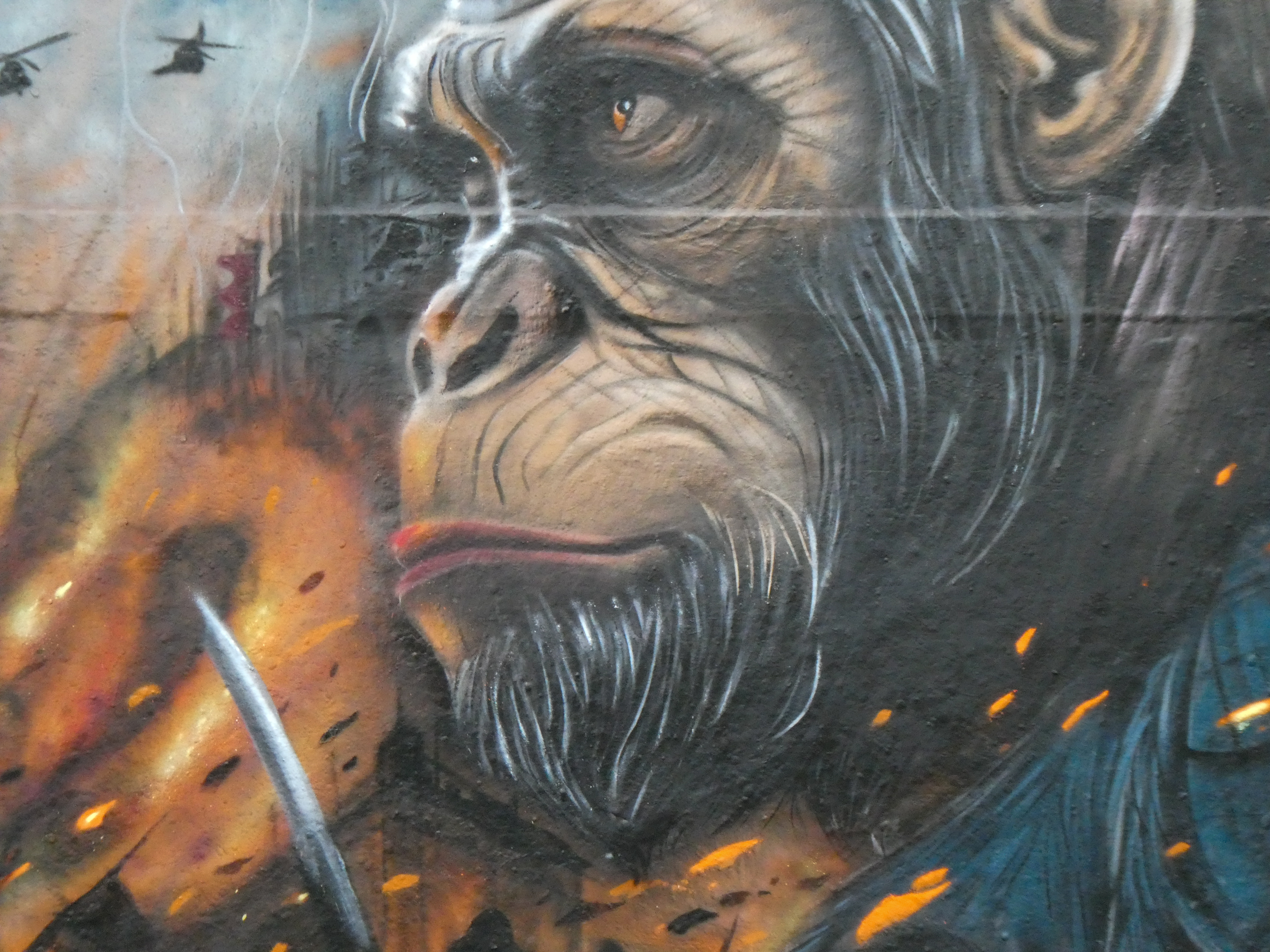 Earlier this year on on our way back from an early morning cycle to East London and back during the fine Spring weather, utilising the early sunrises, we passed through the Stockwell Hall of Fame and caught this incredible six person Planet of the Apes graffiti production. In our opinion the Stockwell Hall of Fame is without contest the premier graffiti spot in London, as can be demonstrated by the calibre of the incredible work below. The piece featured five of London’s resident writers and one visiting from Australia, who hit up a superb selection of diverse yet unified works featuring a fusion of letters, scenery and character work to an incredible standard. Top notch work and one of the best productions we have seen in some time.