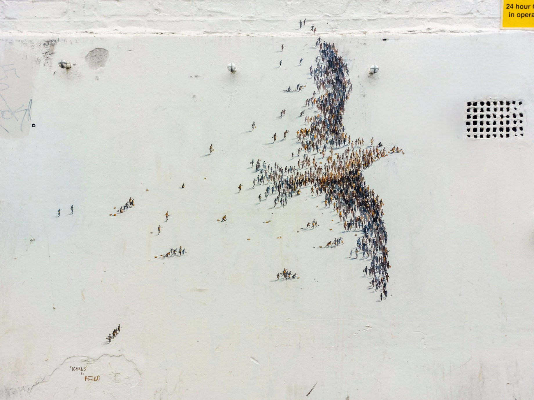 This piece titled Icarus marked the first painting we have seen in person from this diverse and talented artist, it also provides ample demostration that sometimes the smallest of artworks can evoke the most powerful of responses. The work to us acts as metaphor for humanity, moving forward as a whole whilst simultaneously leaving so many behind, drawing parallels between the fable of Icarus who flew to close to the sun and crashed to the Earth as a result. The level of detail in this impressionist work is immense and the piece evokes such a sense of fear and panic at being left behind, whilst simultaneously heading towards the uknown. The incredible artwork below can be found on Ellsworth Road, Bethnal Green.
