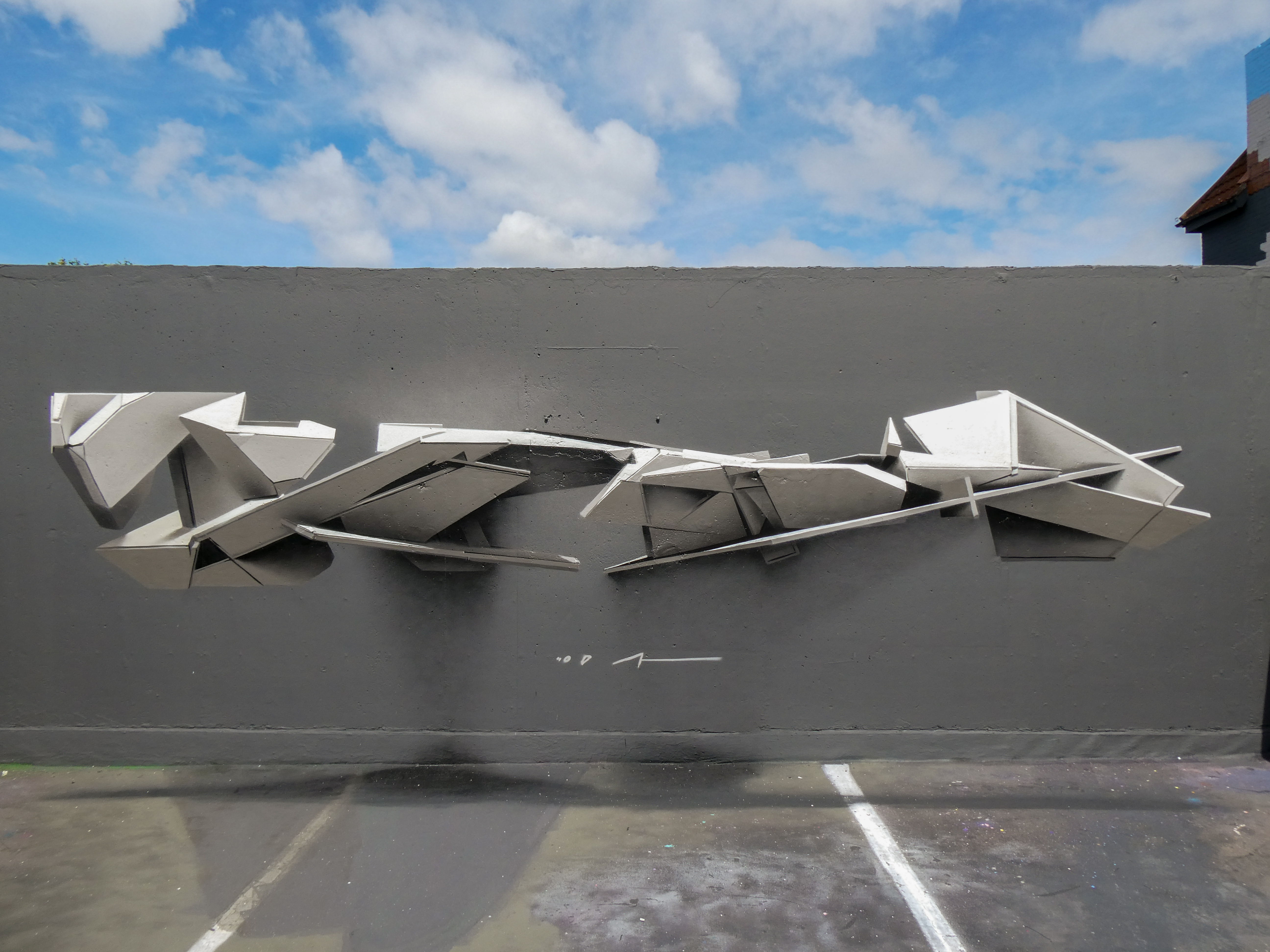 Next up in our series of blog posts playing catch up with works and pieces we have had the pleasure of seeing through 2024, we are taking a look at this superb work that was placed up in Penge earlier this year by Italian graffiti writer Soda. This artist’s works are truly original and offer 3D abstract compositions which deconstruct his graffiti roots and in turn recontextualizes concepts of space and movement exceptionally. The level of depth and effect achieved with such a limited colour palette is incredible and his use of a spray can is masterful to say the least, this painting was created entirely freehand with no tape, stencils or hard edges. This striking work was put up with support from ourselves London Calling Blog as part of our SprayExhibition20 community street art project.