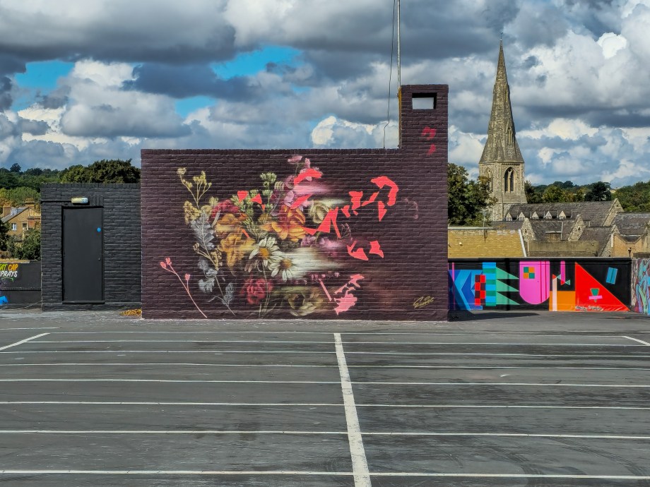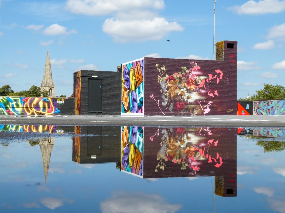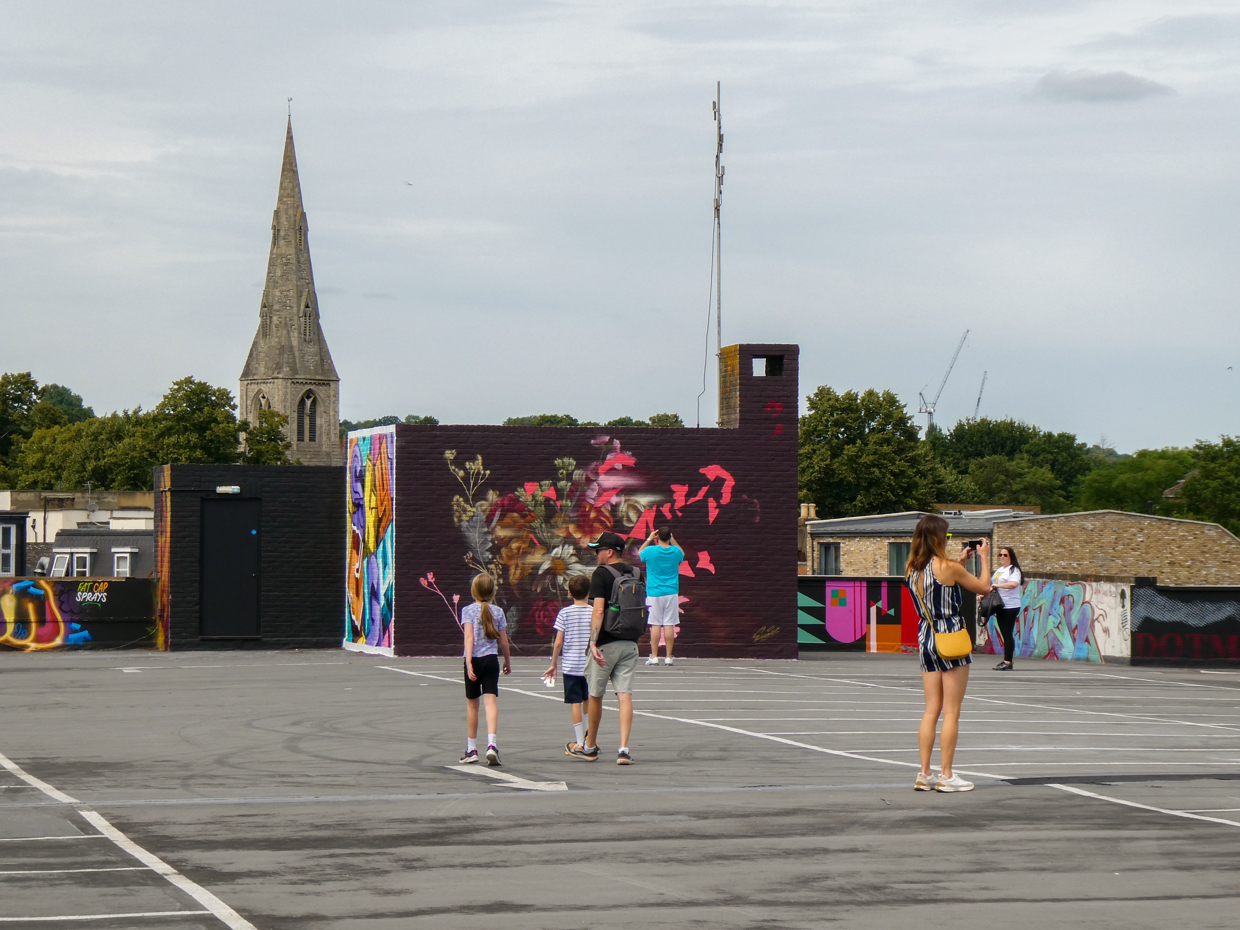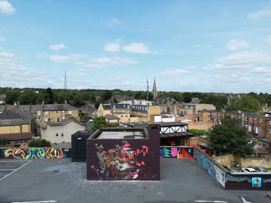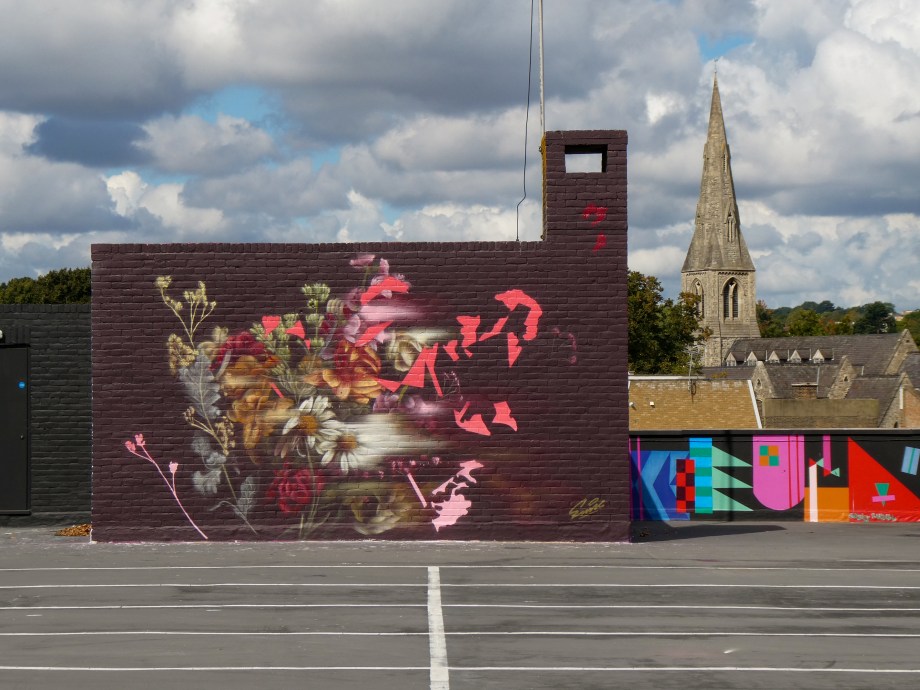 During the summer London received a visit from Belfast artist Emic who whilst over took the time to visit Penge and place up a pair of stunning works that are among the highlights of a year absolutely packed with pieces. Taking to a spot in Maple Road – which hosts the area’s biggest concentration of street art – , and to the Penge Rooftop Gallery, Emic shared a portrait and a still life scene, which both showcased not just interesting designs, but how masterful he is with a spray can. The effect in each of these captivating and striking artworks is incredible fusing incredibly delicate realism with bold and bright block geometrics, bringing classical art worthy of the Old Masters of the Renaissance period together with very modern aesthetics to excellent effect. We for one sincerely hope Emic returns to London to share his talents before too long, and even more so that it may get to be in Penge again. In the meantime we consider ourselves very privileged that this artist’s only piece in London currently is on our doorstep and we get to enjoy on a daily basis. Both of the superb pieces below were placed up with support from ourselves London Calling Blog for our SprayExhibition20 community street art project.