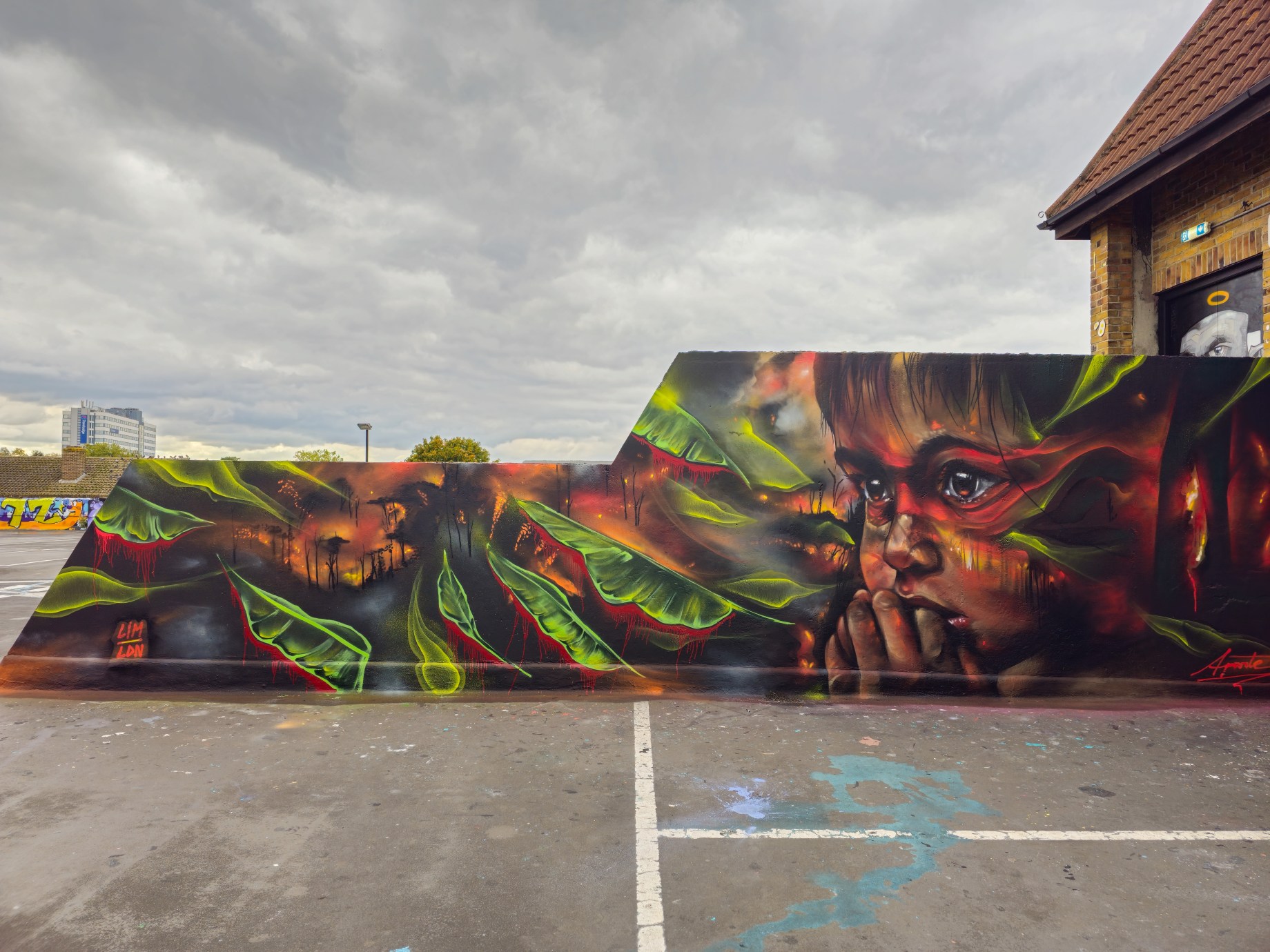 A few months back saw London receive a visit from Peruvian born, but Netherlands based, street artist Aparte, who on his whistlestop visit to the city hit up a trio of works – one in Penge and two in Stockwell – of which we caught two and are sharing below. The somber work in Penge features a tribal child looking on as his homeland – the rainforest – goes up in flames, making for a very emotive and well executed piece. Where as the work from Stockwell that we caught presents a more otherworldly and slightly surreal futuristic vibe about it.