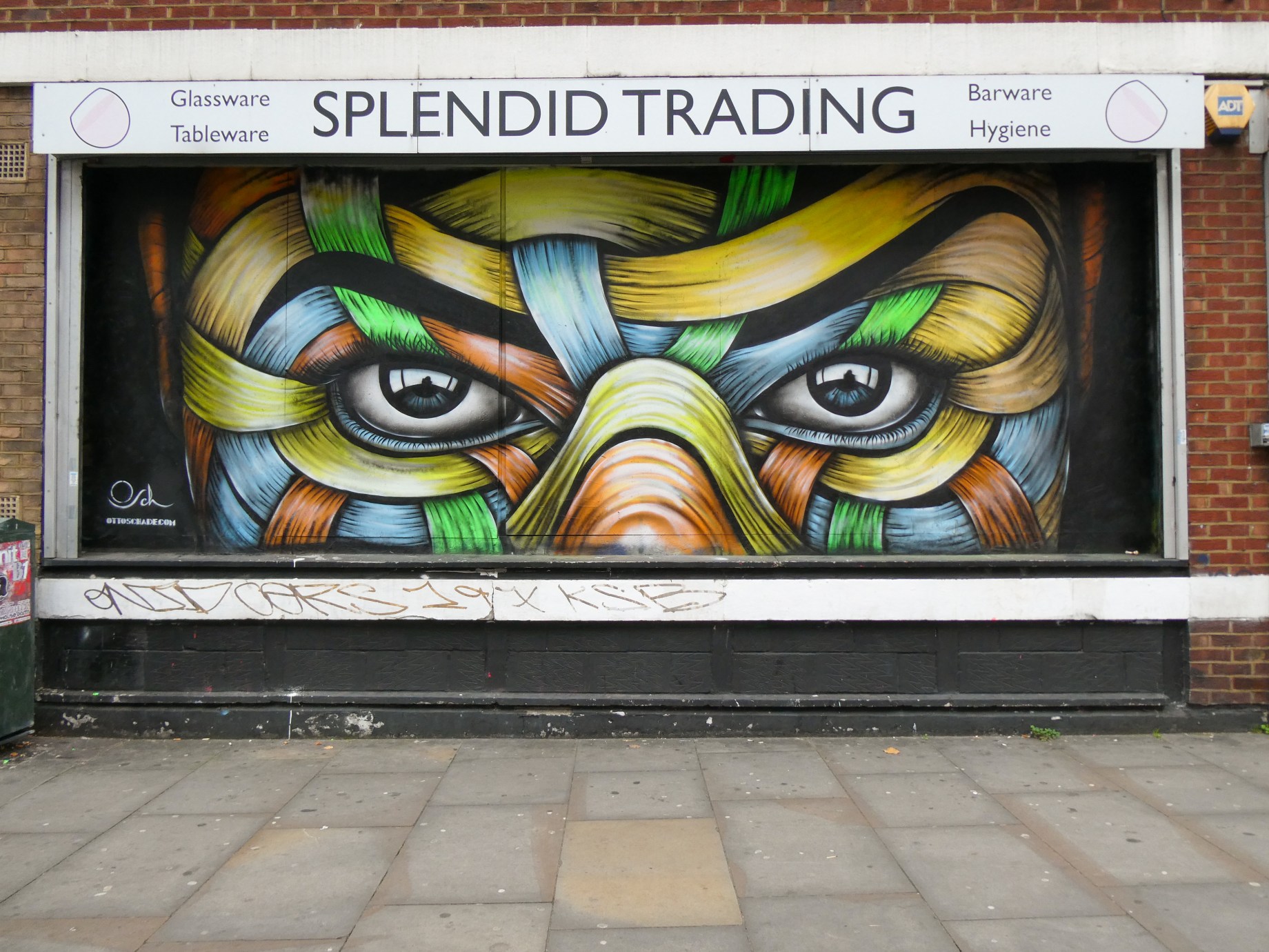 This morning we are taking a look at some of the recent works that Chilean born, but London based, Street Artist Otto Schade has placed up around Shoreditch and Brick Lane over the last several months. Otto Schade’s painting styles range from the abstract and surreal. Working predominantly with oil paint, and incorporating practices such as collage, illustration and stencil. The themes behind his compositions read in a personal, metaphorical sense with a sharp, ironic touch setting to offer a combination of the creative and fun with his ribbon effect style creations which offer so much flowing intricacy to look at, and offering a glimpse at his former career as an architect
