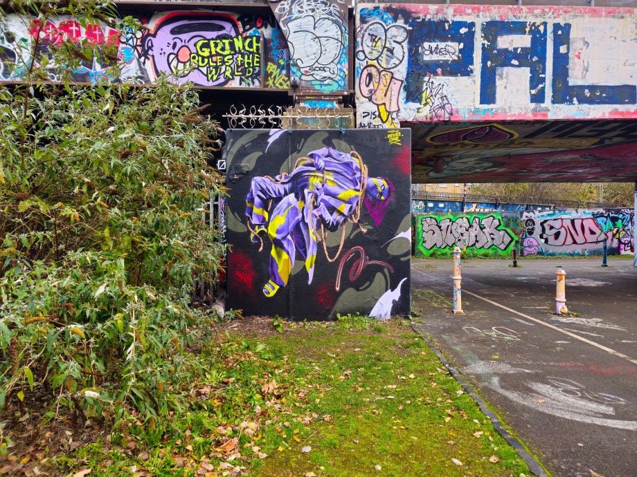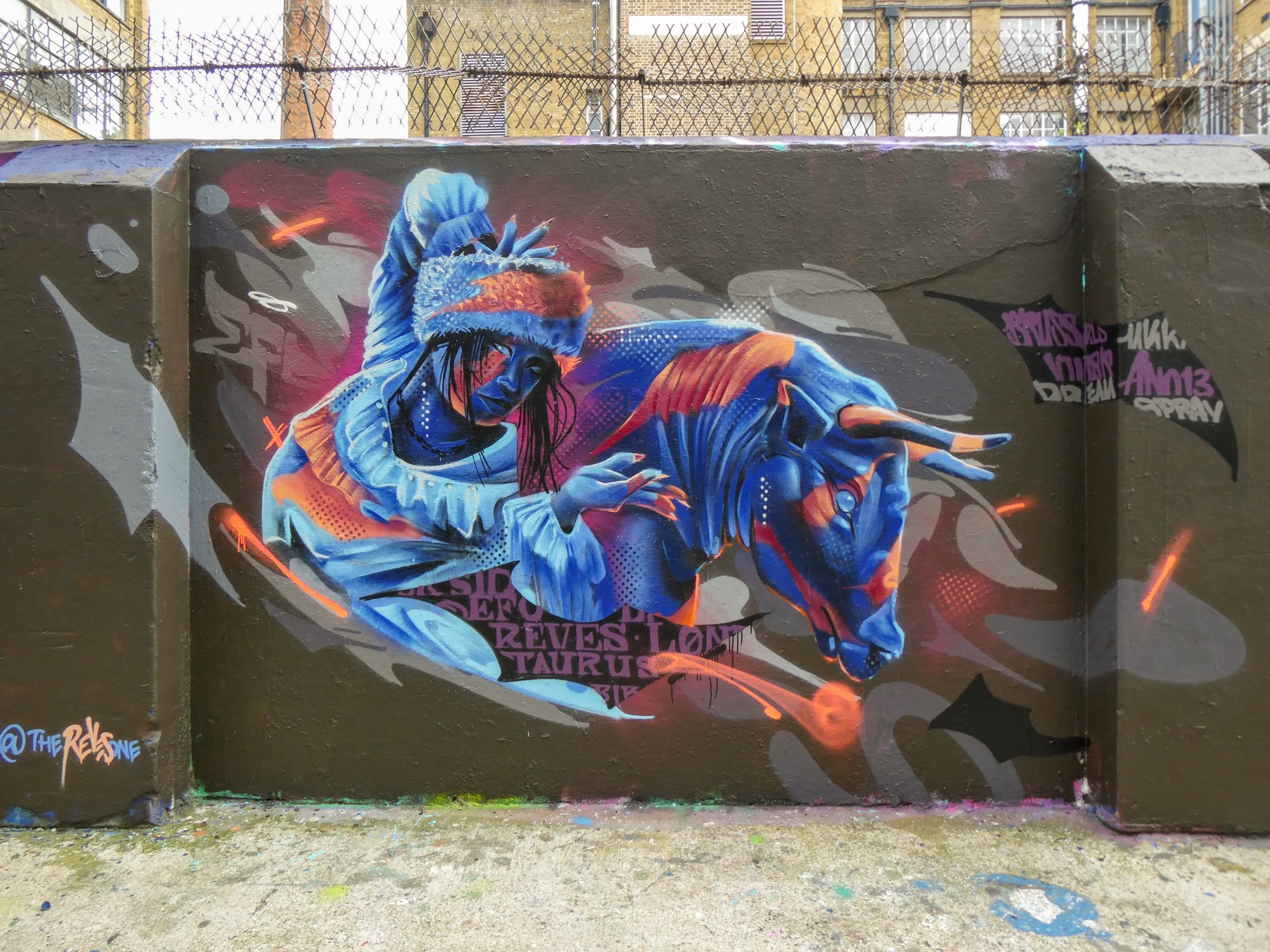 Next up in our look back at what has been happening about London during 2024 we are looking at a series of five captivating works from Belgian born, but London based, street artist and graffiti writer Reves One. Four of the works below were placed up around Brick Lane and one in the Stockwell Hall of Fame. Reves output is entirely original and instantly recognizable in both his realistic illustrative characters and colour palettes – though the latter does vary from piece to piece. It’s a tough choice, but of the works below the first piece in Corbet Place, Brick Lane, is our favourite from the pieces we have seen about the city from Reves One.