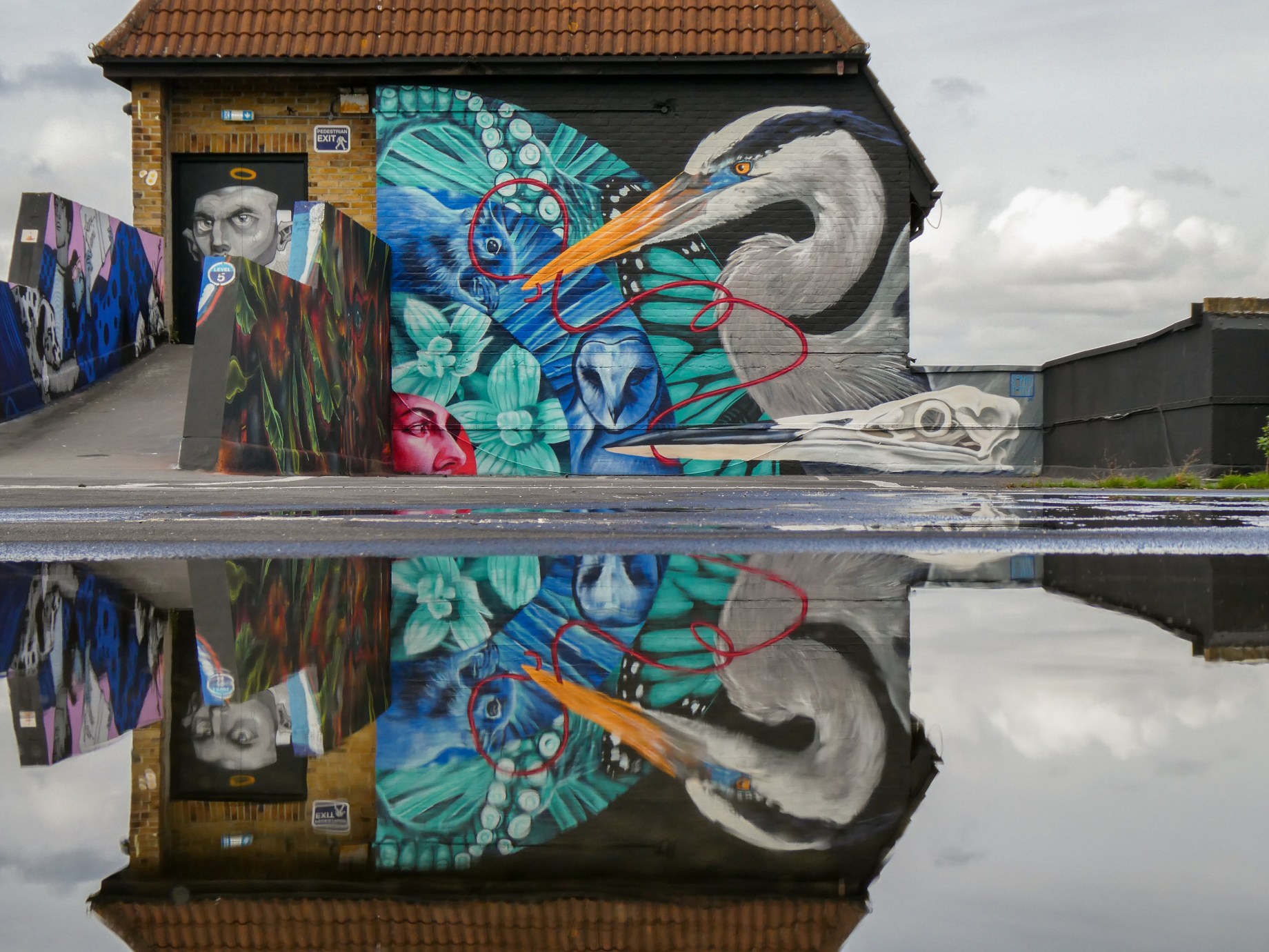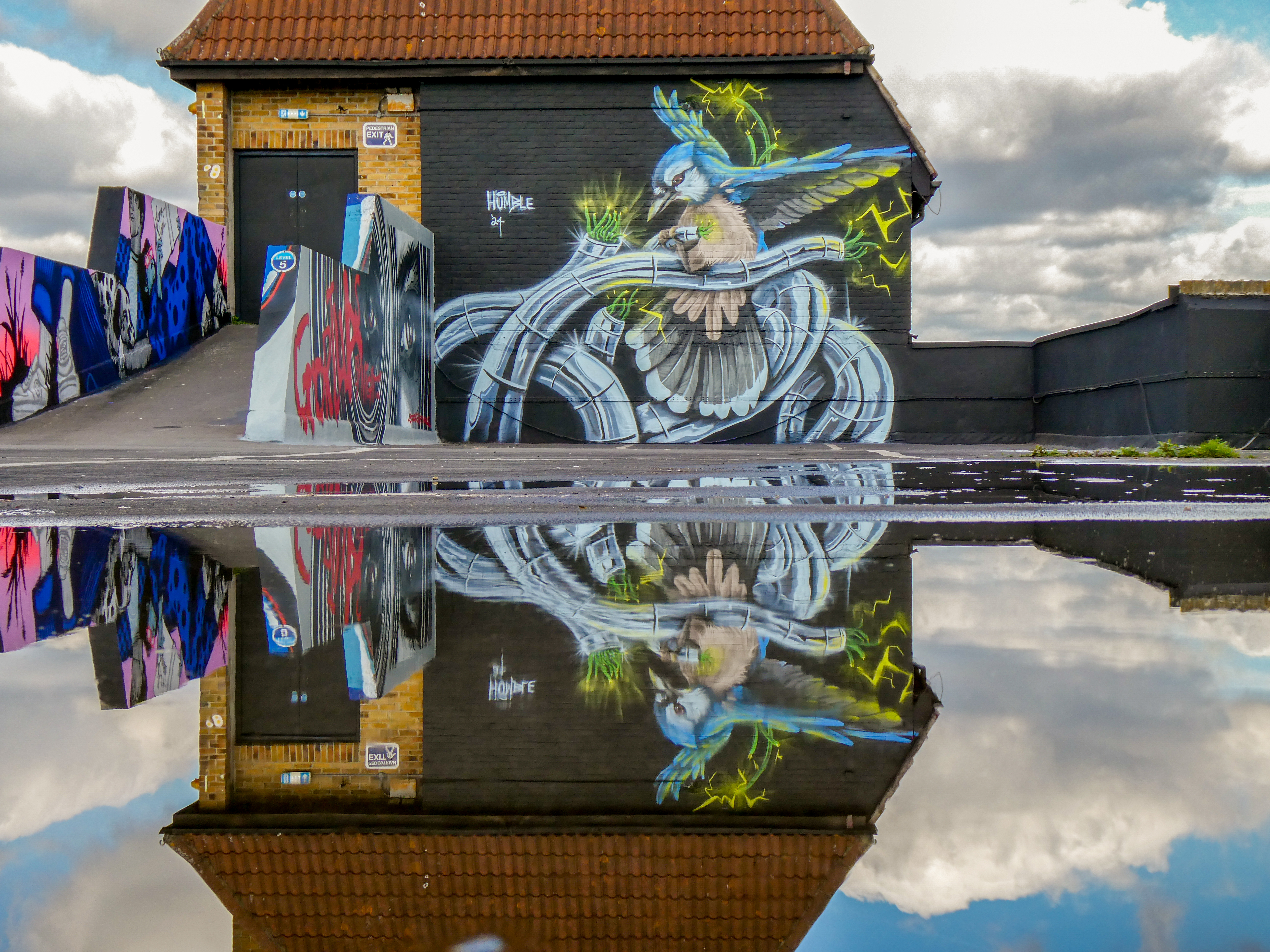 We would like to offer a massive thank you to all the artists who have transformed this space over the last year. As well as a massive thank you to Hadley Property Group for getting us involved as a local community group already active in the immediate area for many years now, and being so accommodating with this fantastic opportunity to be part of this wonderful meanwhile project. As well as a big thank you to Hadley for trusting ourselves and the artists to do their own thing. We would also love to offer a big big thank you to the many people that have travelled from near and far – we have had visitors from all around the UK as well as far away as the US, Germany, Denmark, Holland, France, and Spain – it has been amazing chatting to so many of you when hosting the Viewing Days. Last but by no means list thanks so much to our dear friends Kevin, Street Art Atlas and Ninja Boy Runs for all the help behind the scenes, prepping spots, holding ladders and tidying up.