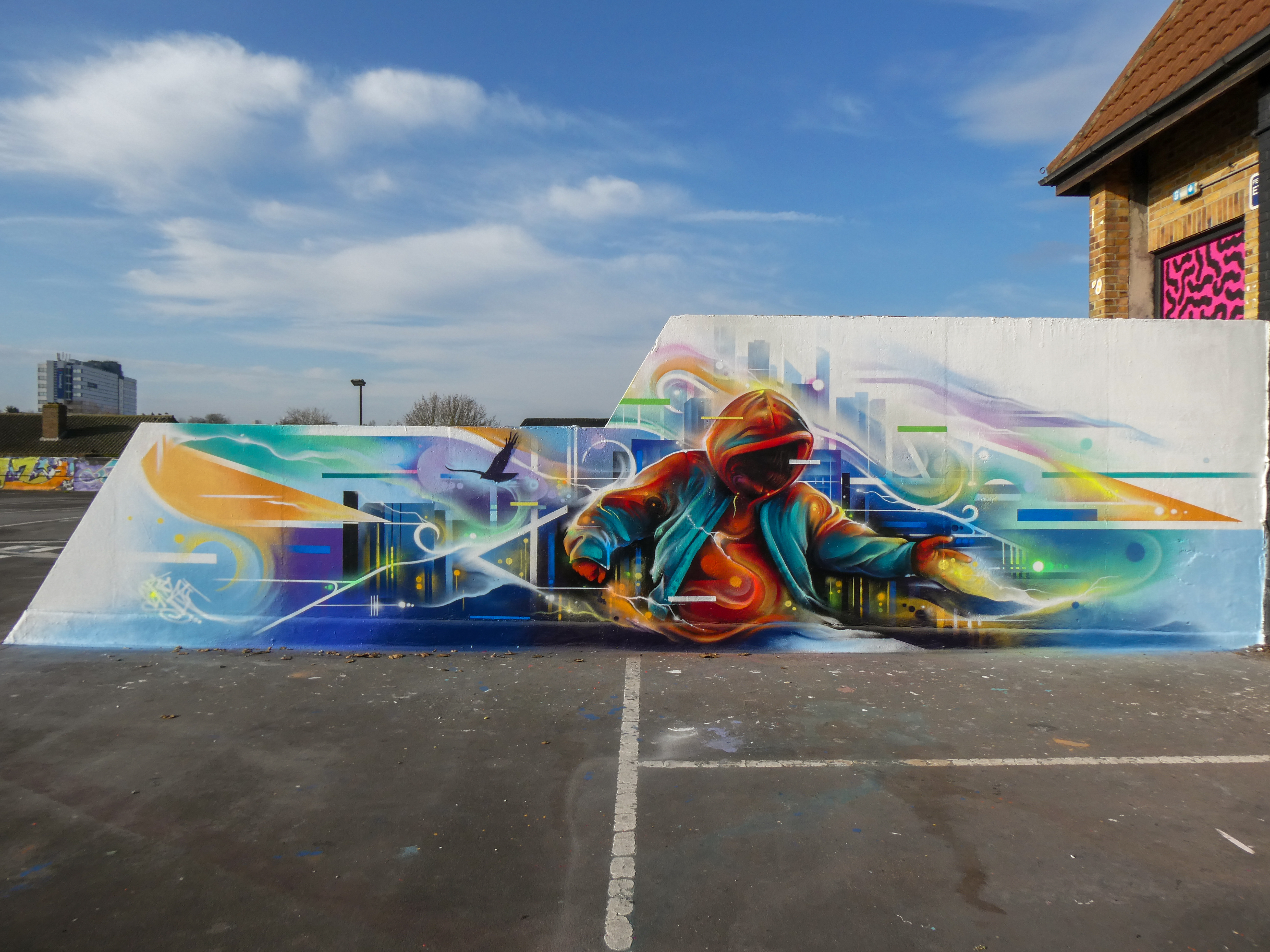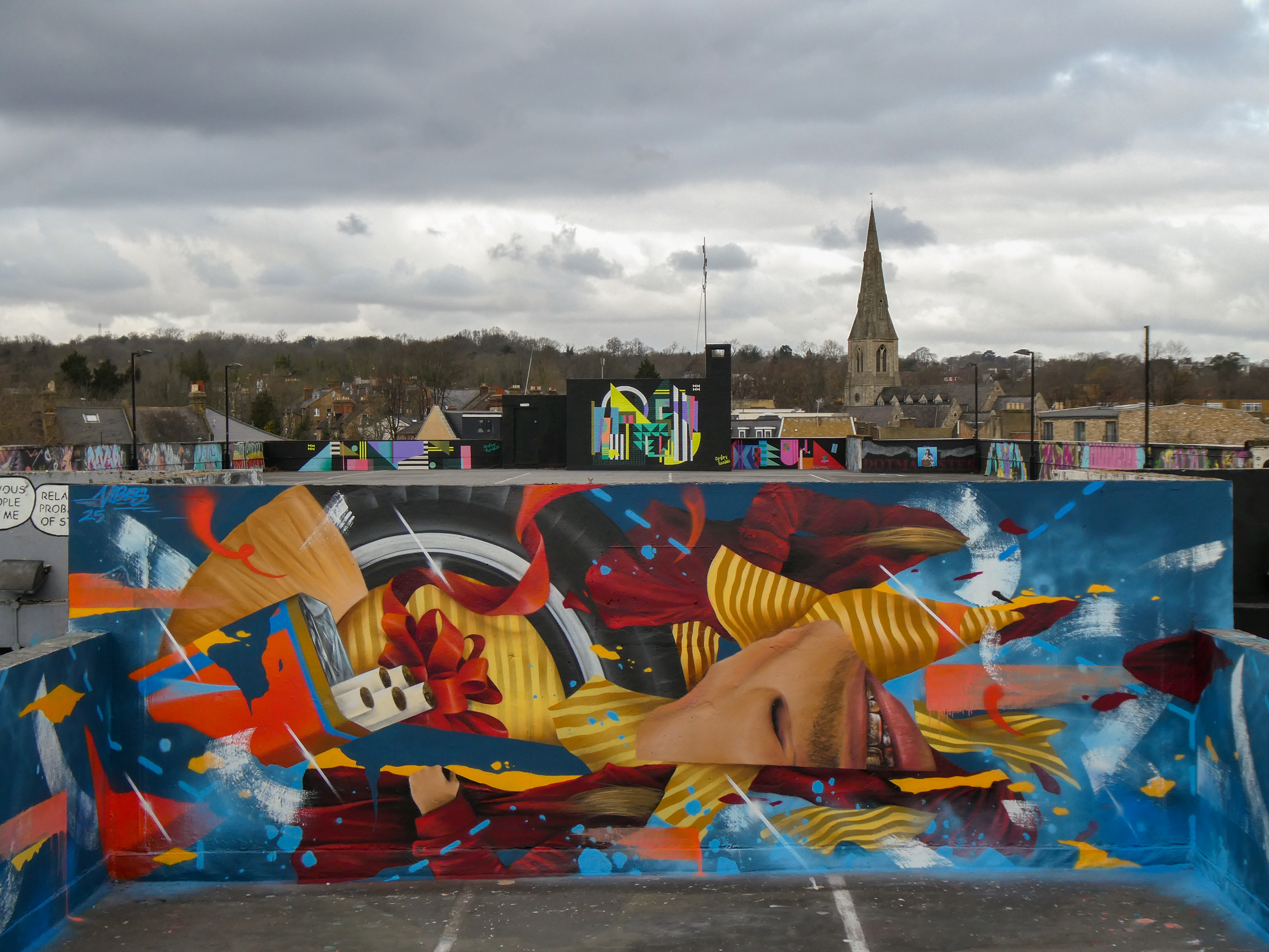 We have had over the last few years the exceptional pleasure to work with the new owners and developers of the Blenheim Centre in the heart of Penge High Street, namely Clarion Housing and Hadley Property Group who are running the development of this location with a mind to utilize underused spaces on the top 3 floors of the multi-story car park to create the Penge Rooftop Gallery, a meanwhile project that has already hosted 888 individual artworks, created by local street artists and graffiti writers that live in SE20, wider London, the UK and from as far a field as Scotland, Ireland, the Canary Islands, Spain, Greece, Crete, Malta, France, The Netherlands, Germany, Austria, Denmark, Sweden, Poland, Ukraine, Georgia, Kosovo, the United States, Hawaii, Canada, Lebanon, Palestine, Dubai, Colombia, Mexico, Brazil, Japan, Australia, Indonesia and South Africa.
