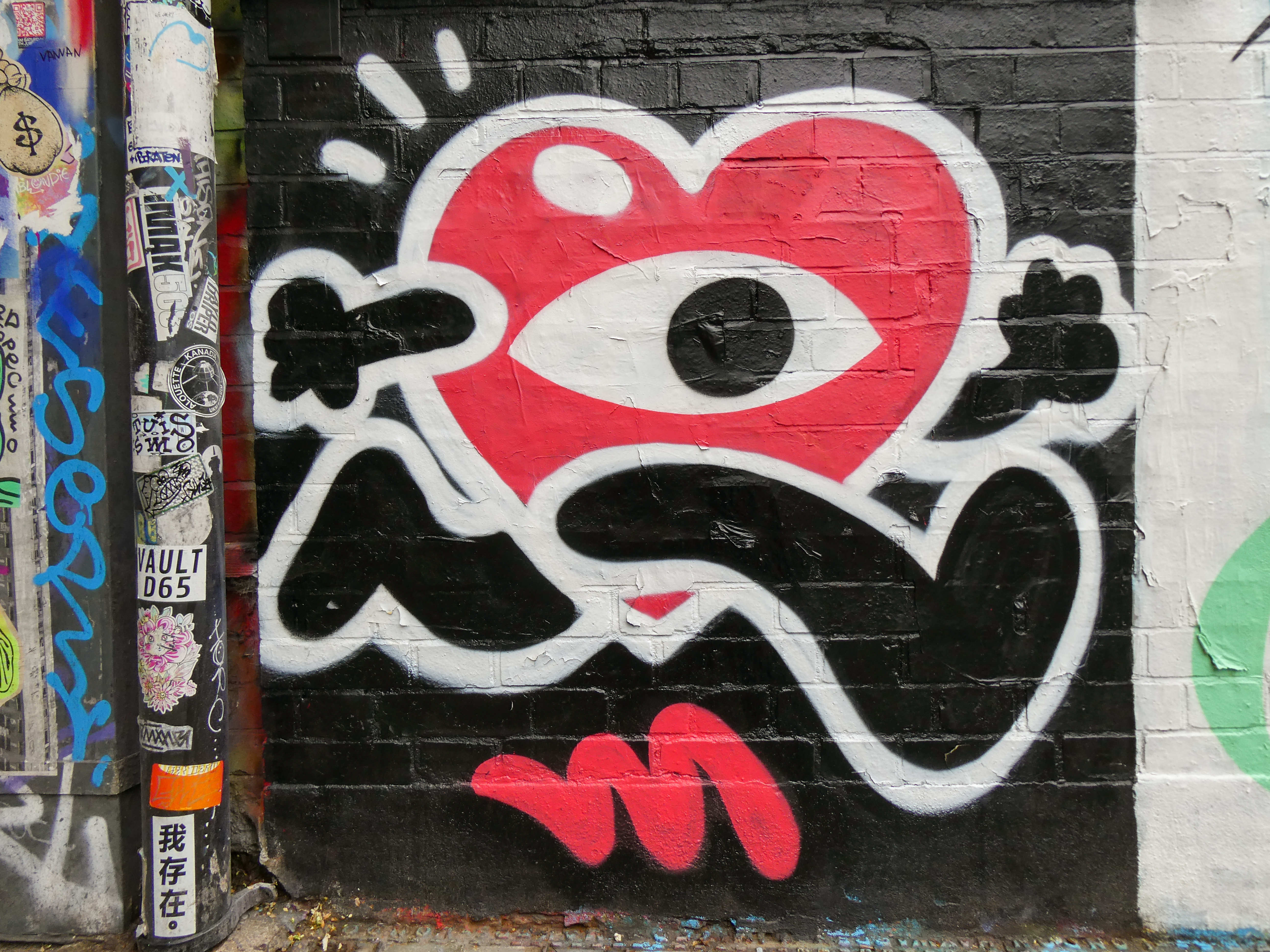 London has been fortunate to receive several visits from Newcastle based artist Mul, who on each occasion hit up a number of works per visit, be they solo or collaborative pieces. Mul painted his distinct and immediately recognizable one eyed heart characters set strutting and running about the place all over East and South London. It is always a pleasure to see artists come and paint in London and this was certainly the case with Mul and his fun characters we spied around Penge, Hackney Wick & Brick Lane through 2025.